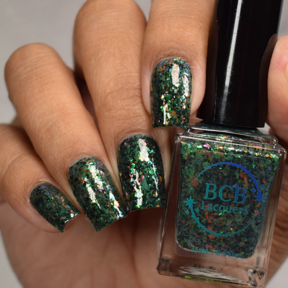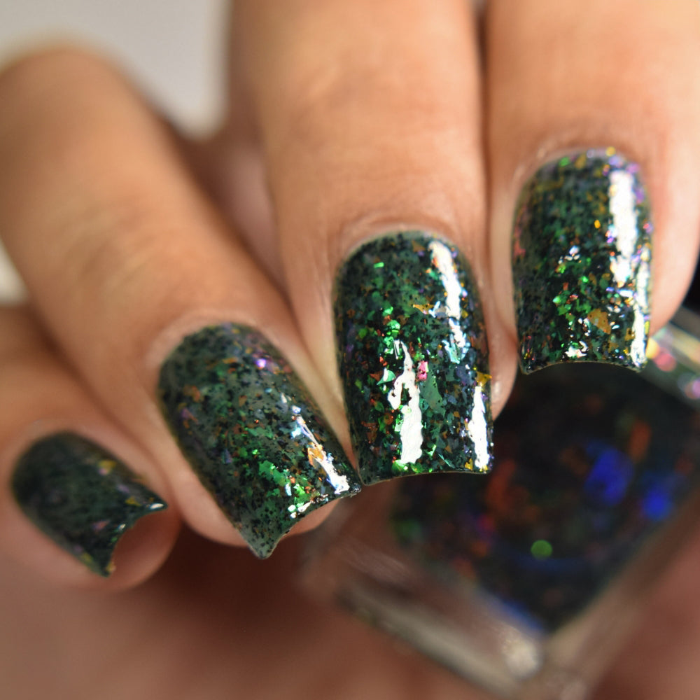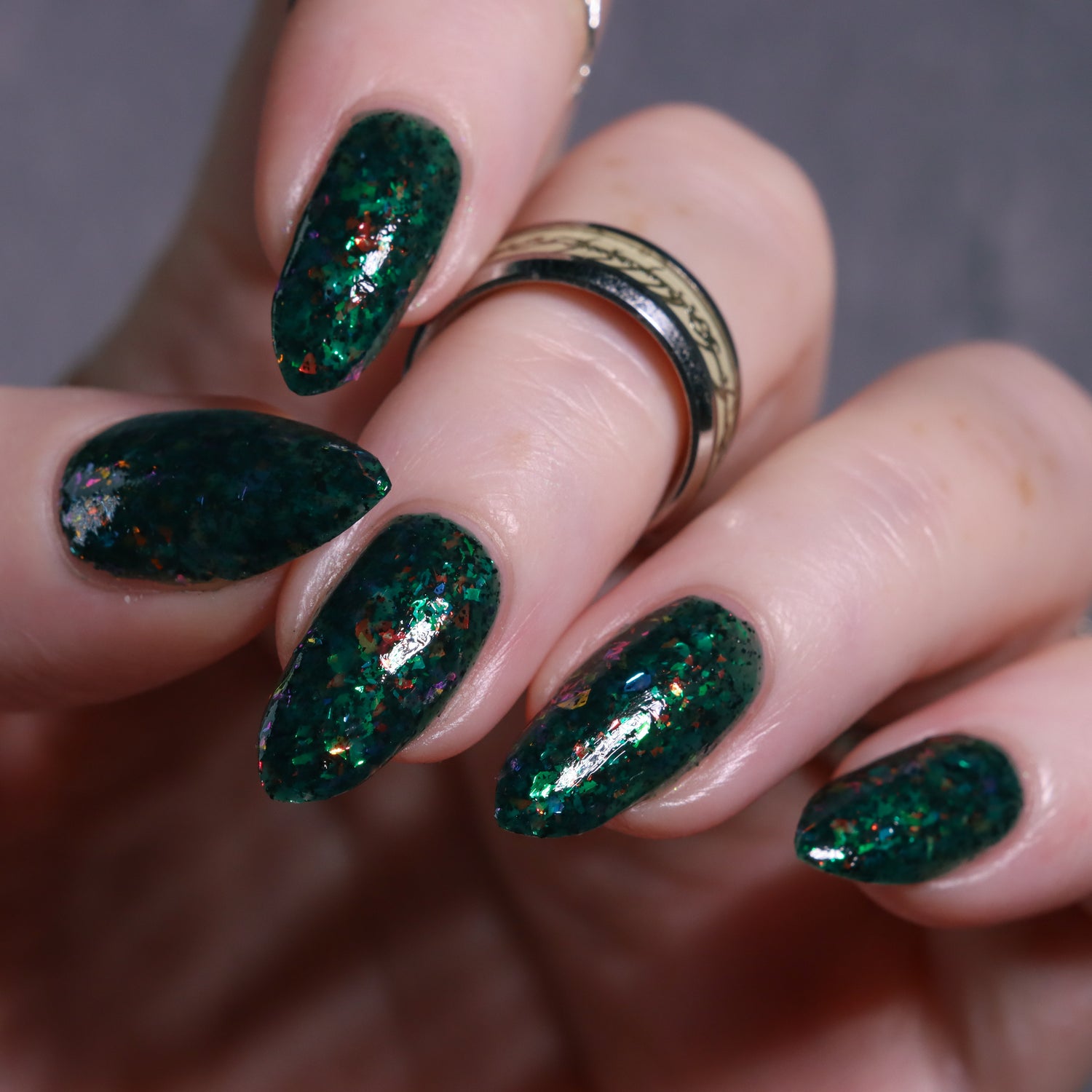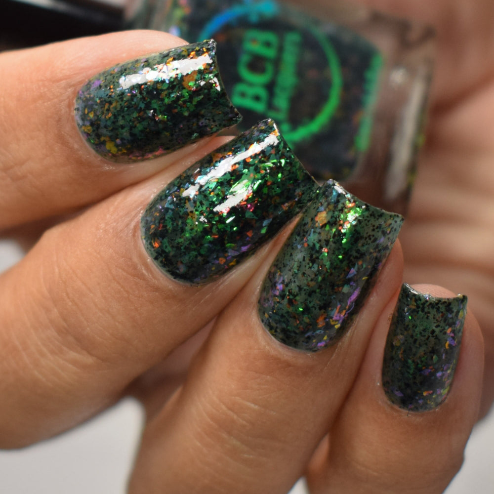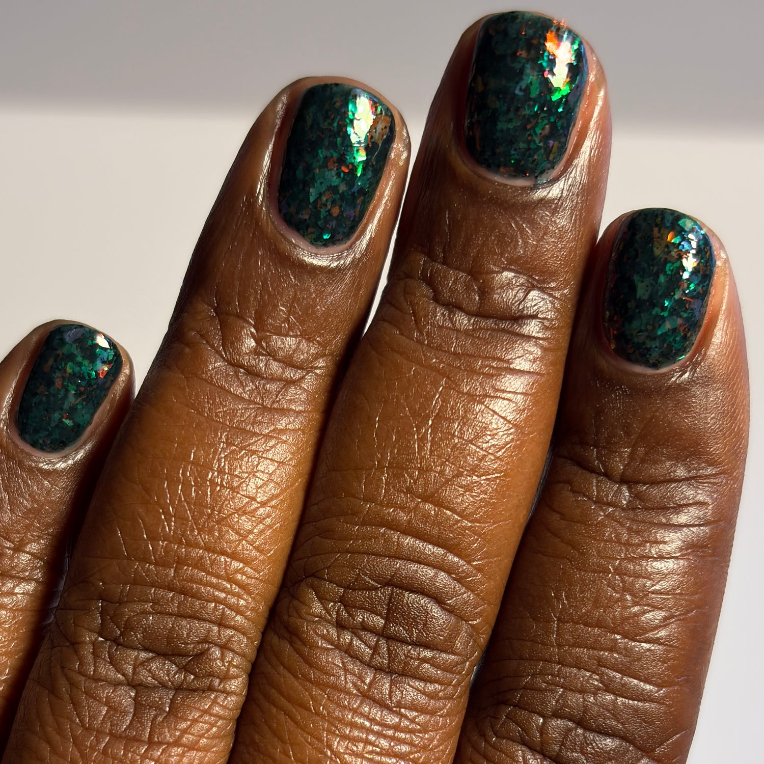 Alright Then, Keep Your Secrets: A tucson teal crelly with green/purple/pink glass flakes, red/orange/gold glass flakes and black flakes.