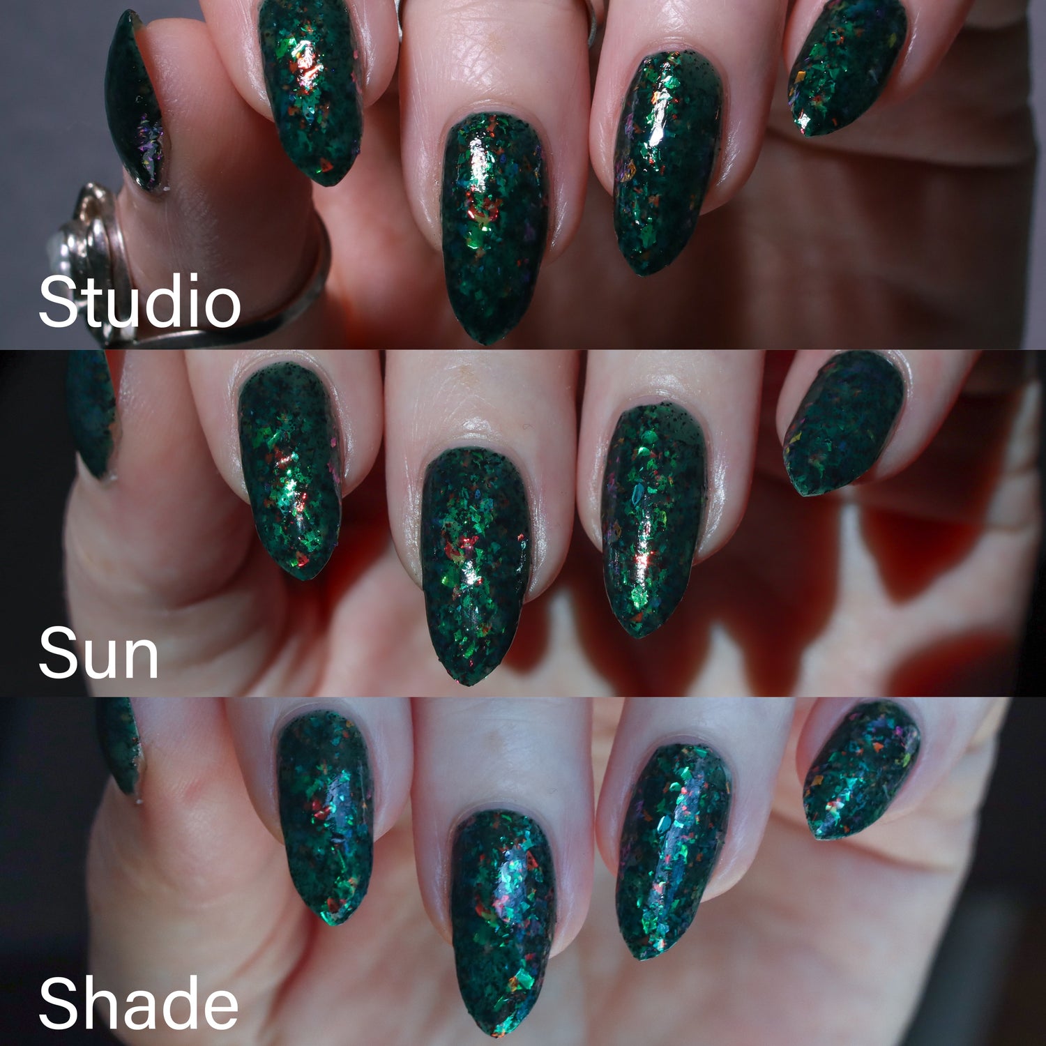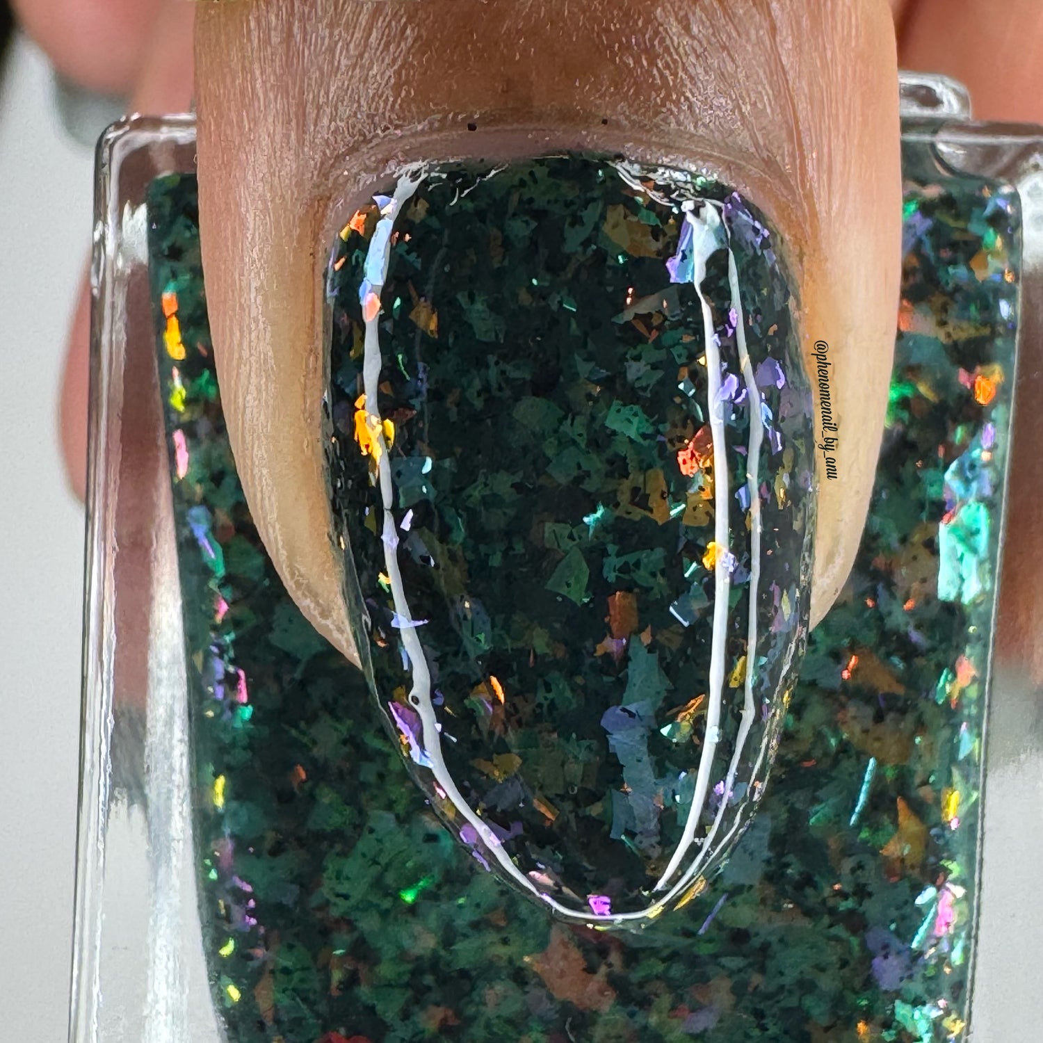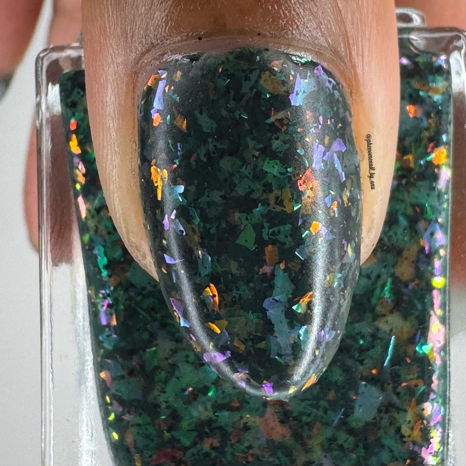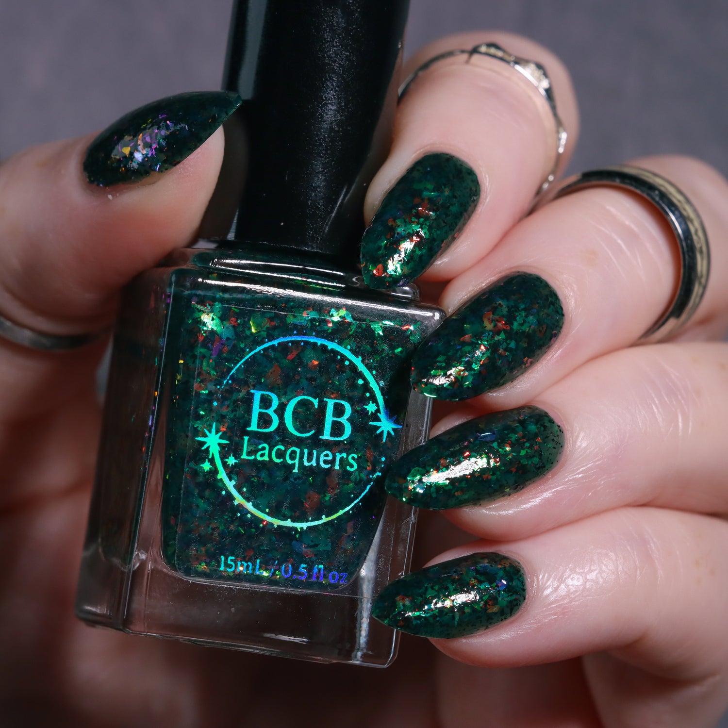 Alright Then, Keep Your Secrets: A tucson teal crelly with green/purple/pink glass flakes, red/orange/gold glass flakes and black flakes.
