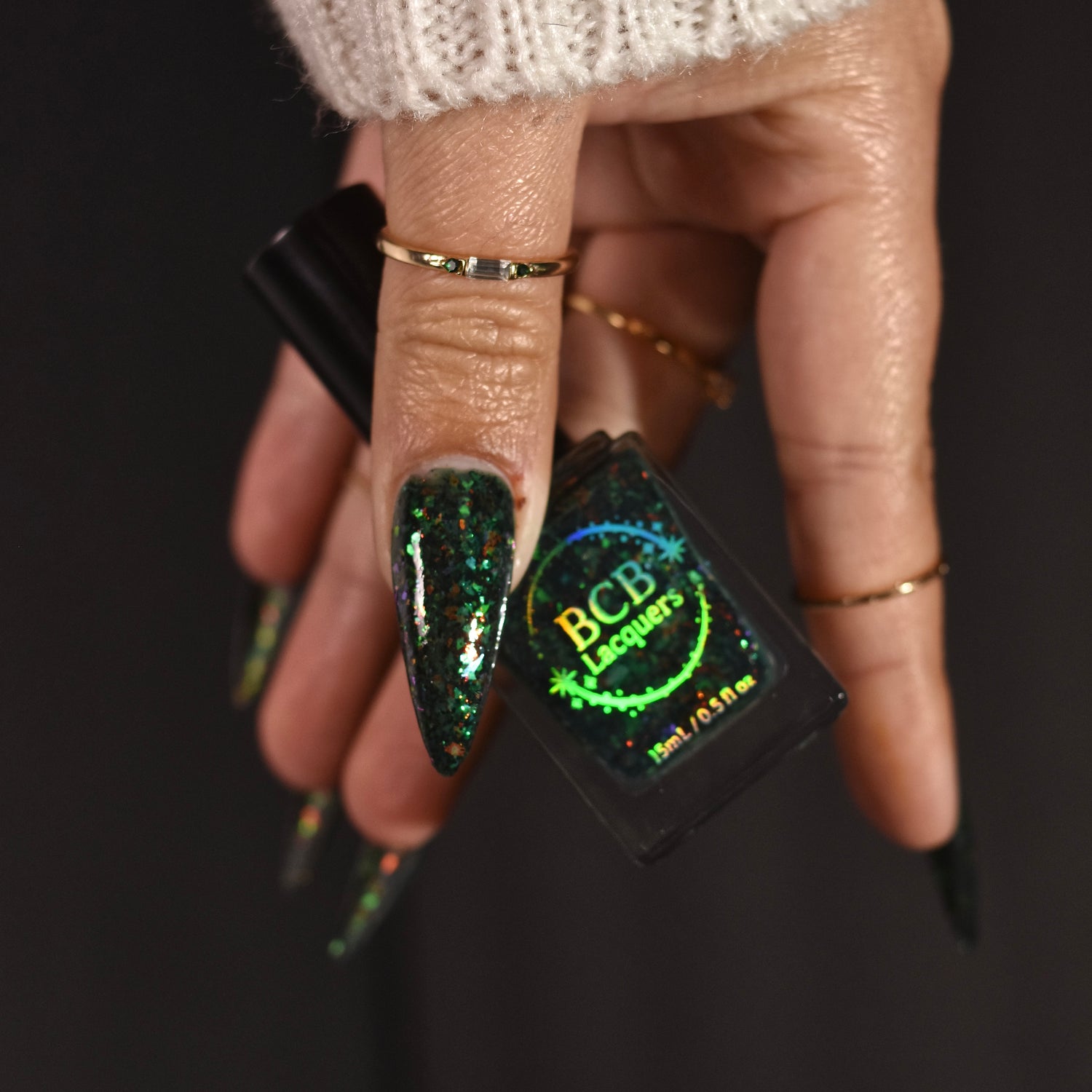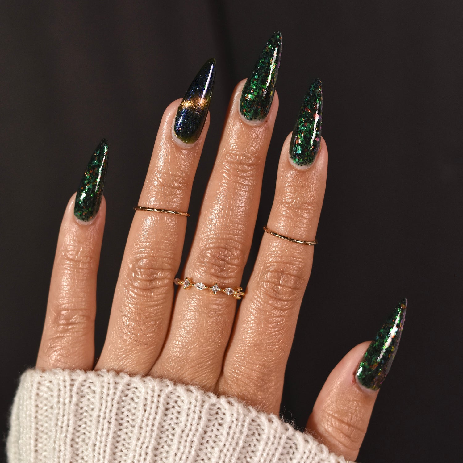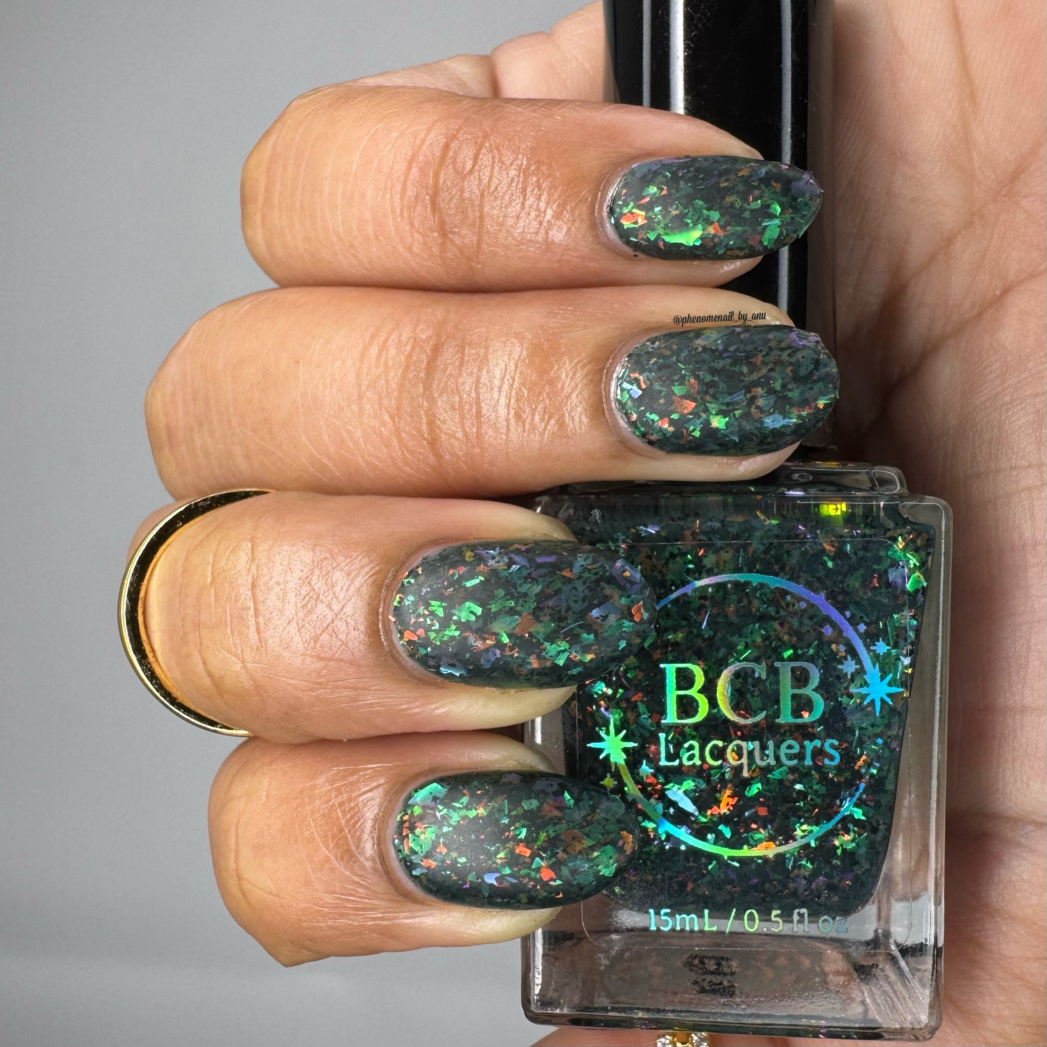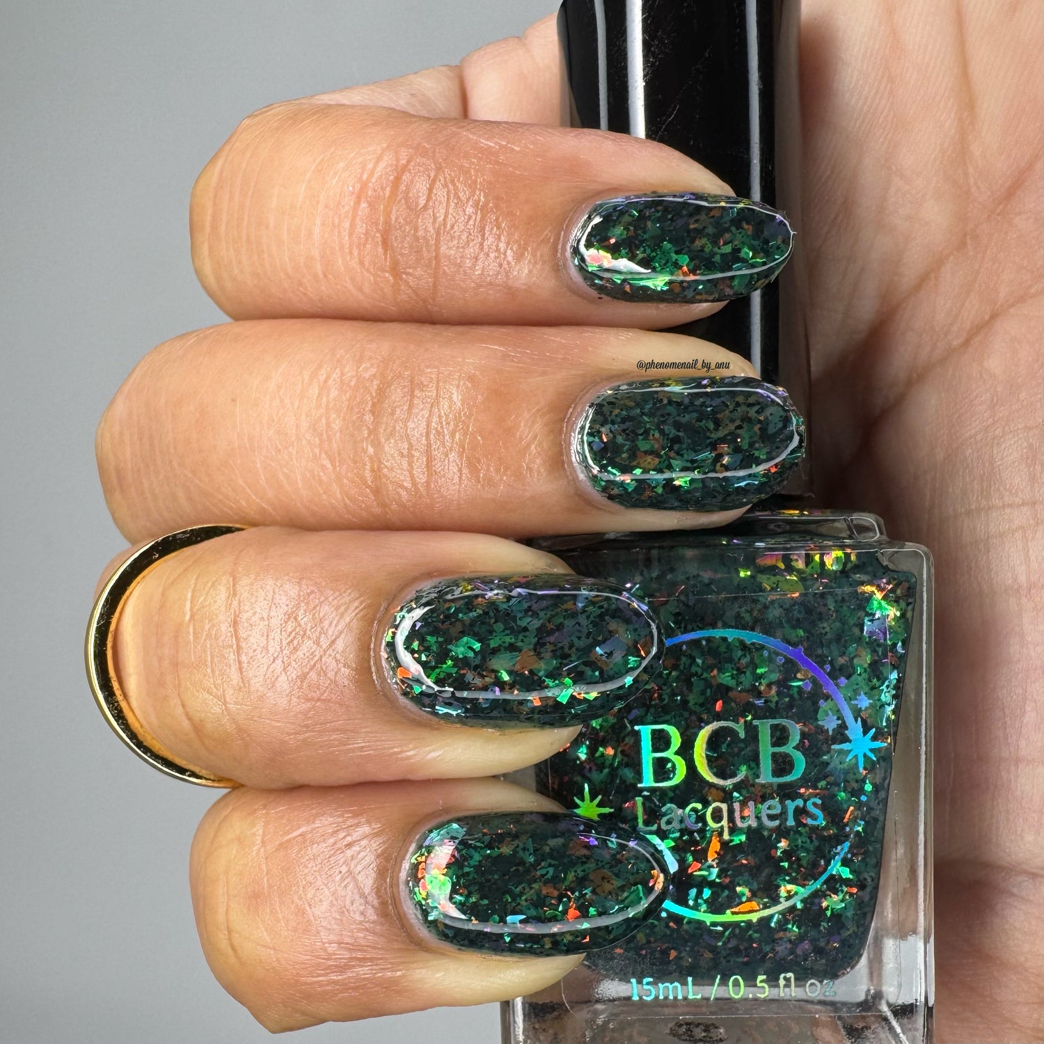 Alright Then, Keep Your Secrets: A tucson teal crelly with green/purple/pink glass flakes, red/orange/gold glass flakes and black flakes.