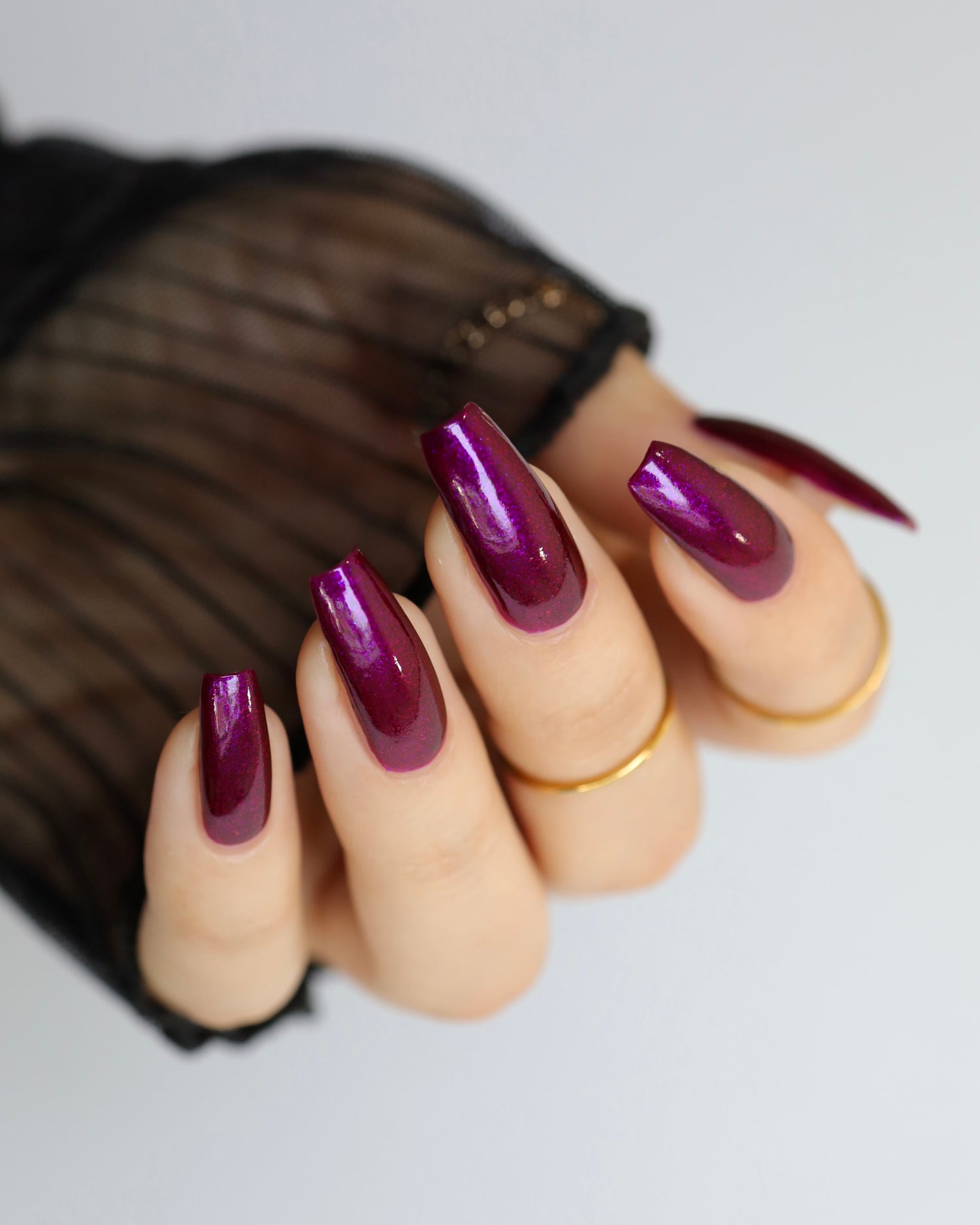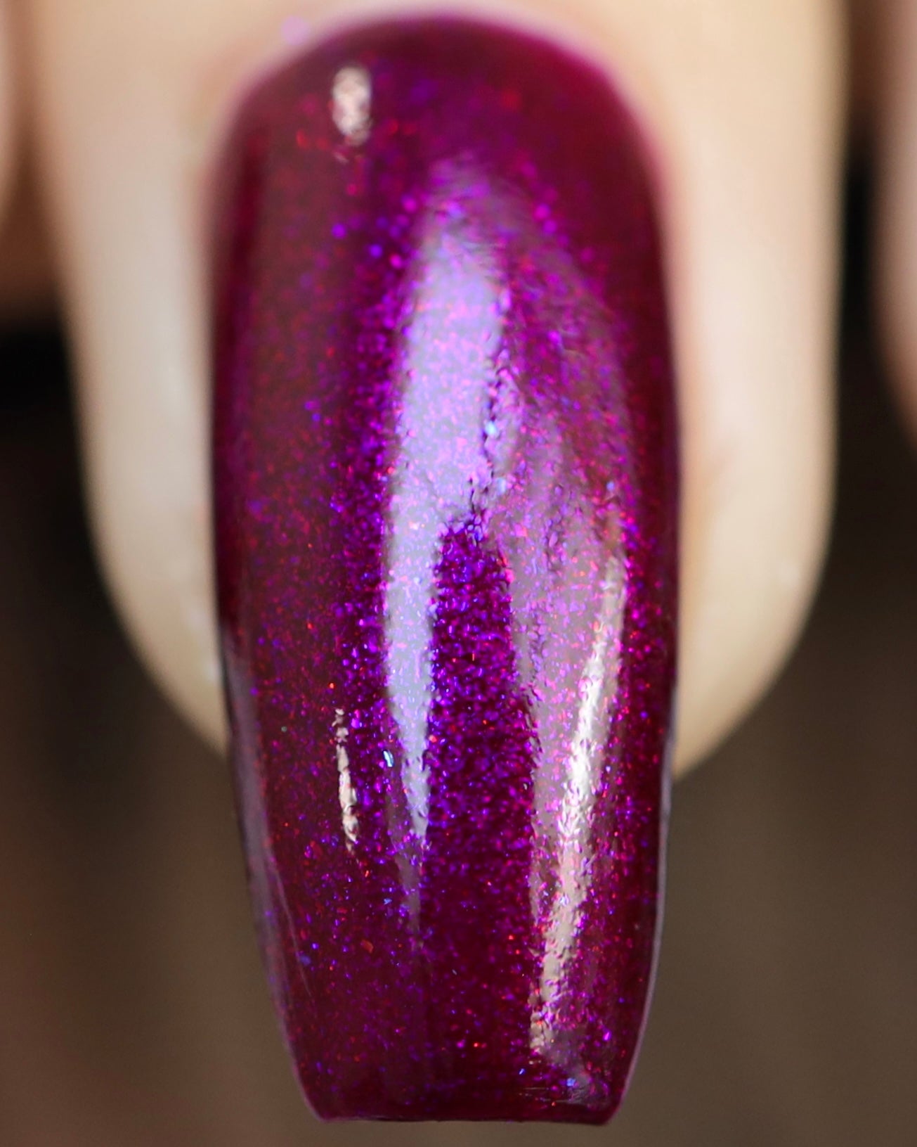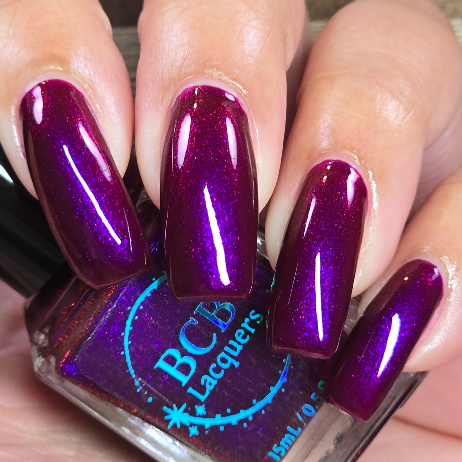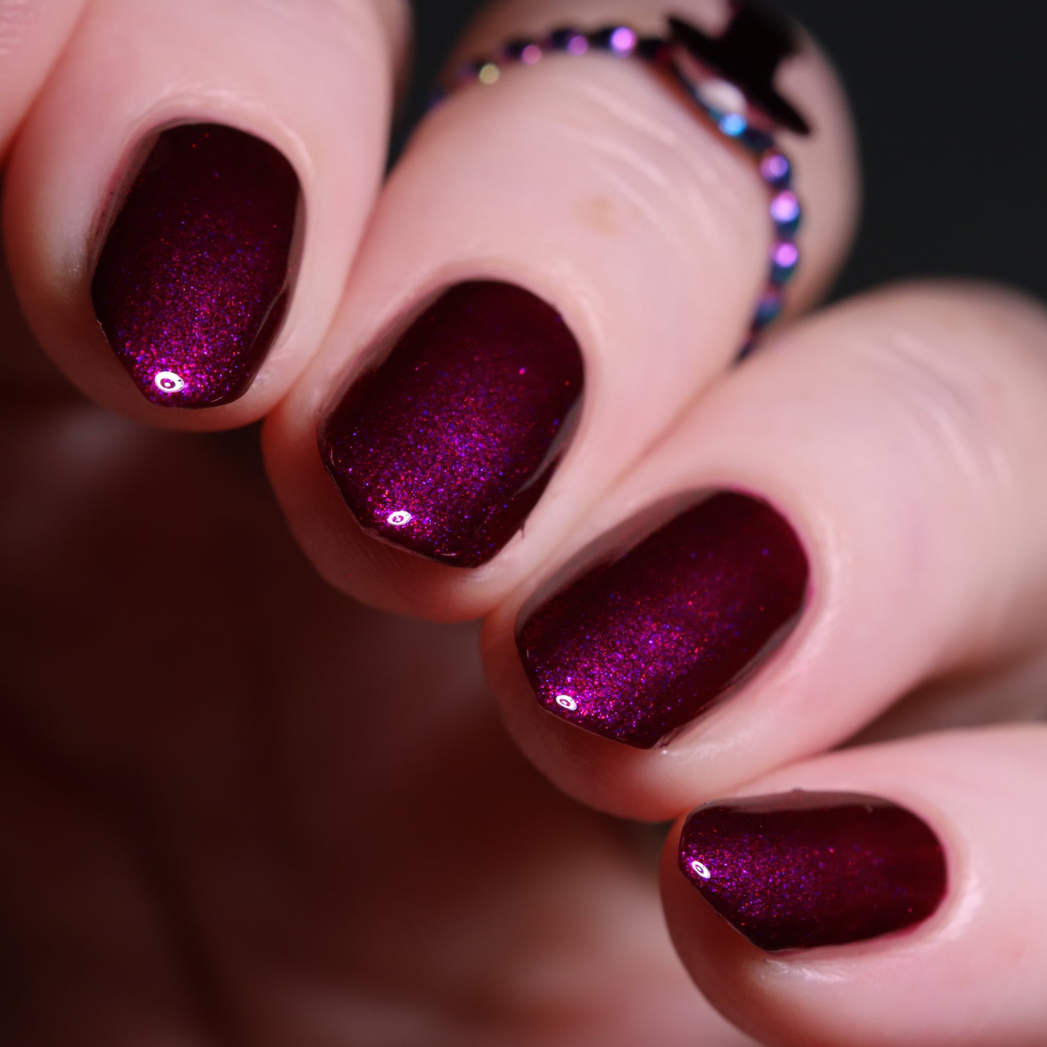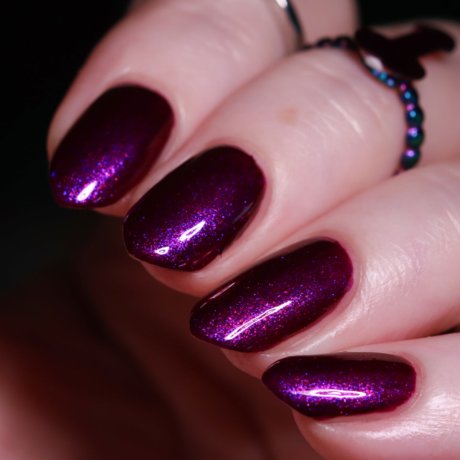 Bare: A deep maroon jelly with a strong pink/purple shifting shimmer.