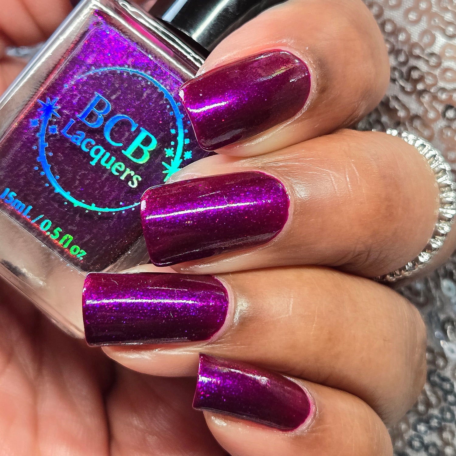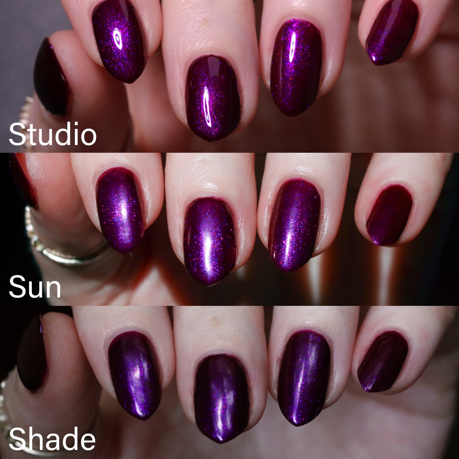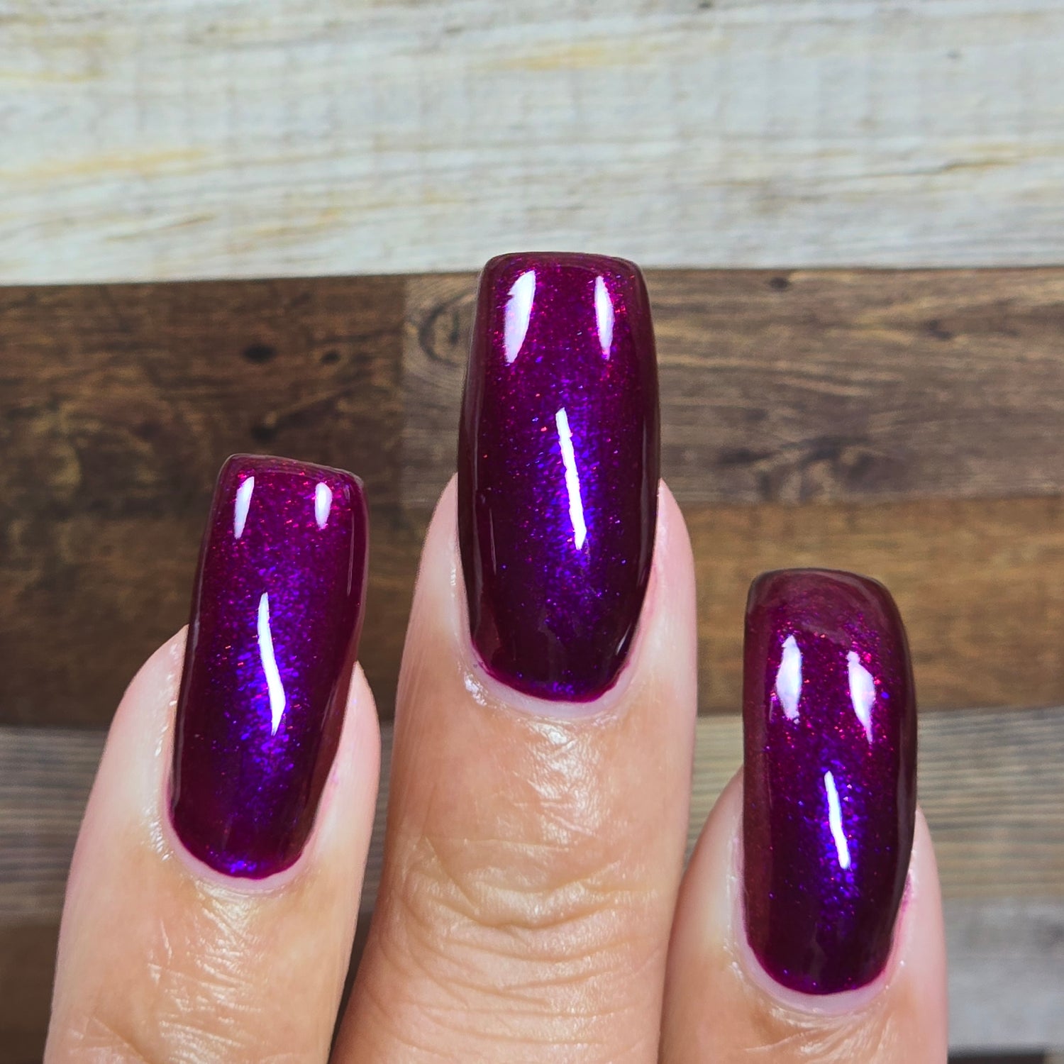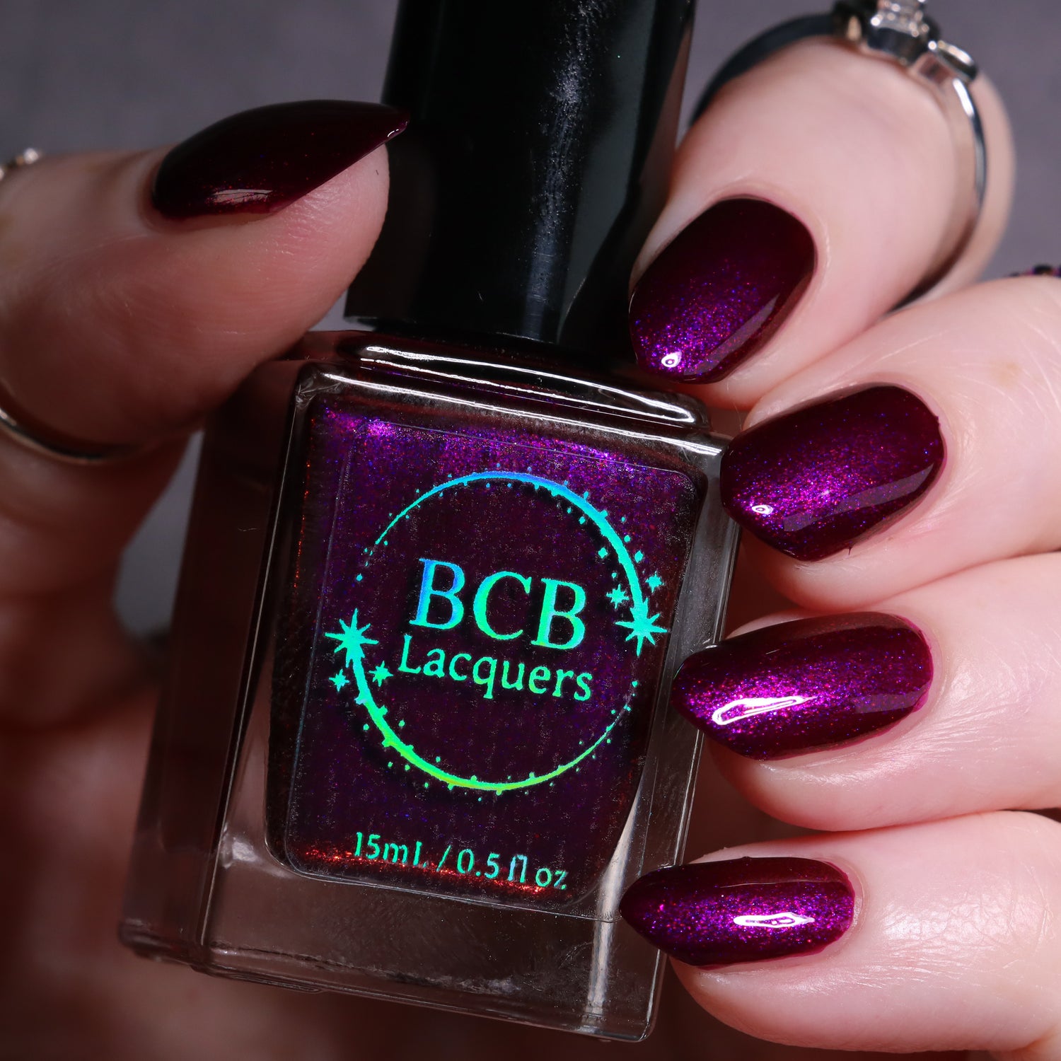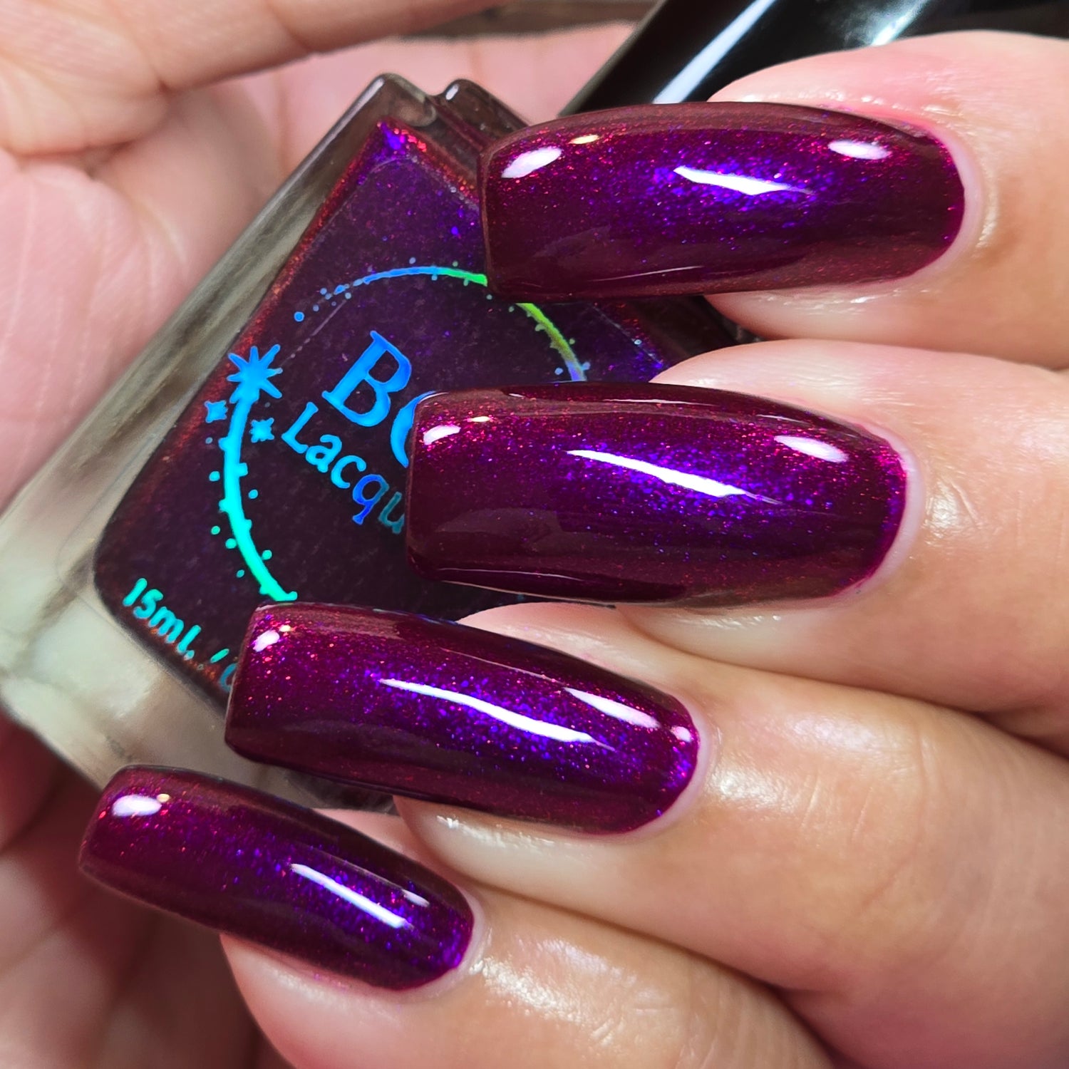 Bare: A deep maroon jelly with a strong pink/purple shifting shimmer.