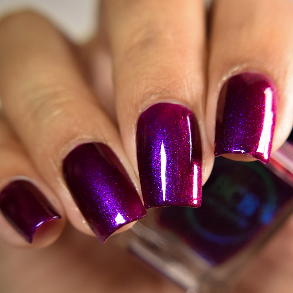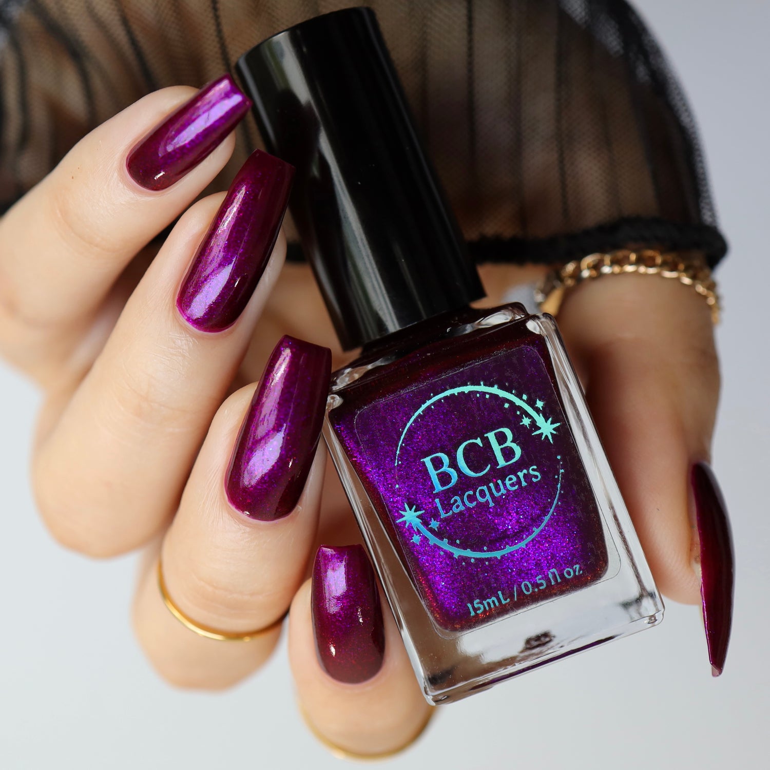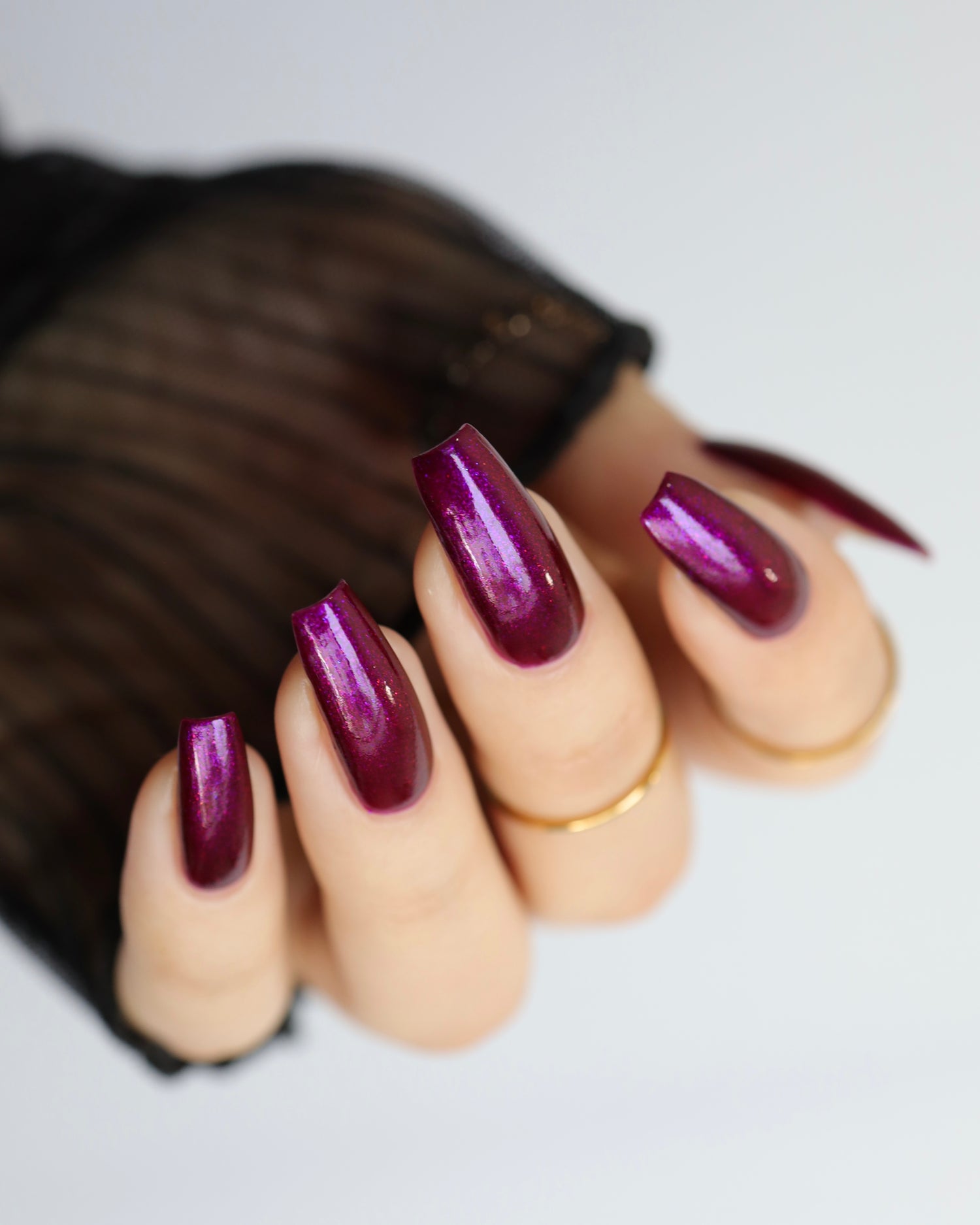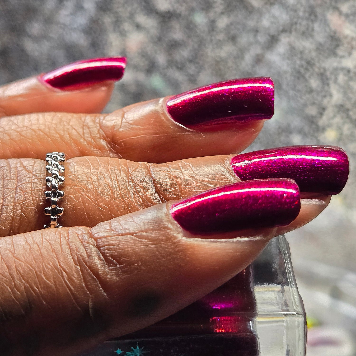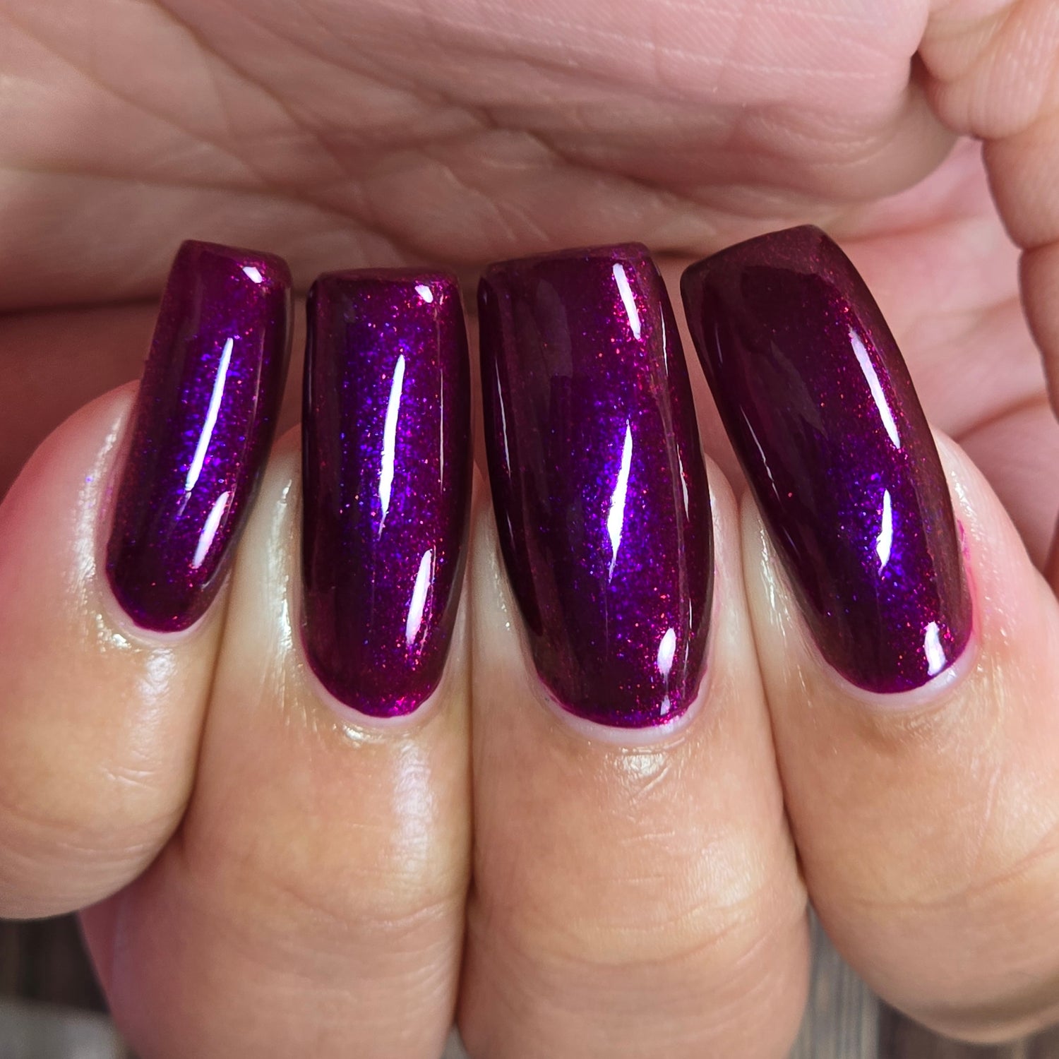 Bare: A deep maroon jelly with a strong pink/purple shifting shimmer.