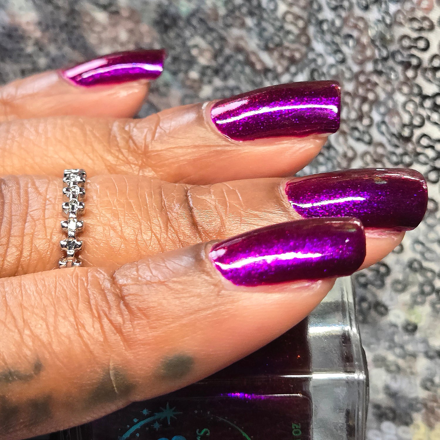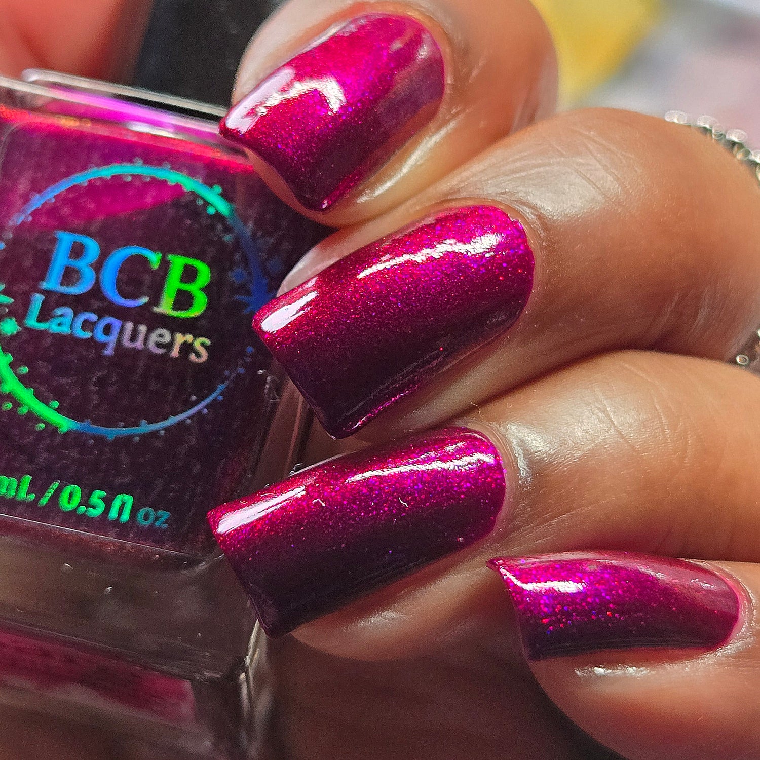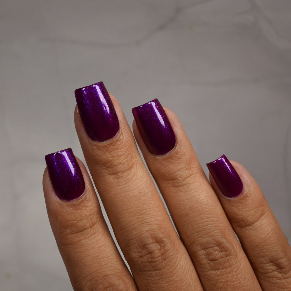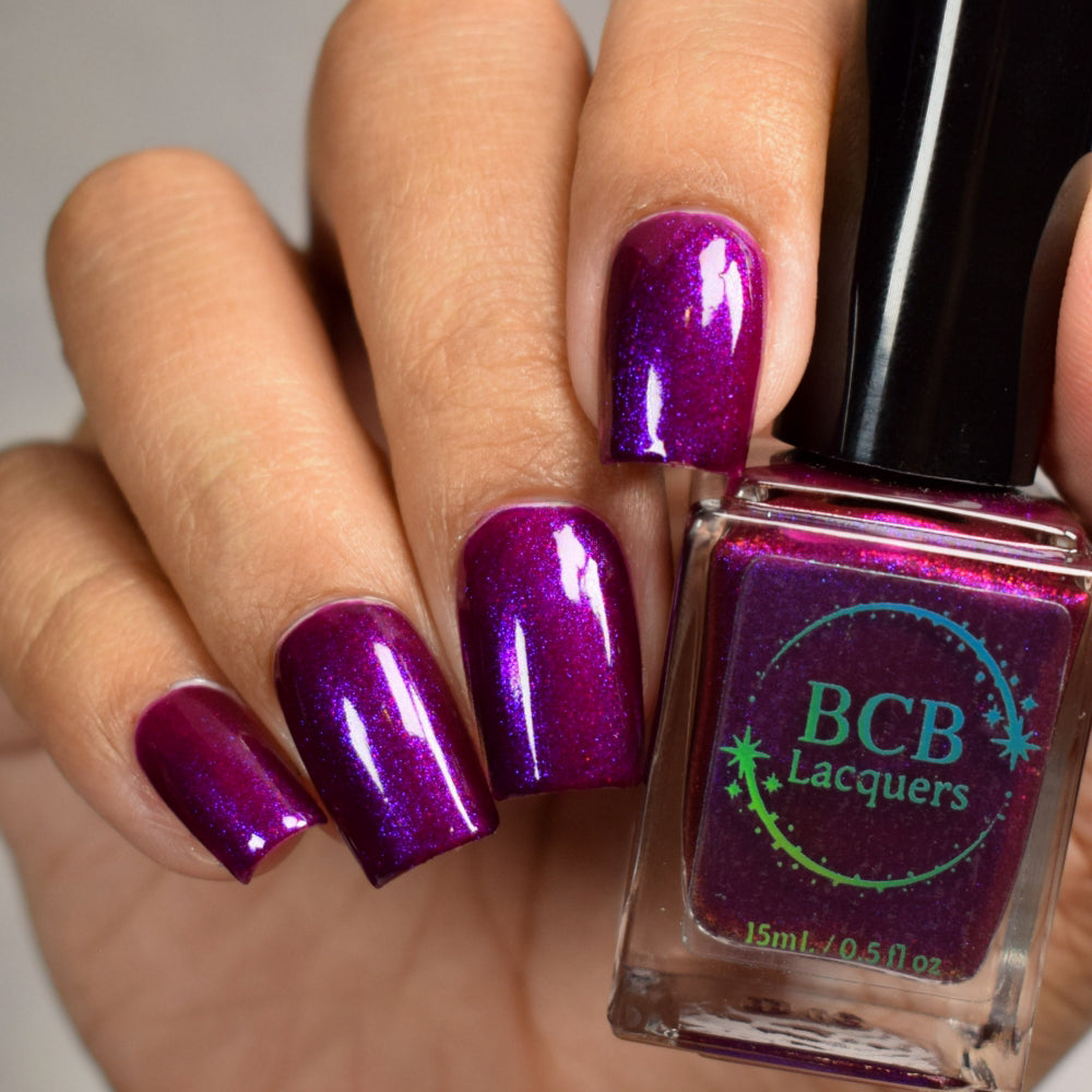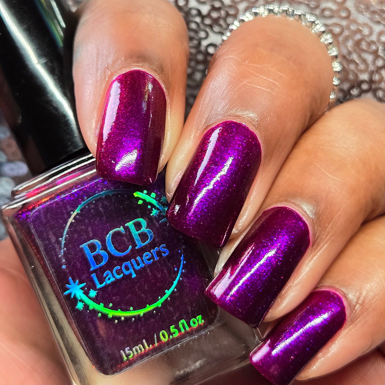 Bare: A deep maroon jelly with a strong pink/purple shifting shimmer.