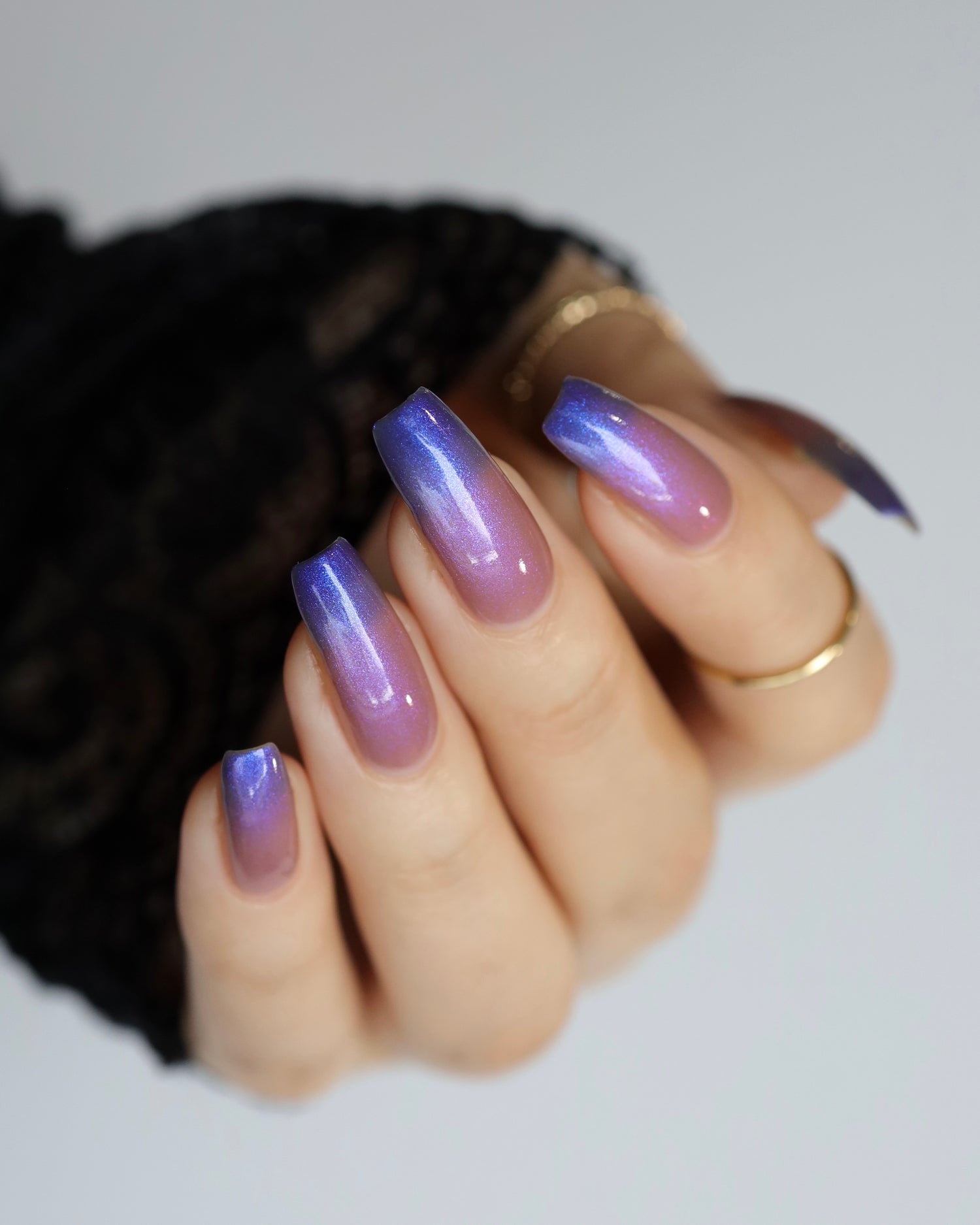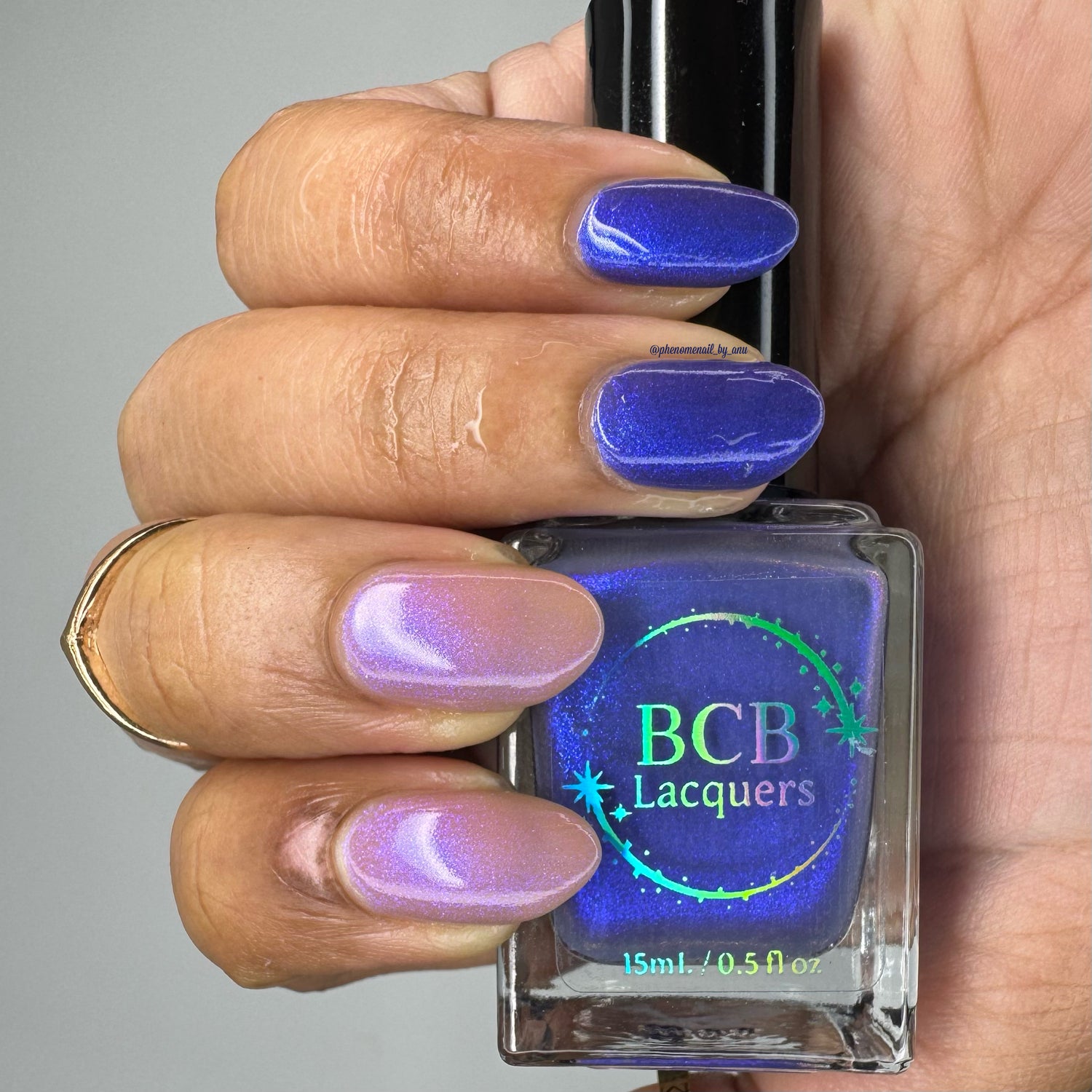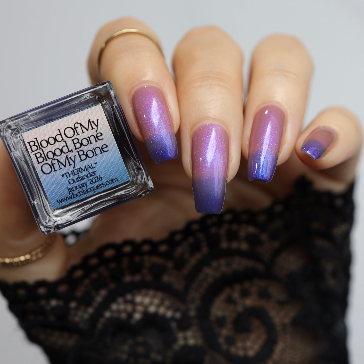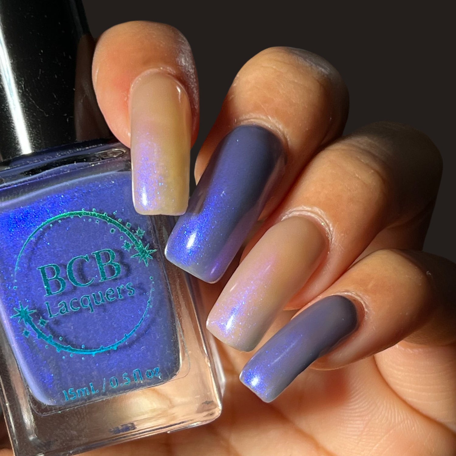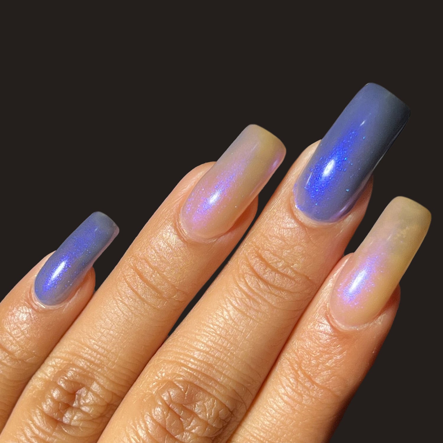 Blood Of My Blood, Bone Of My Bone - *THERMAL*: A navy blue(cold) to tan(warm) thermal with a strong blue/purple shifting shimmer.
