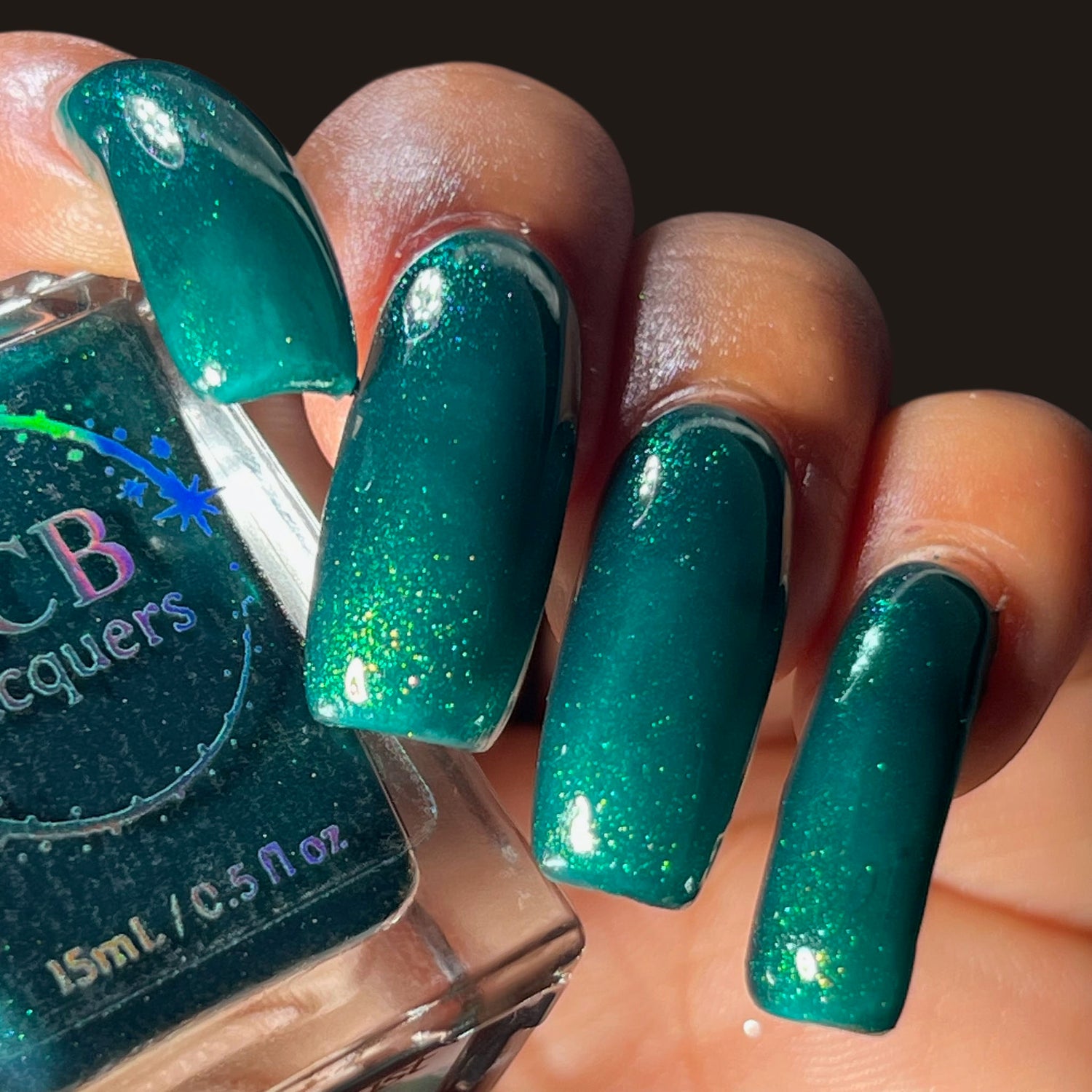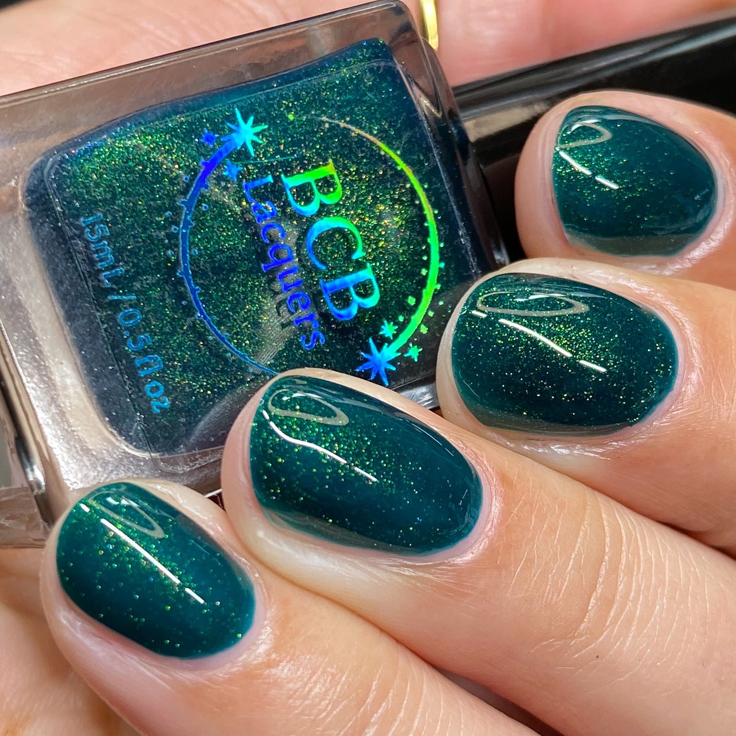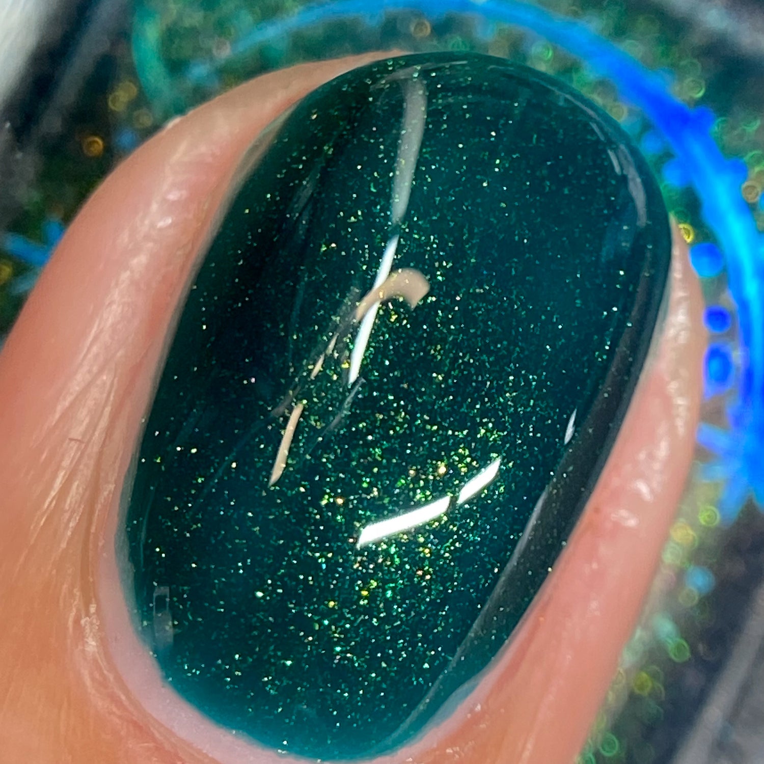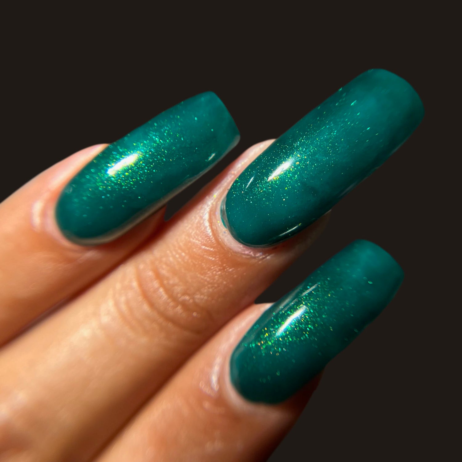 Ghouls Just Want To Have Fun: A teal jelly with green/blue shimmer and red/orange/gold shimmer.