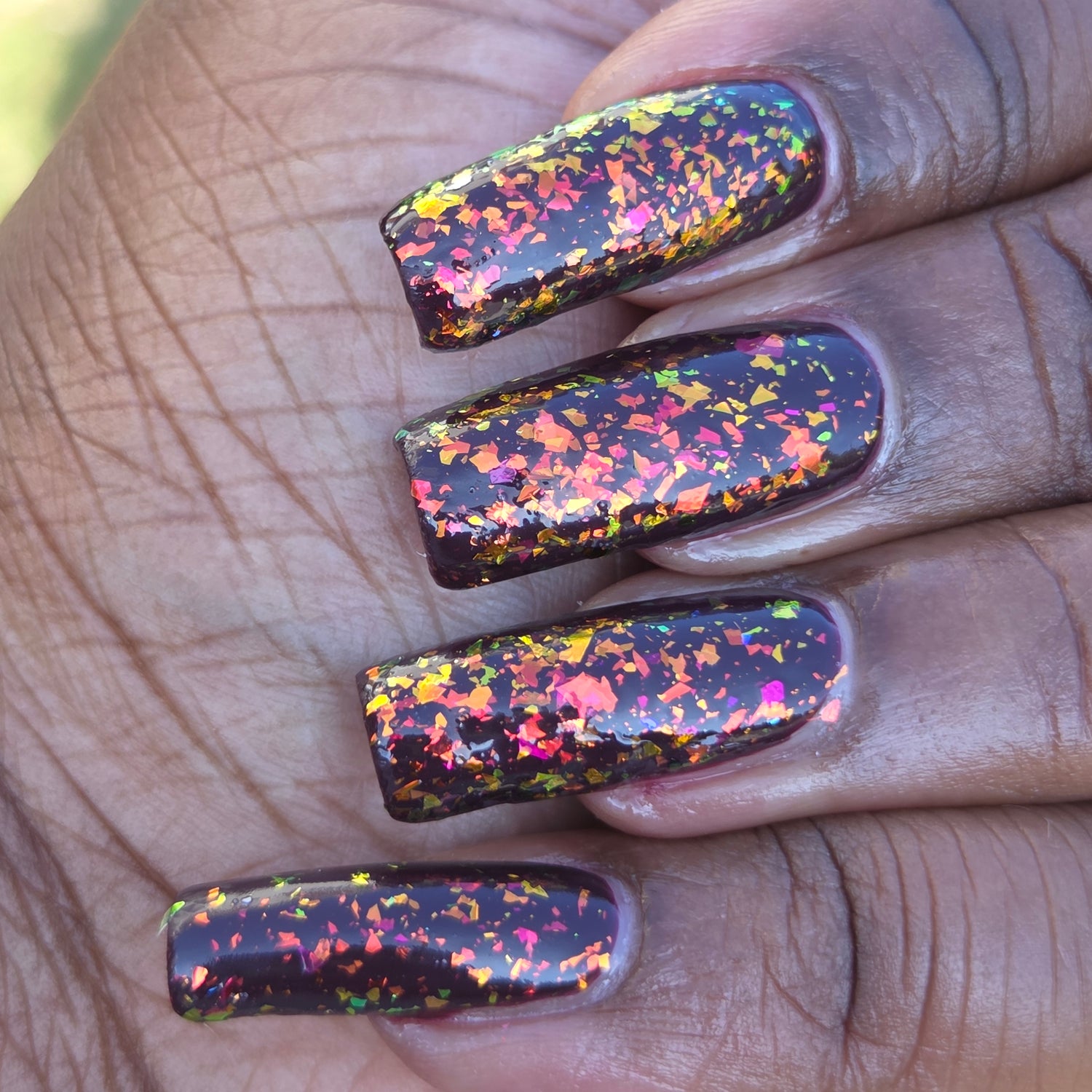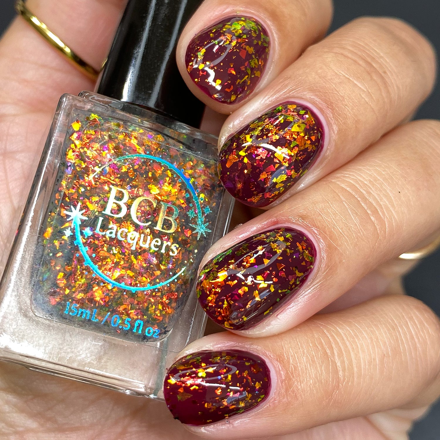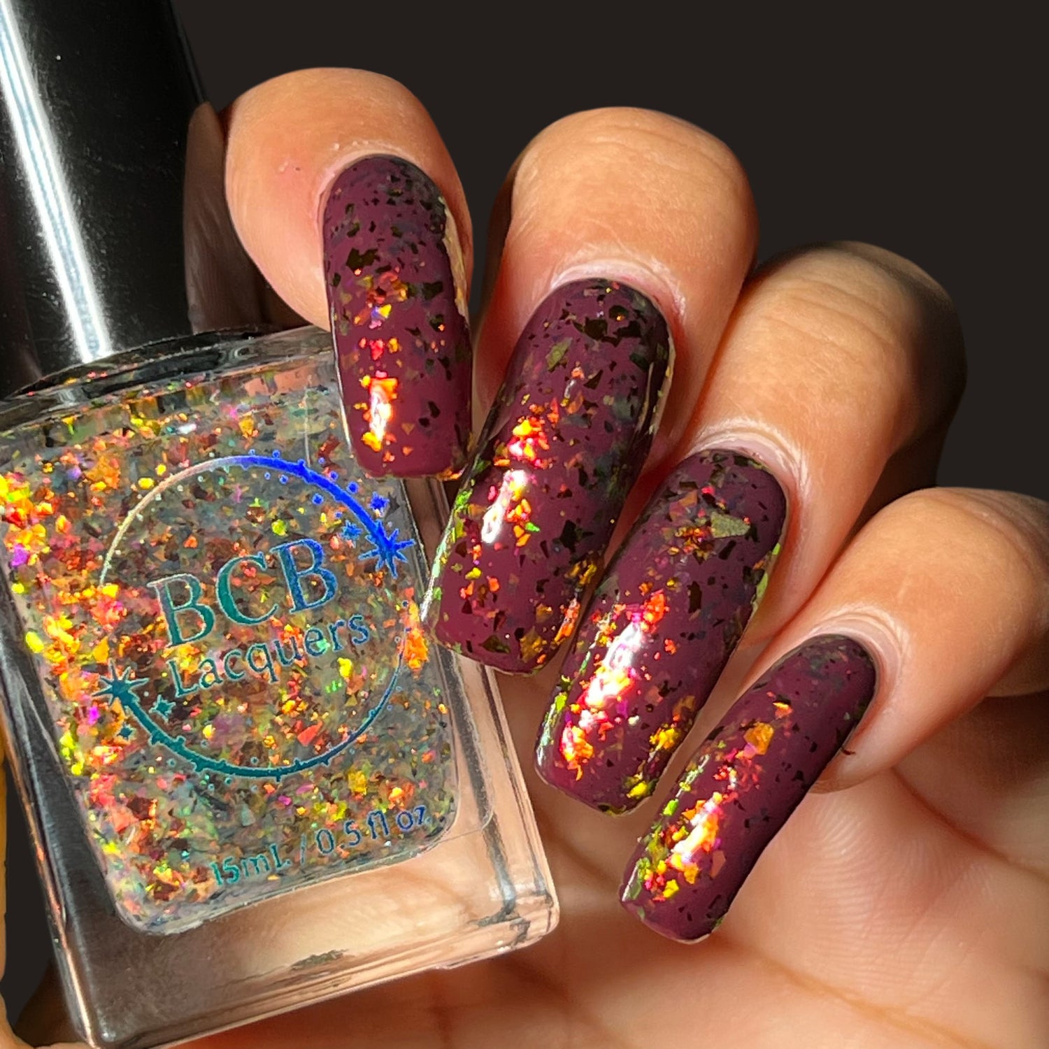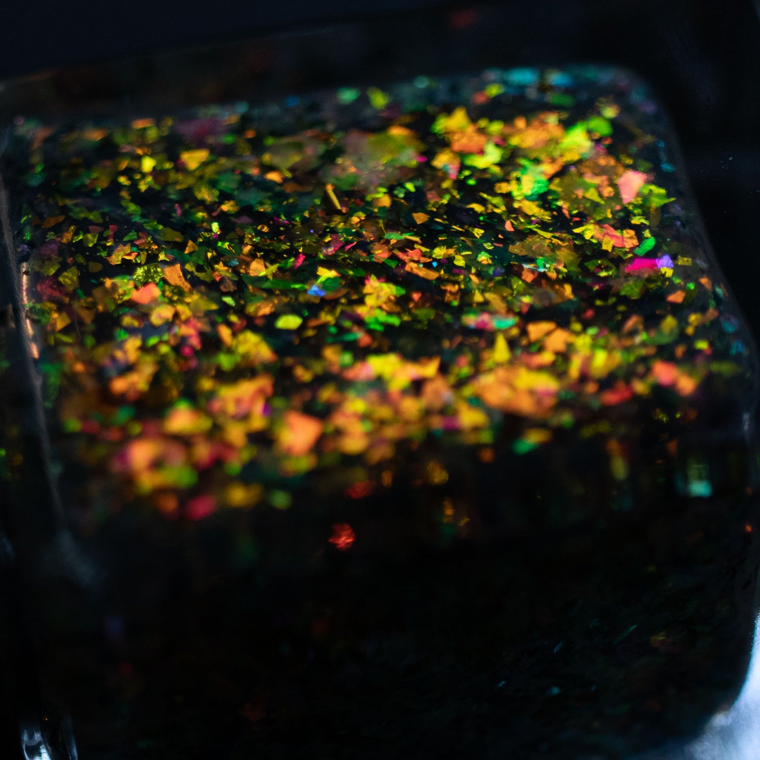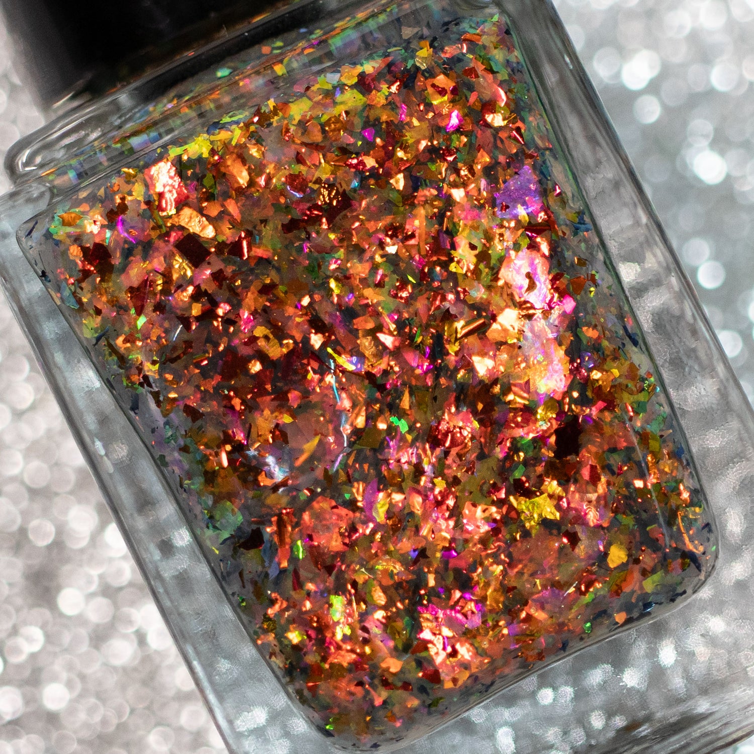 Lust –*TOPPER*: A topper packed with red/orange/gold/green glass flakes and red/orange/gold multichrome flakes.