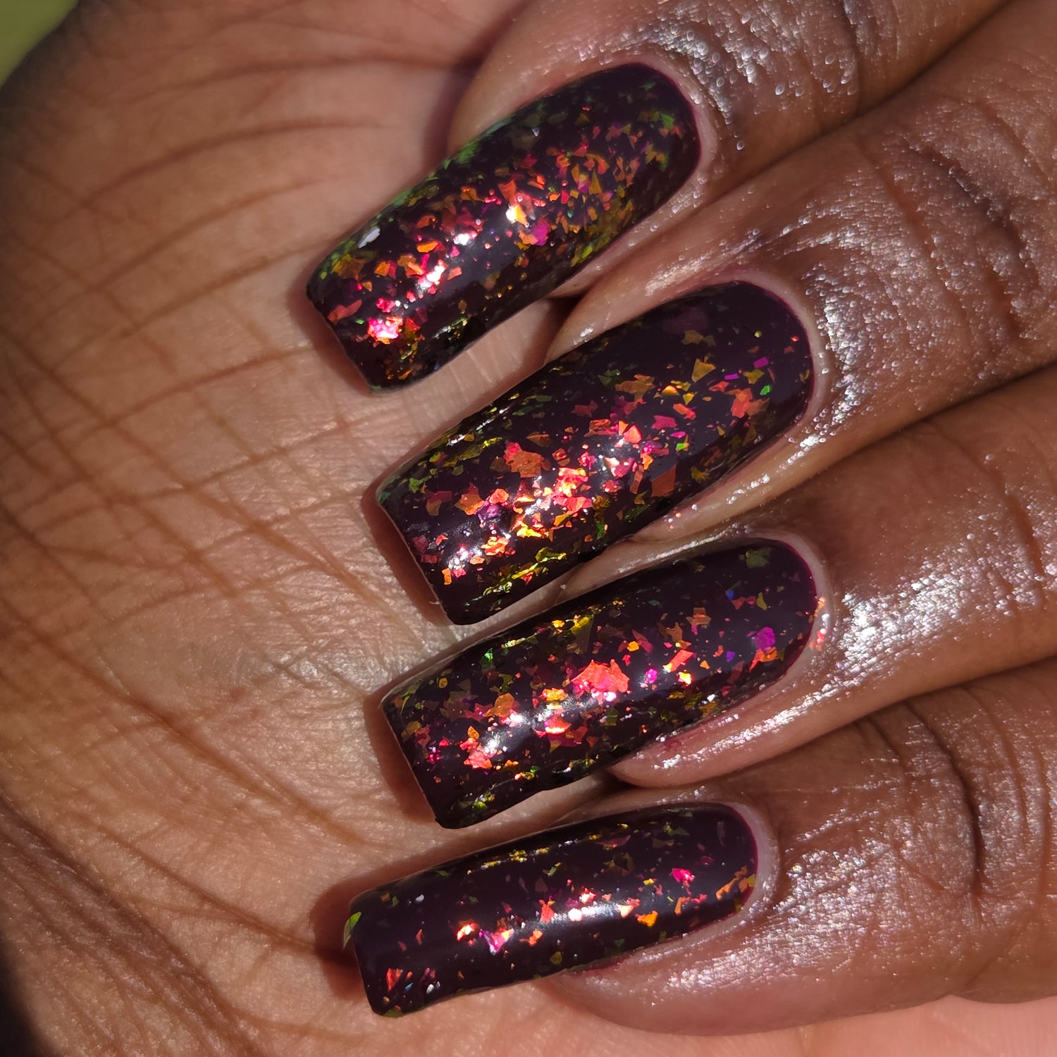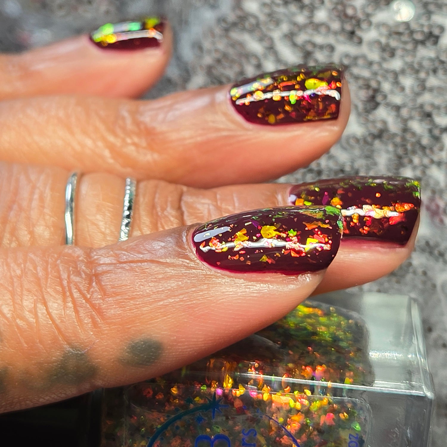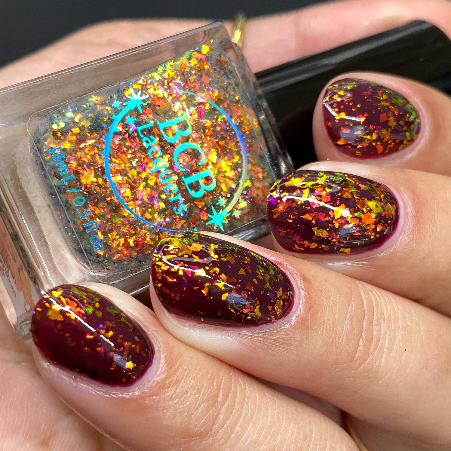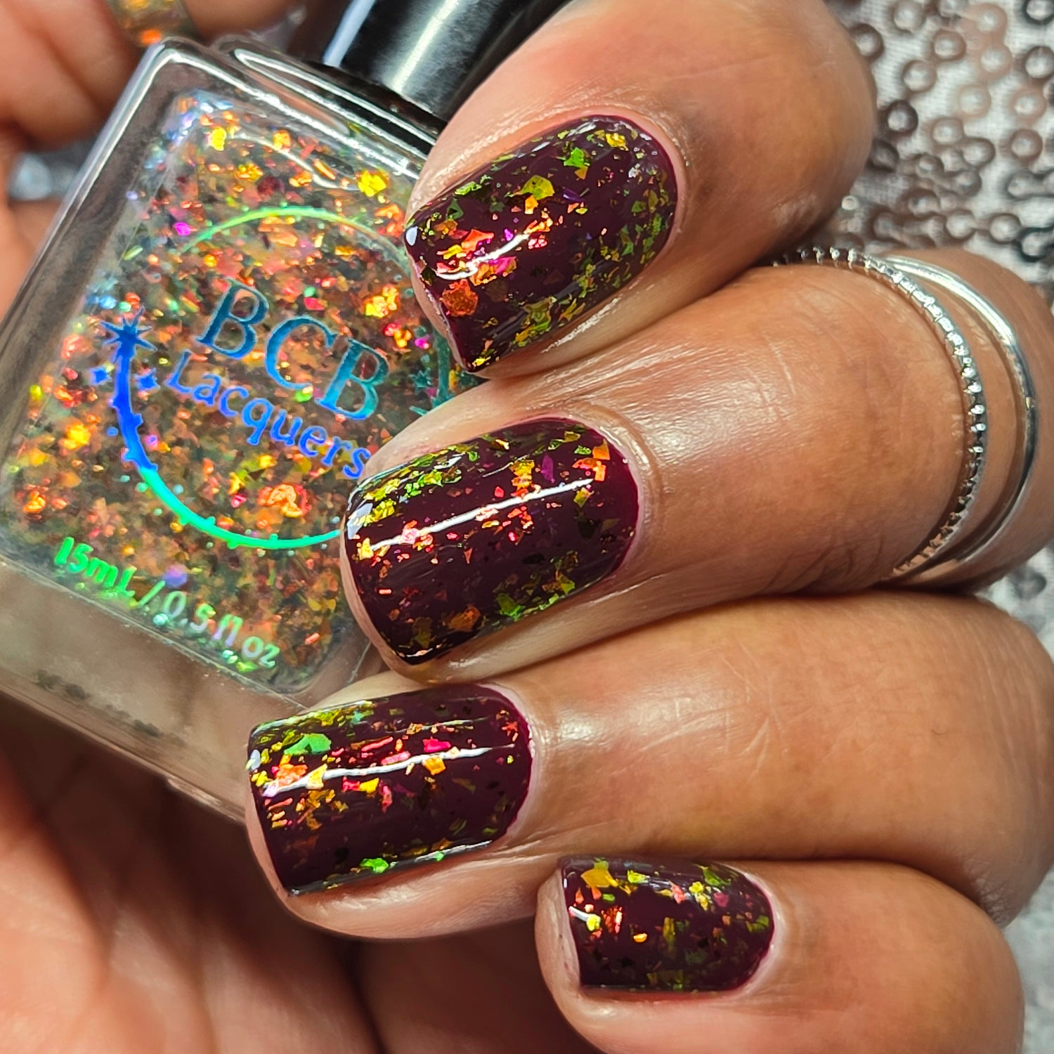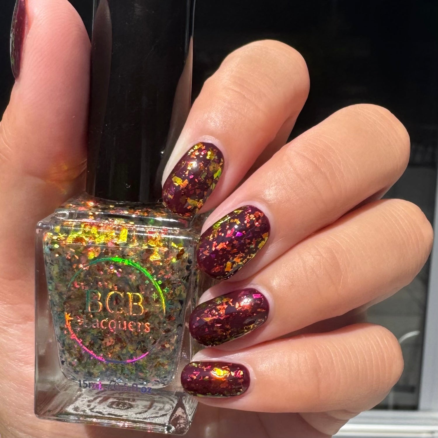 Lust –*TOPPER*: A topper packed with red/orange/gold/green glass flakes and red/orange/gold multichrome flakes.