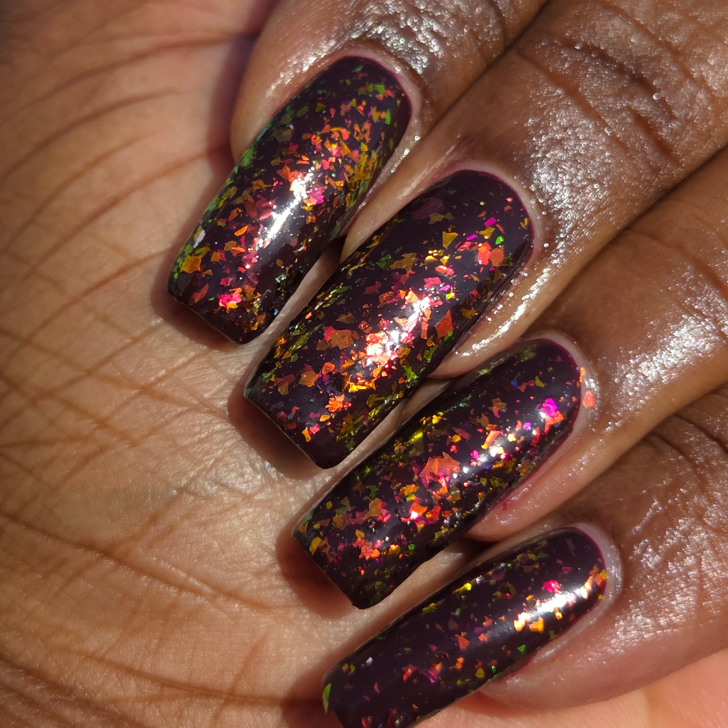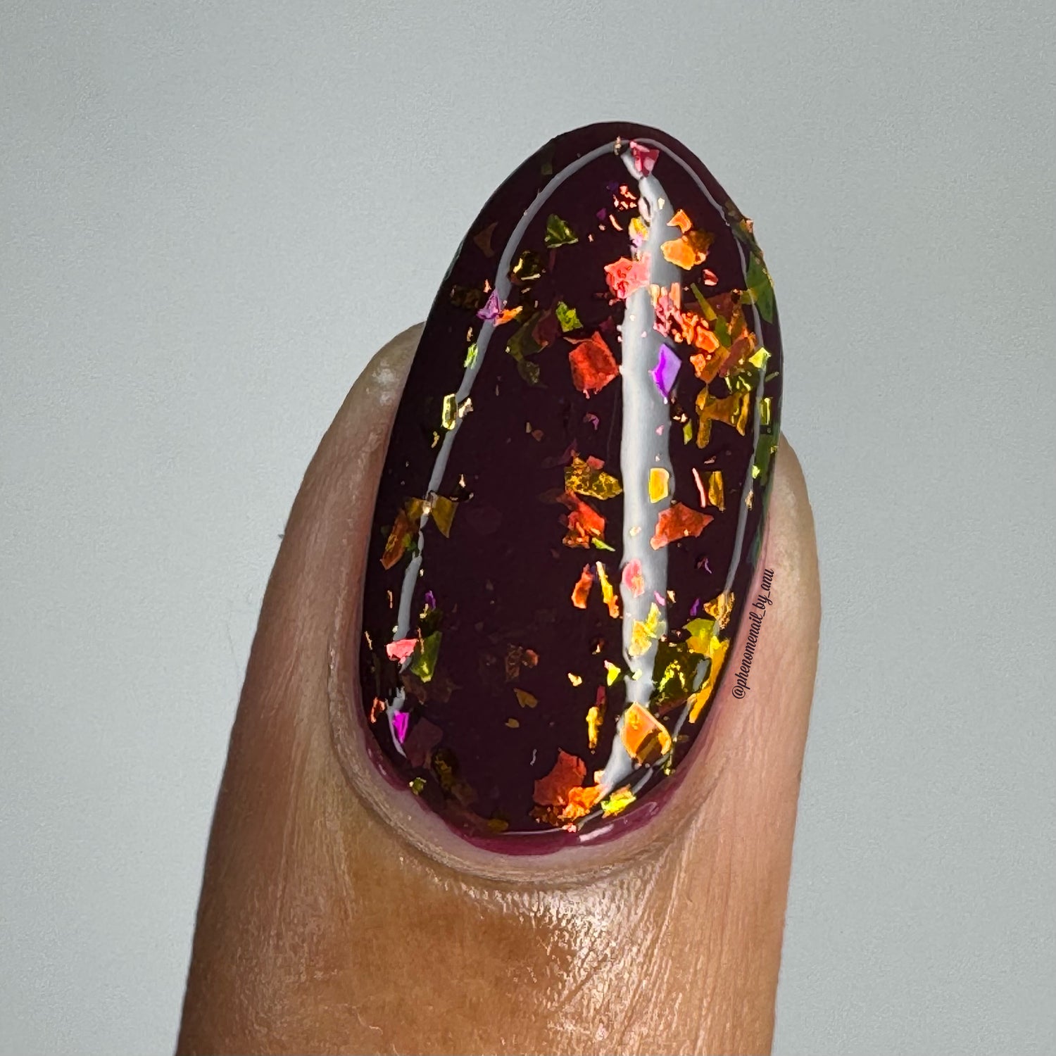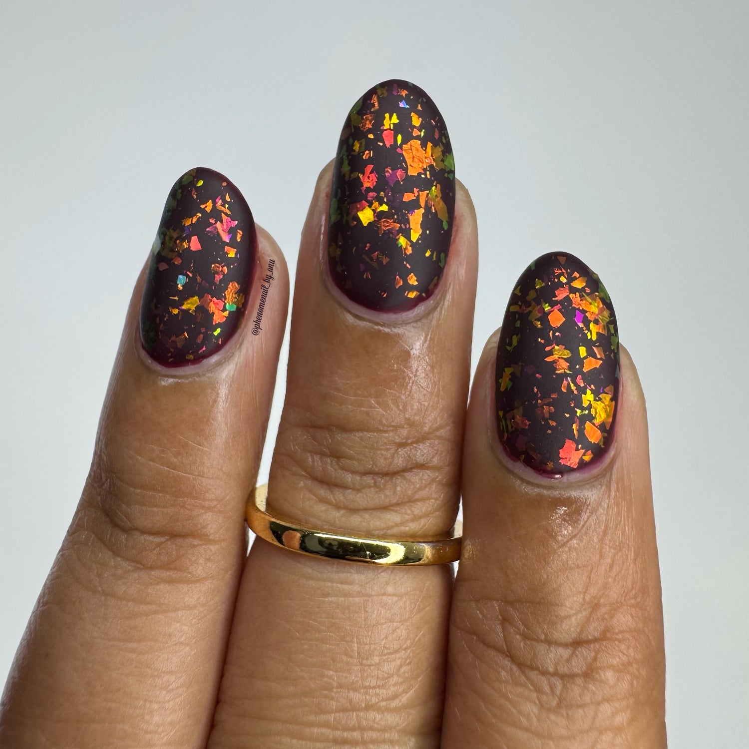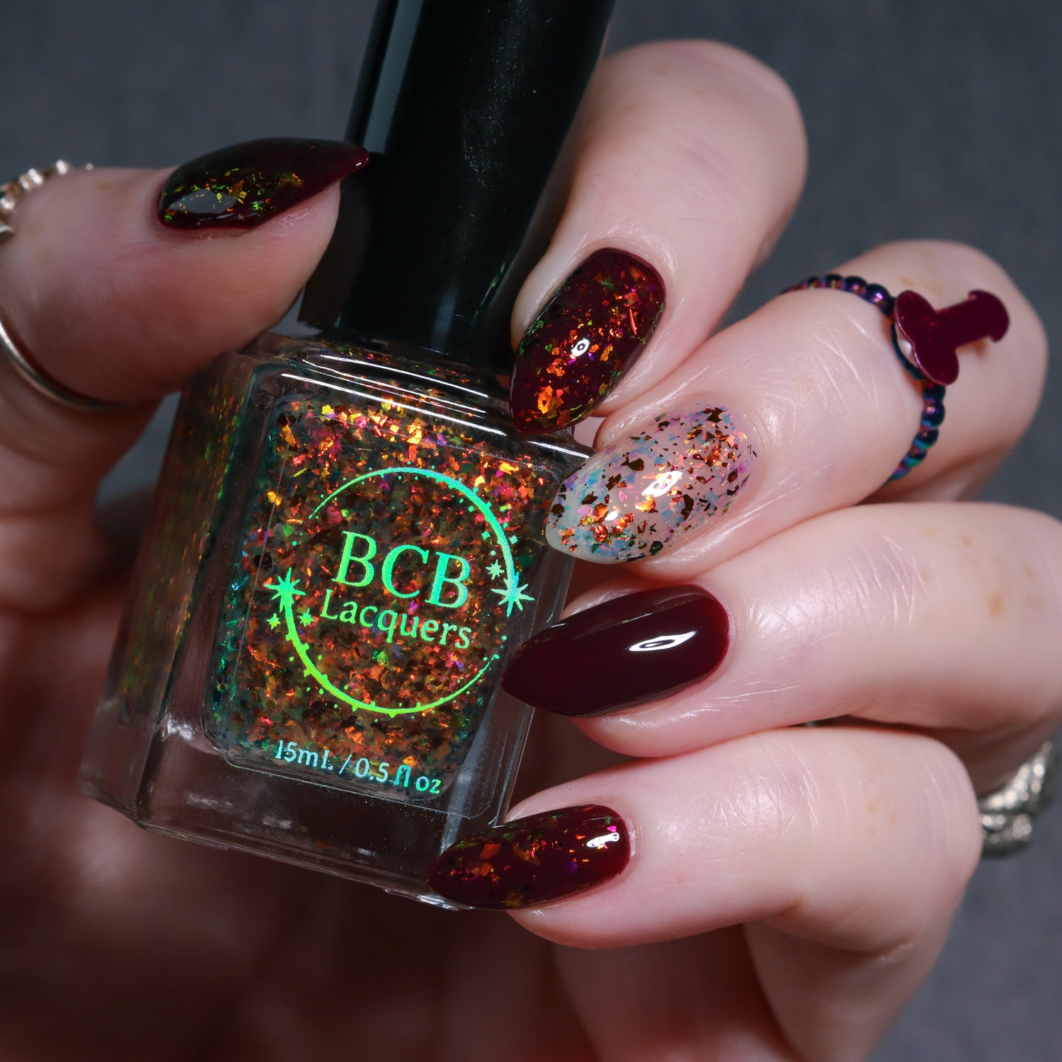 Lust –*TOPPER*: A topper packed with red/orange/gold/green glass flakes and red/orange/gold multichrome flakes.