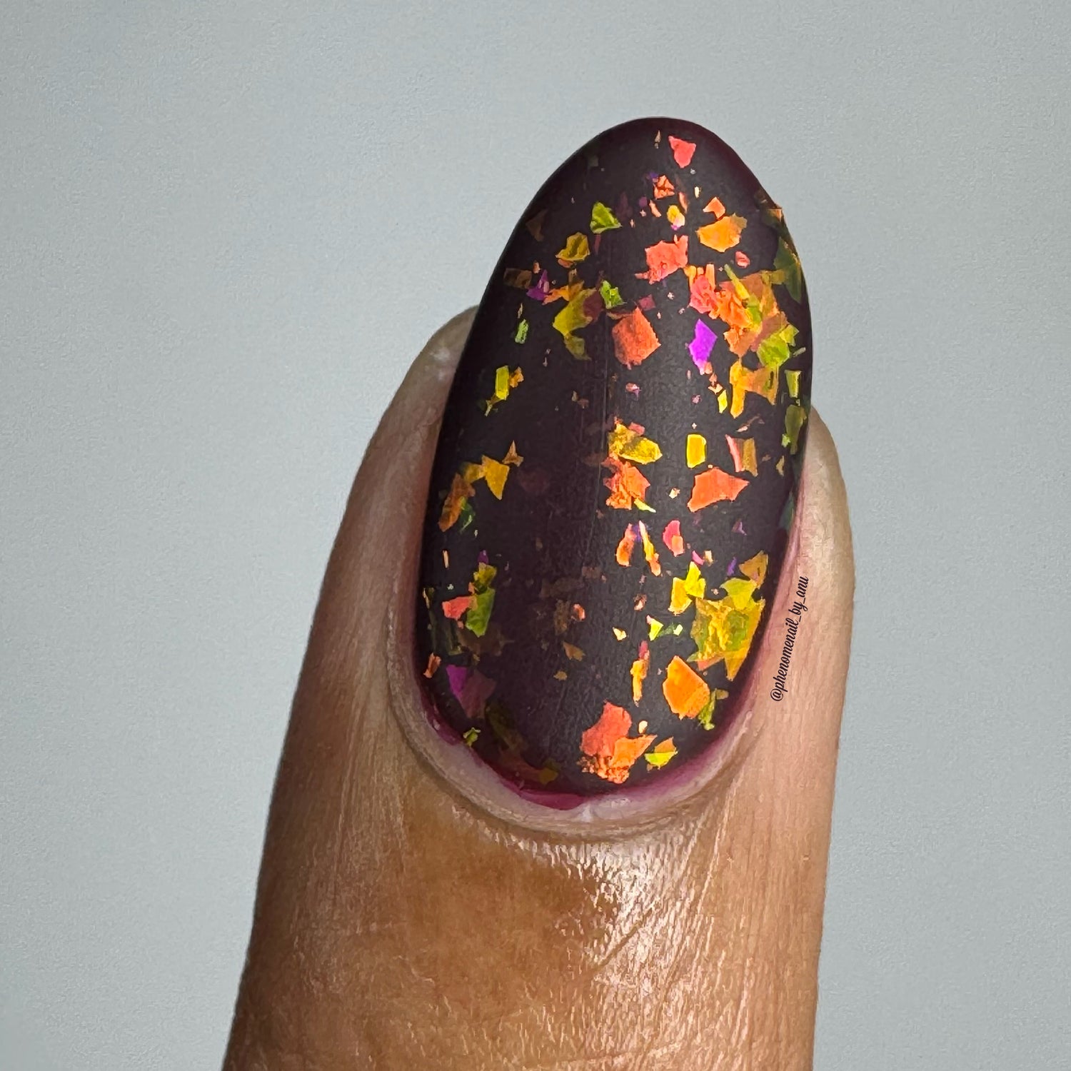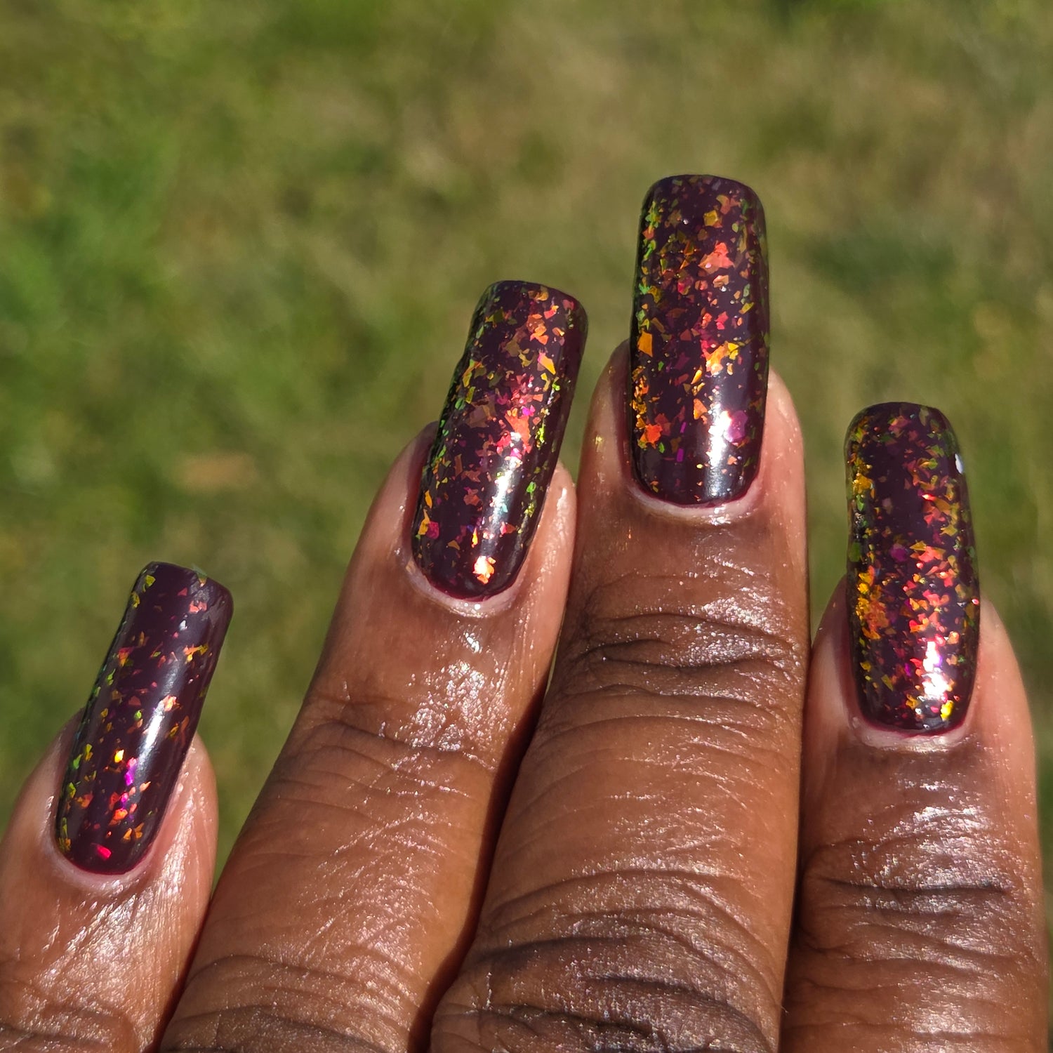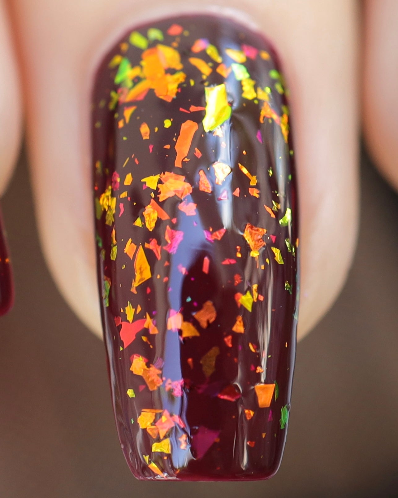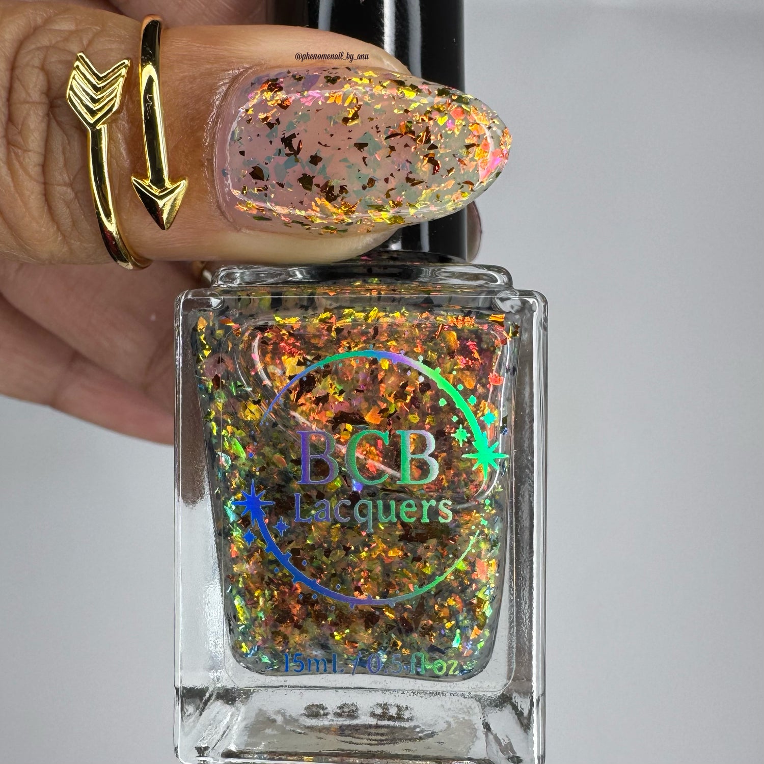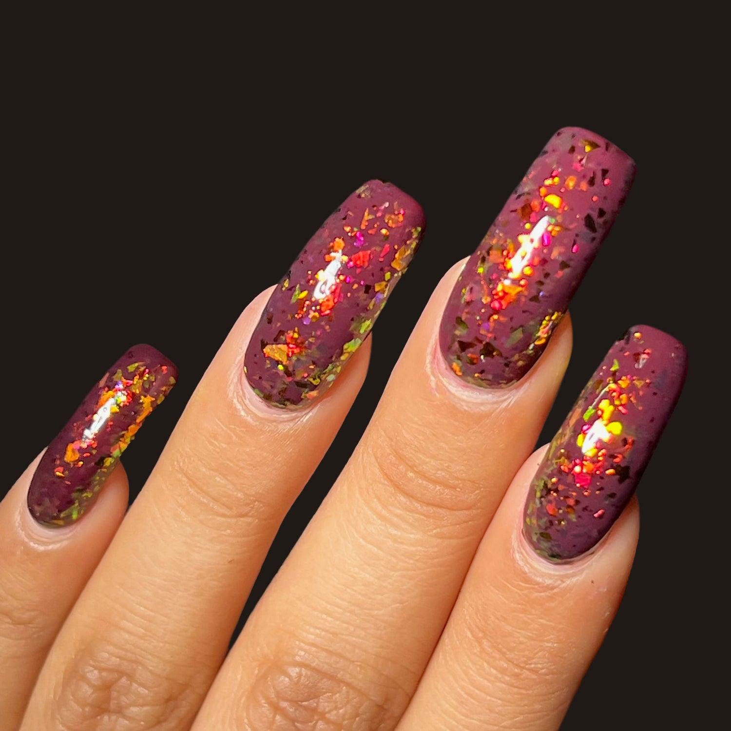 Lust –*TOPPER*: A topper packed with red/orange/gold/green glass flakes and red/orange/gold multichrome flakes.