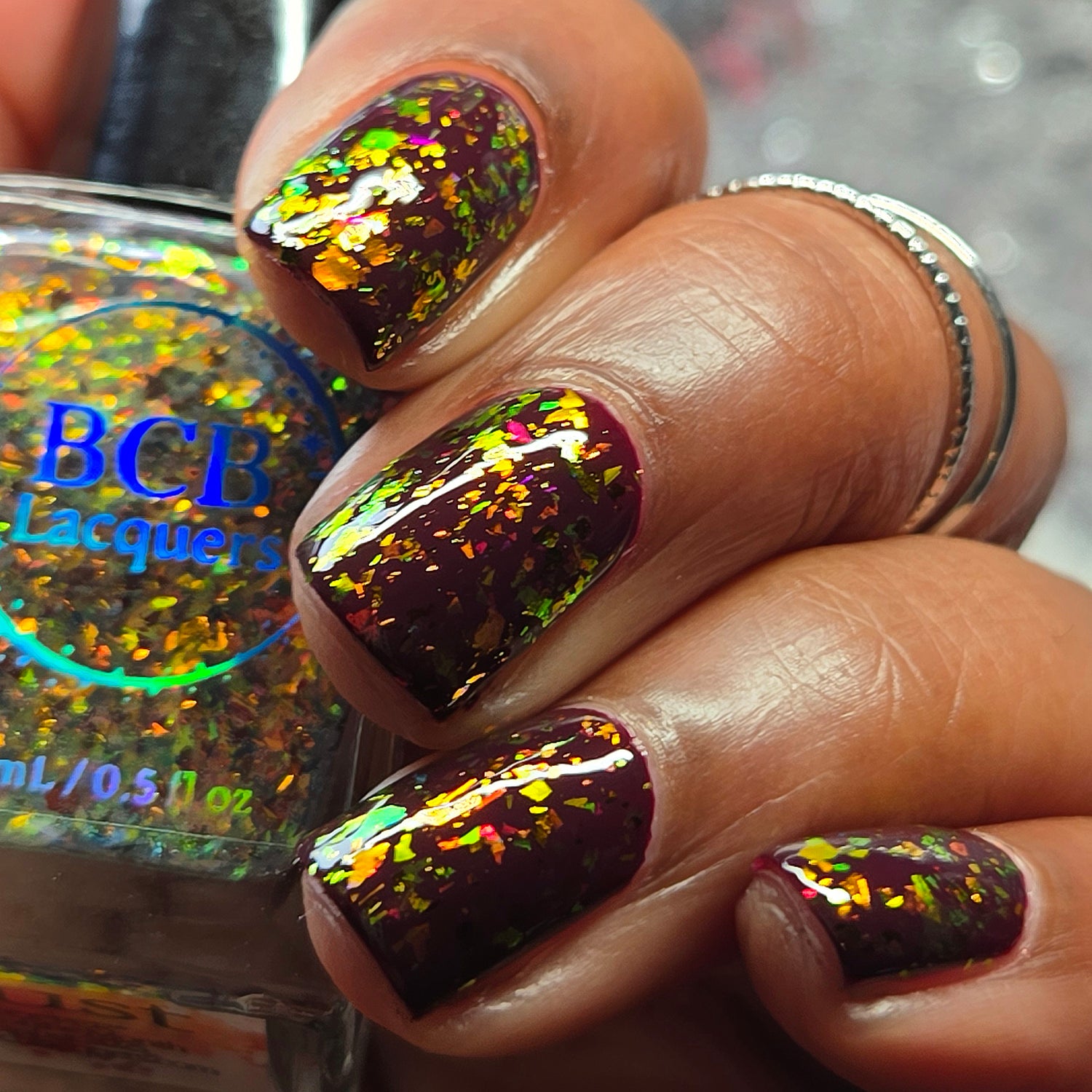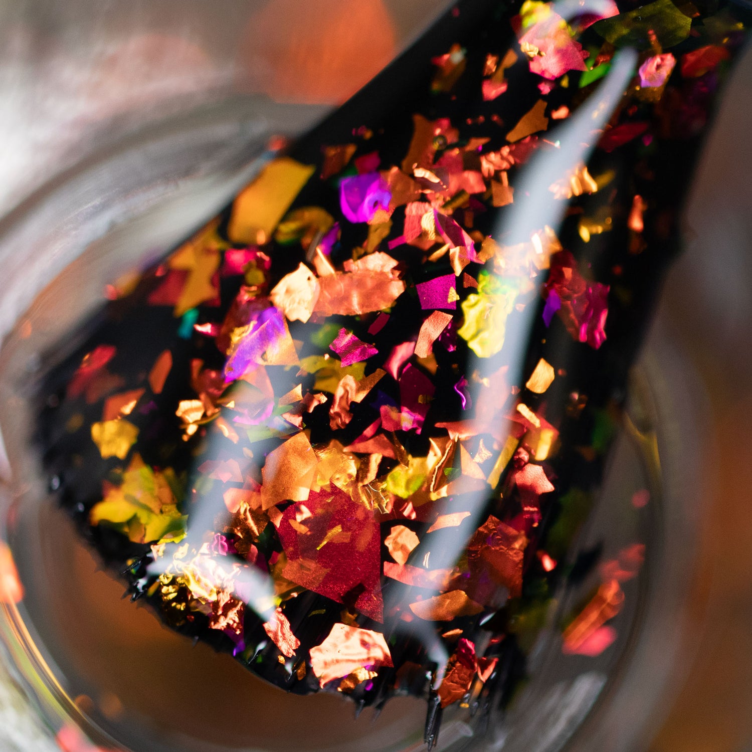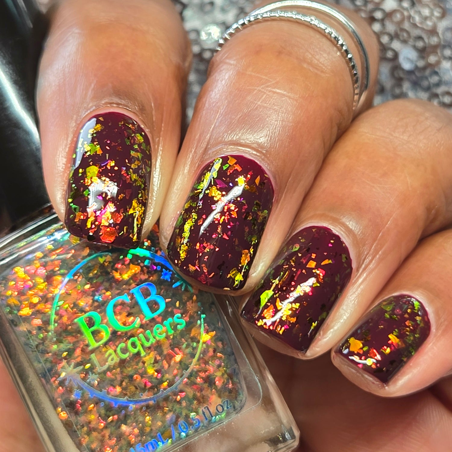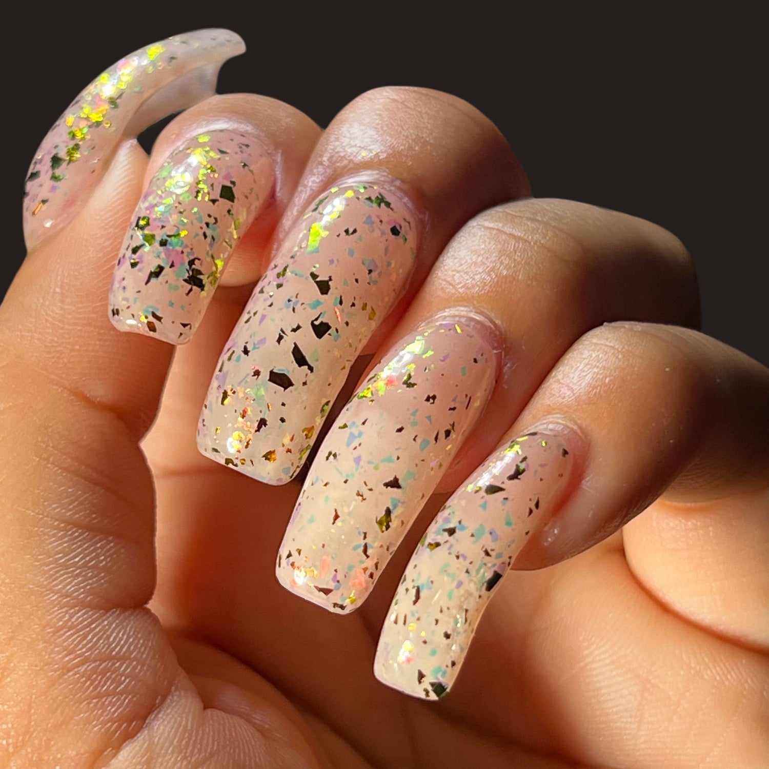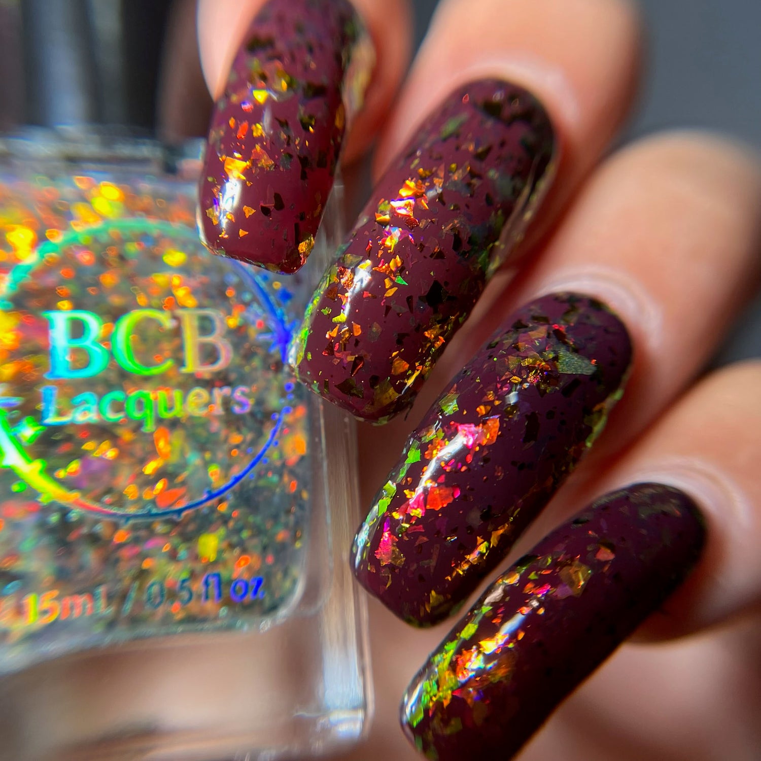 Lust –*TOPPER*: A topper packed with red/orange/gold/green glass flakes and red/orange/gold multichrome flakes.