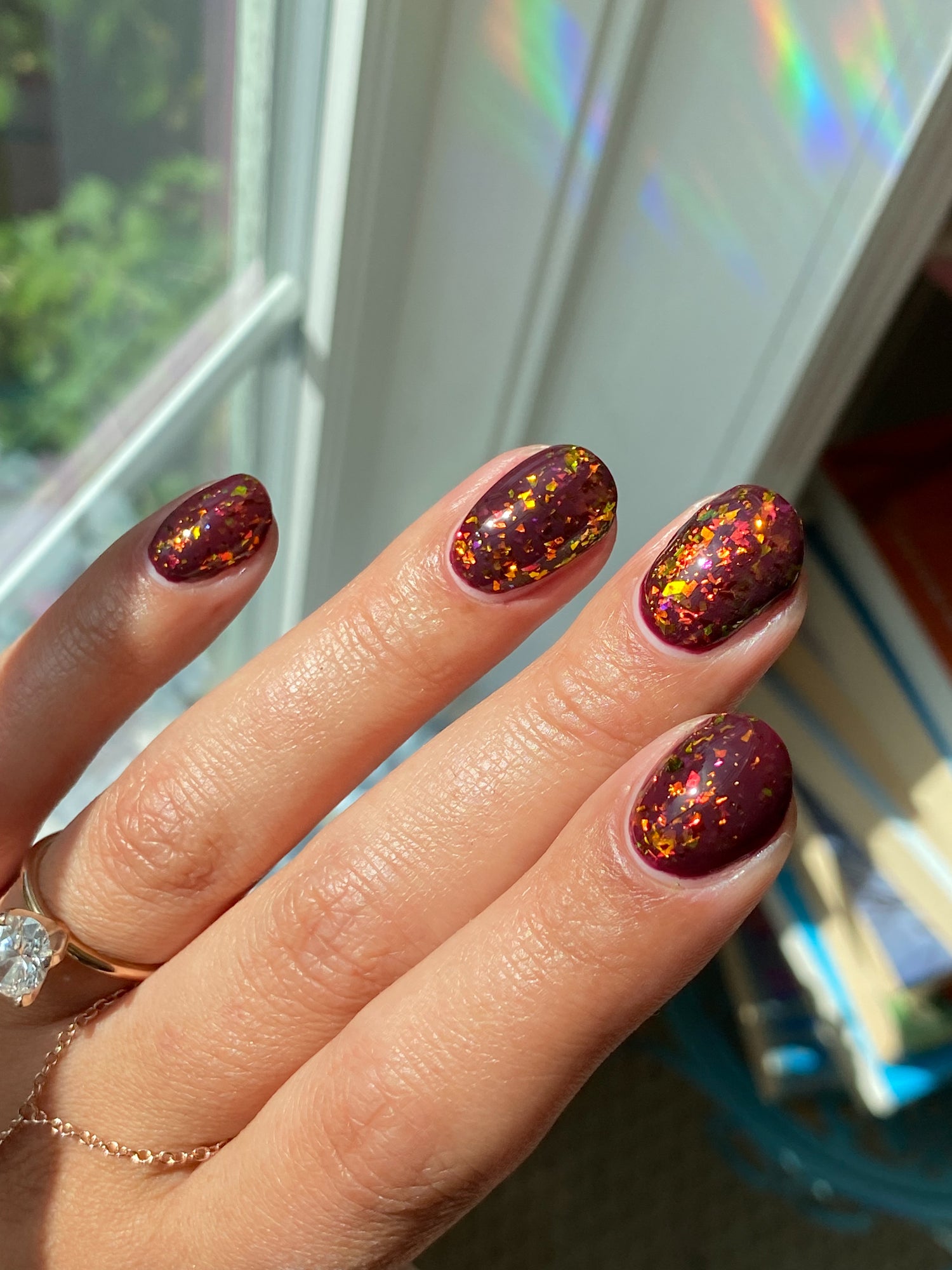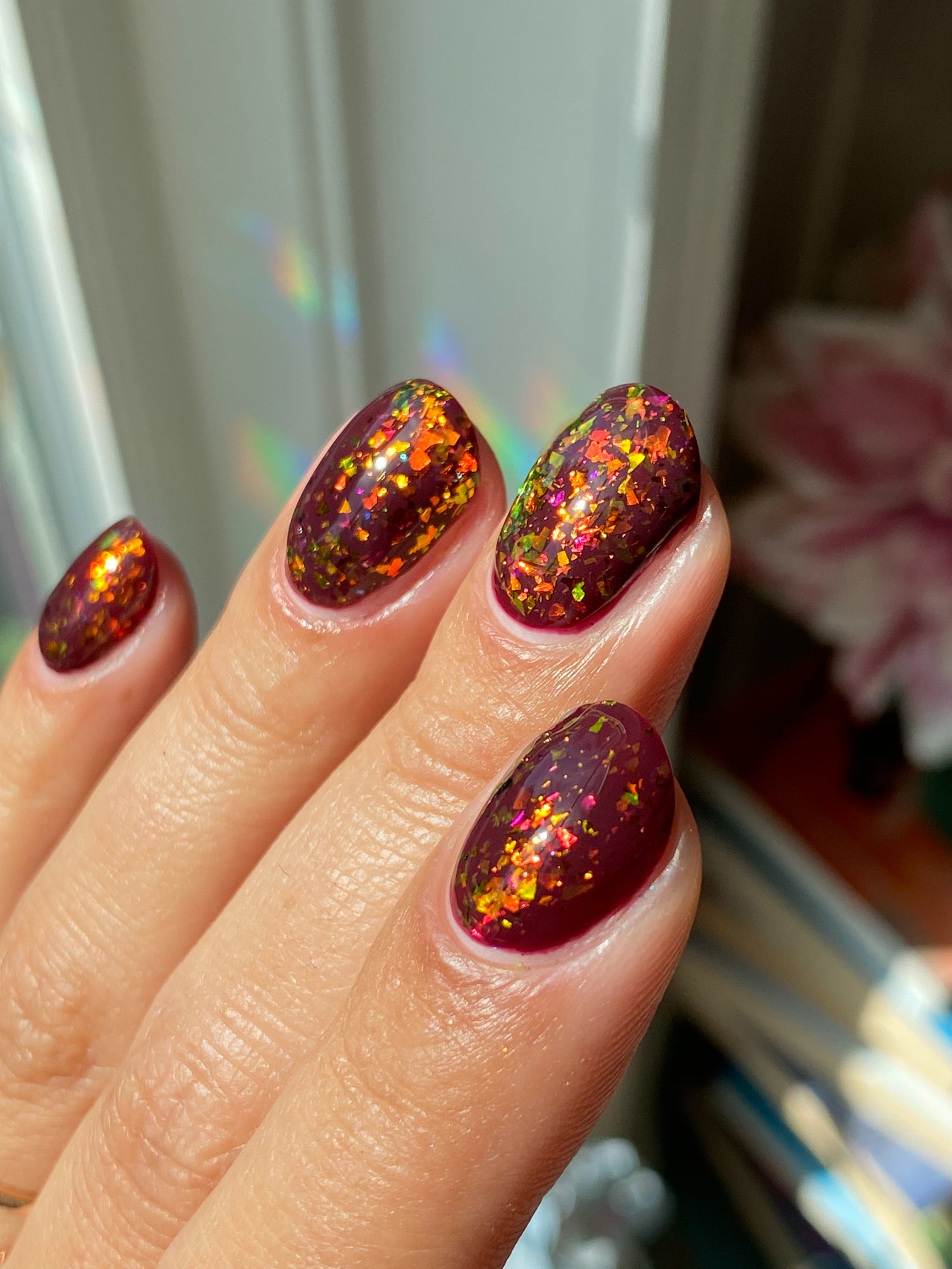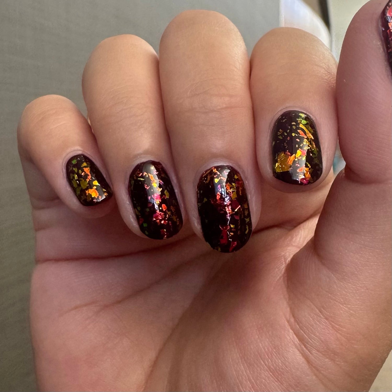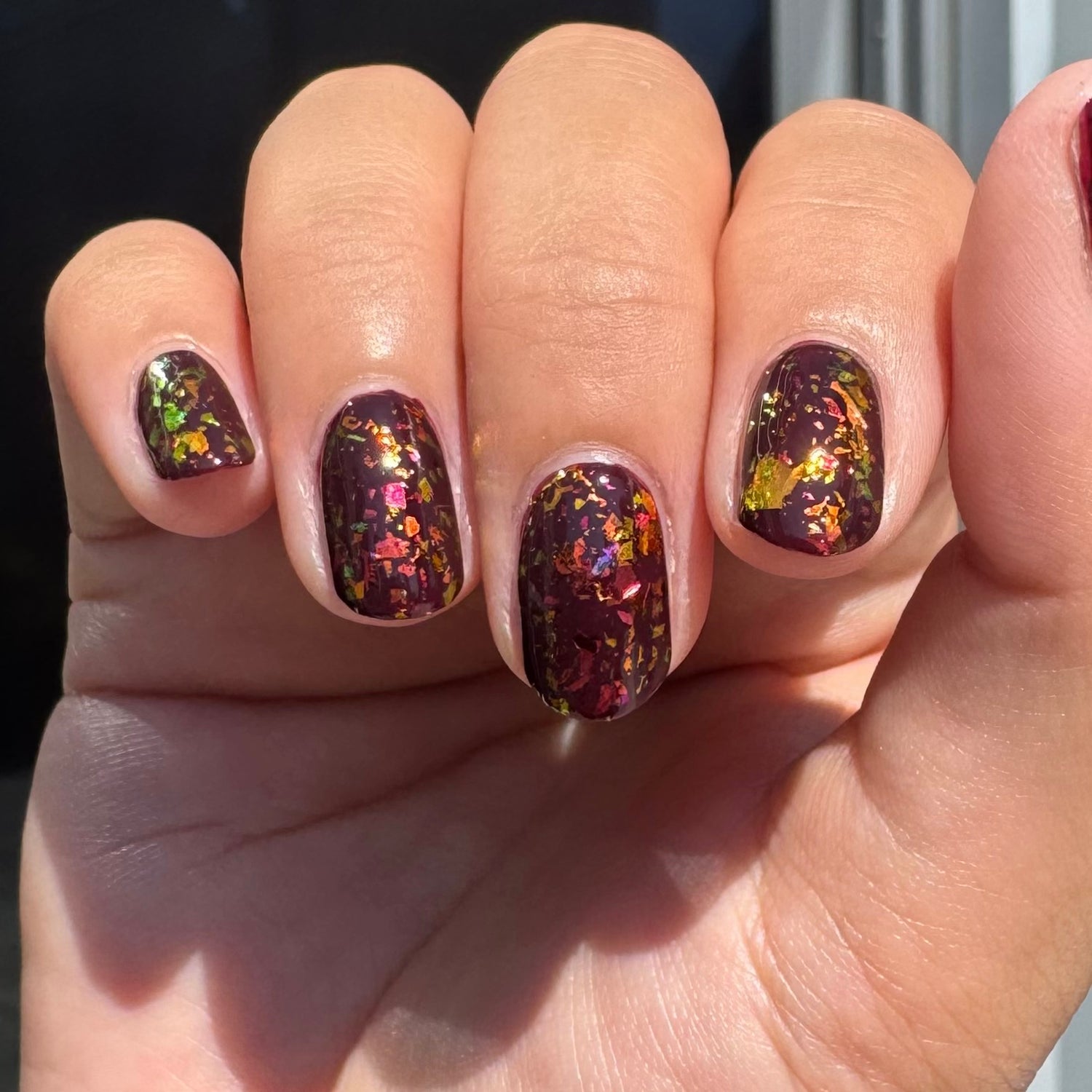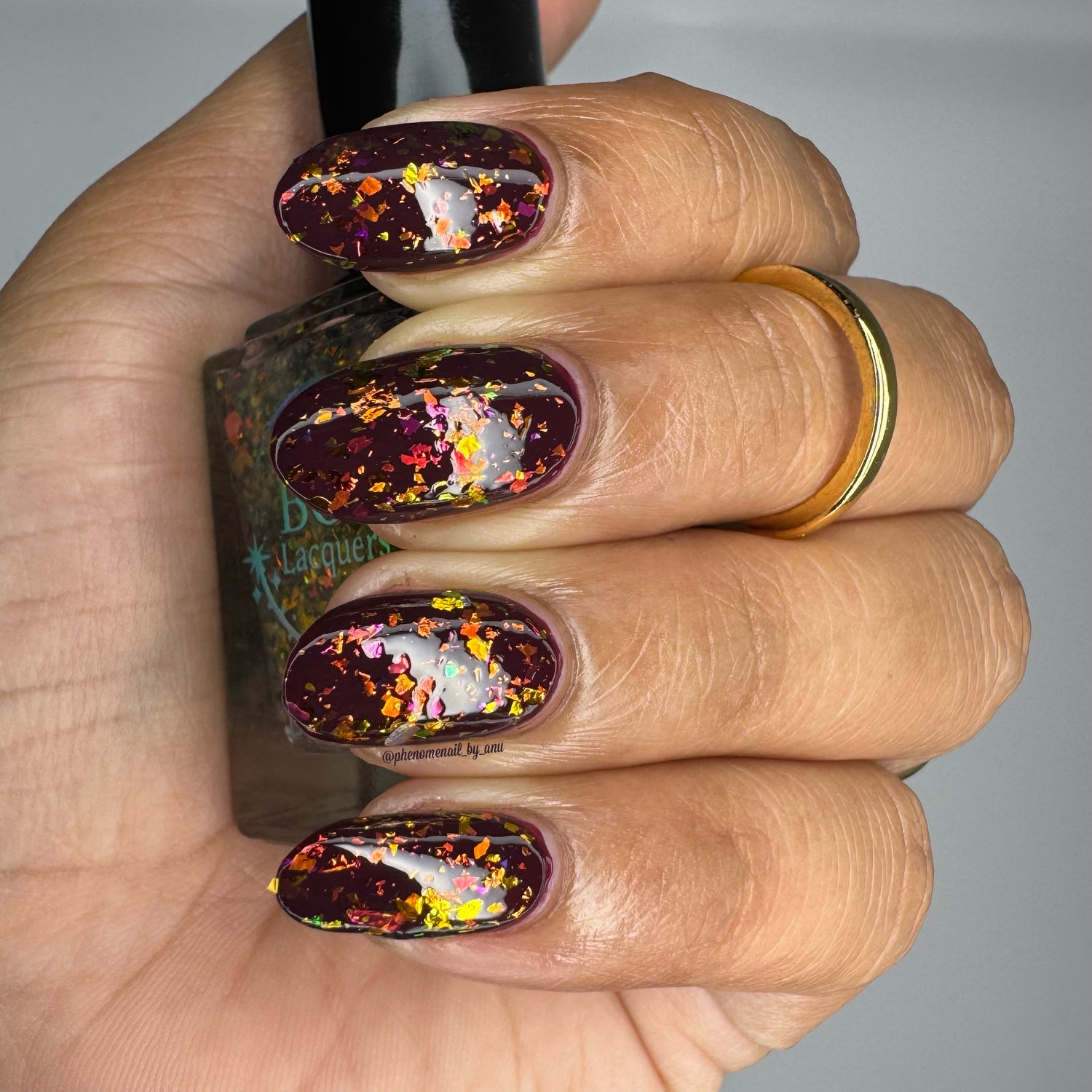 Lust –*TOPPER*: A topper packed with red/orange/gold/green glass flakes and red/orange/gold multichrome flakes.
