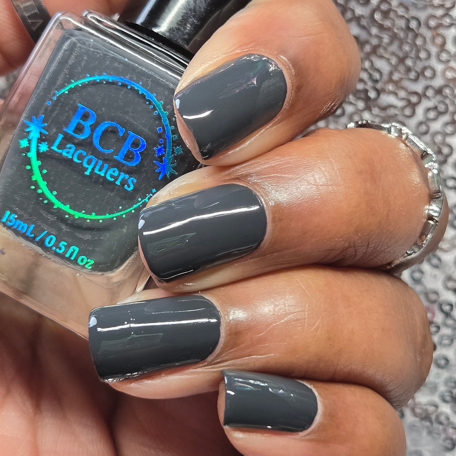 Morally Gray: A deep smokey gray crelly.