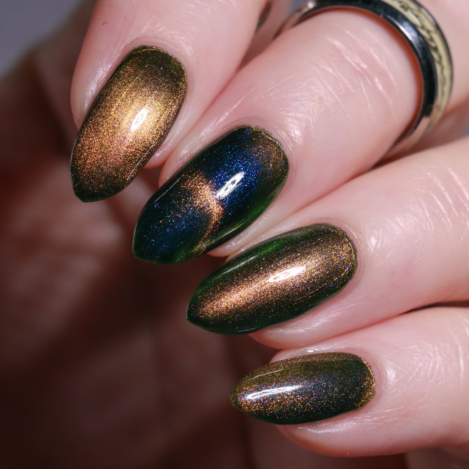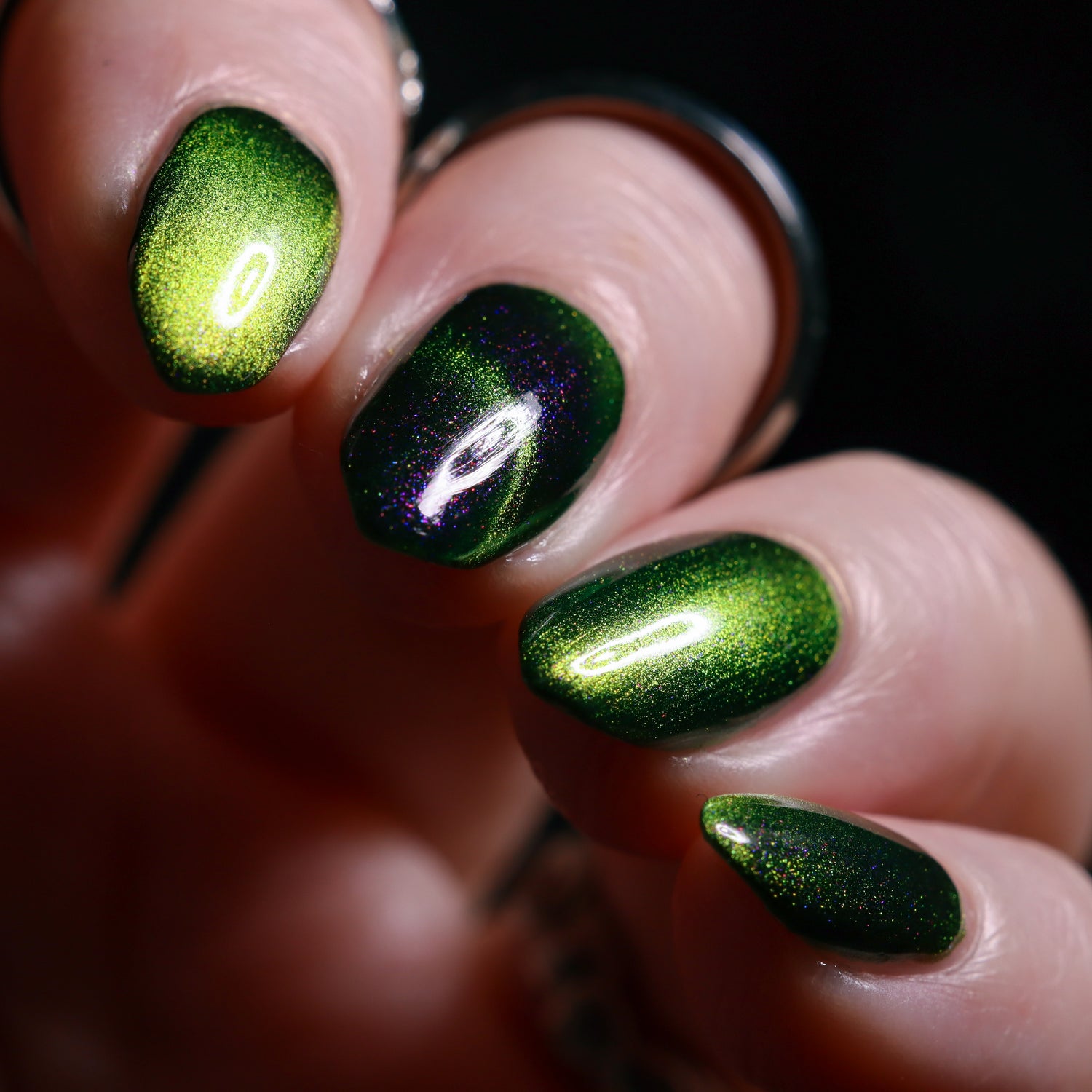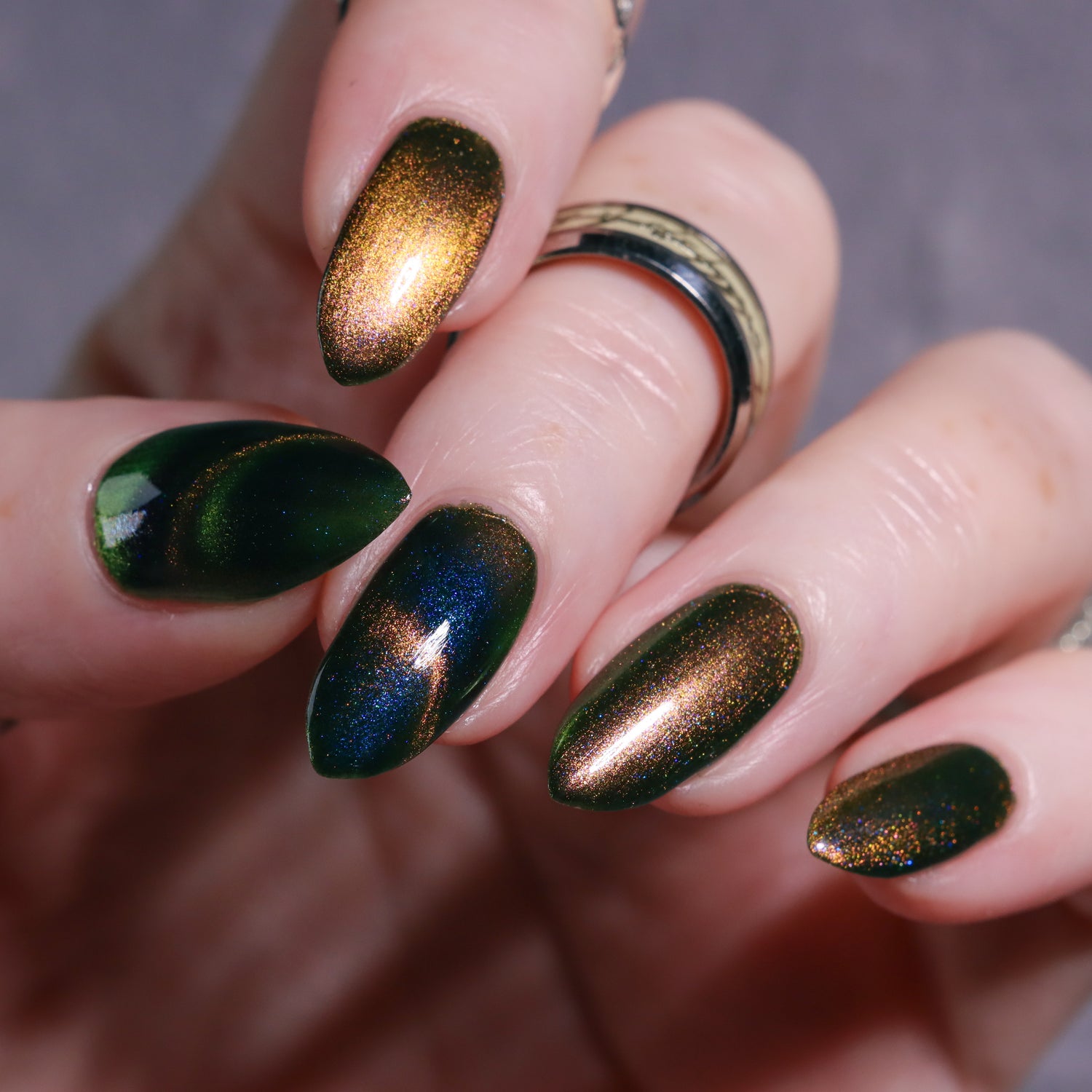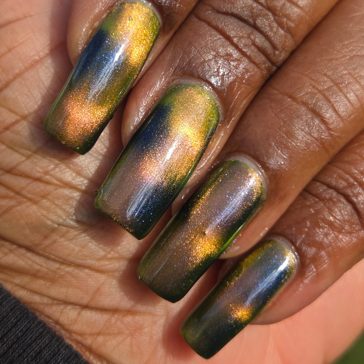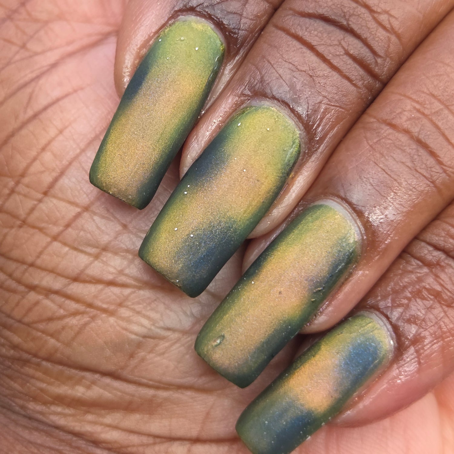 Not All Who Wander Are Lost - *MAGNETIC*: A green jelly with a blue/purple shifting shimmer and a pink/gold/bronze magnetic pull.