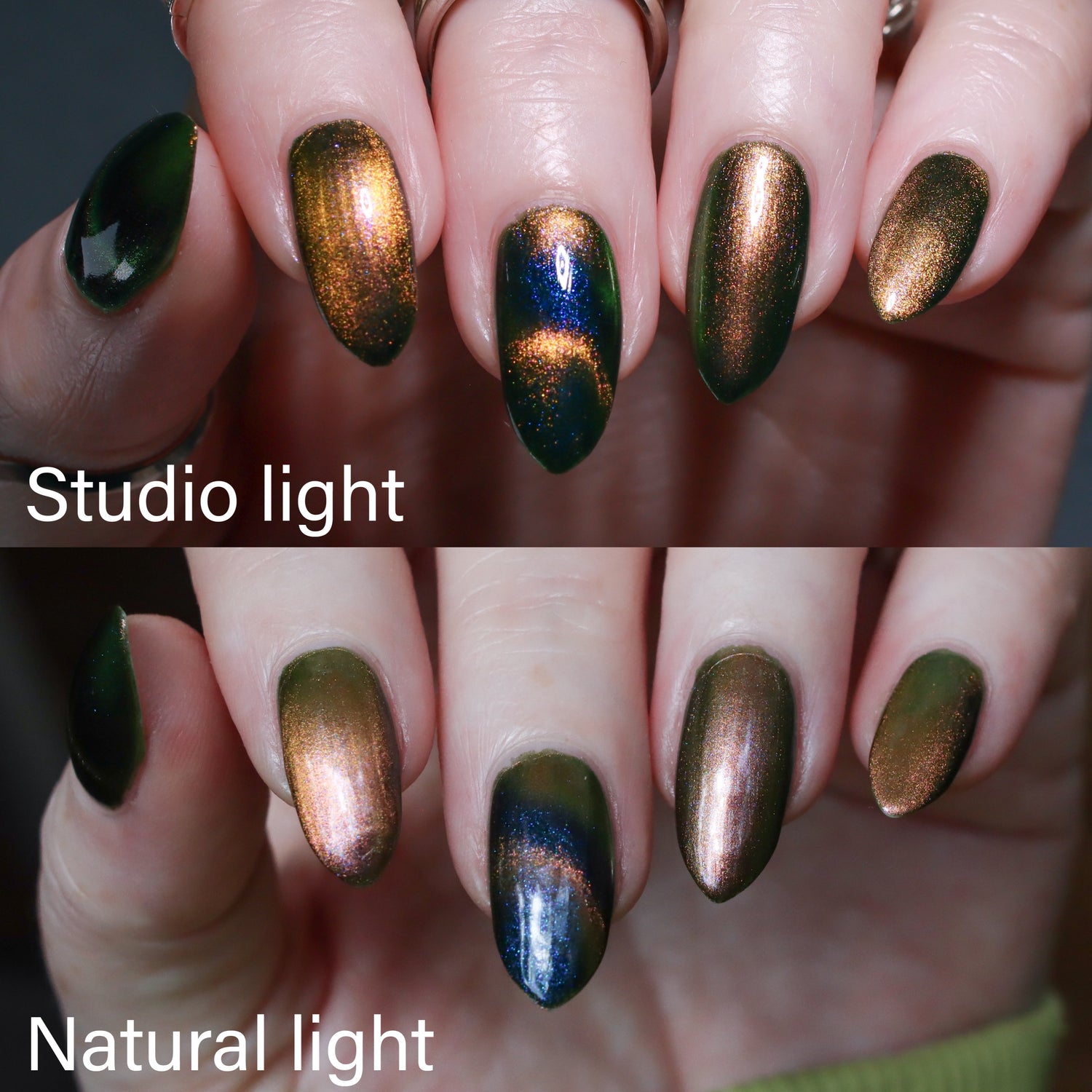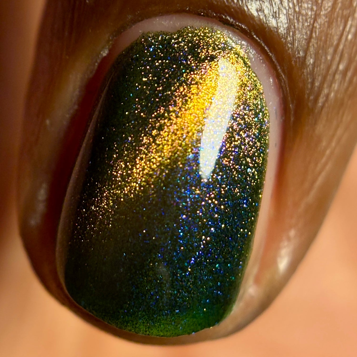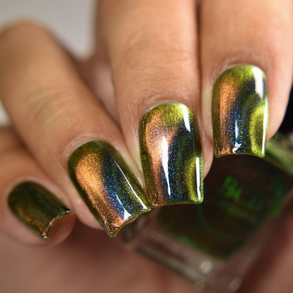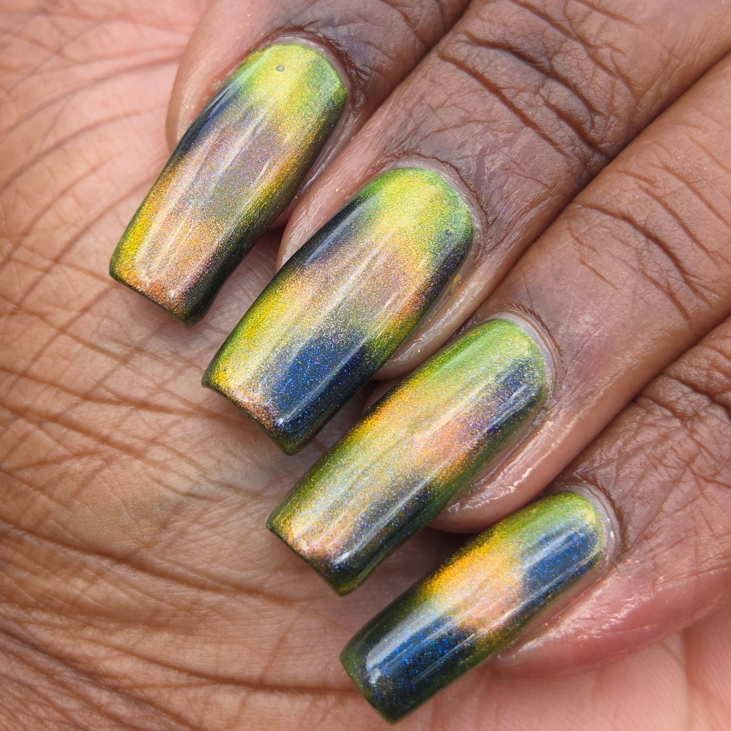 Not All Who Wander Are Lost - *MAGNETIC*: A green jelly with a blue/purple shifting shimmer and a pink/gold/bronze magnetic pull.