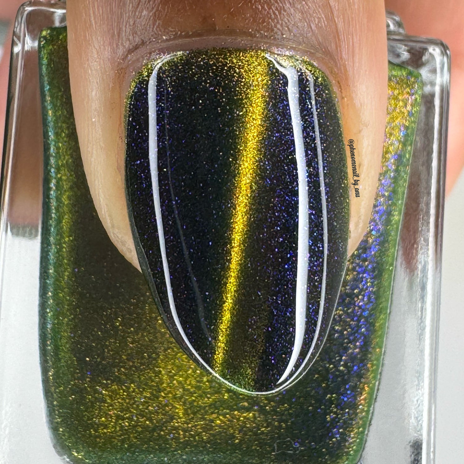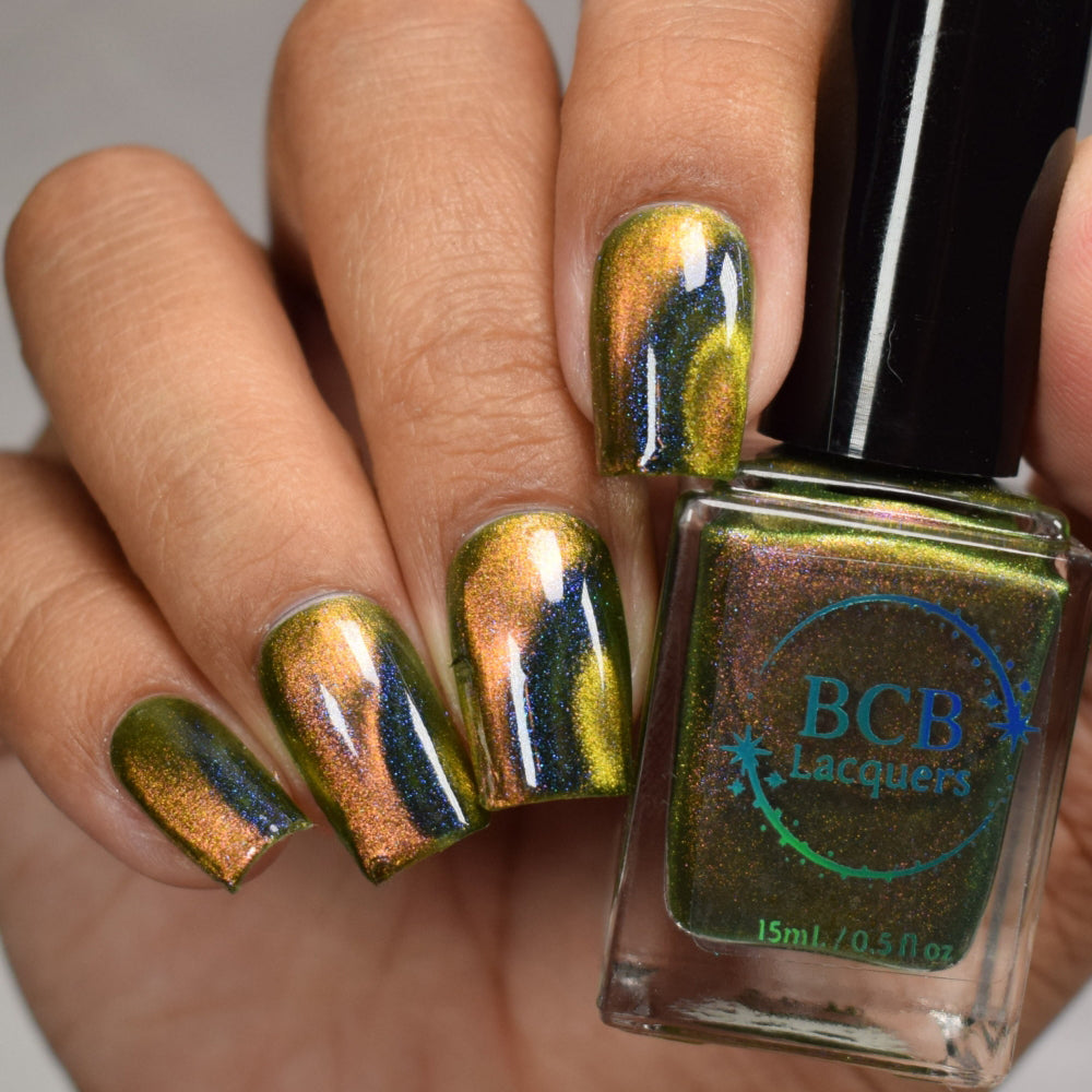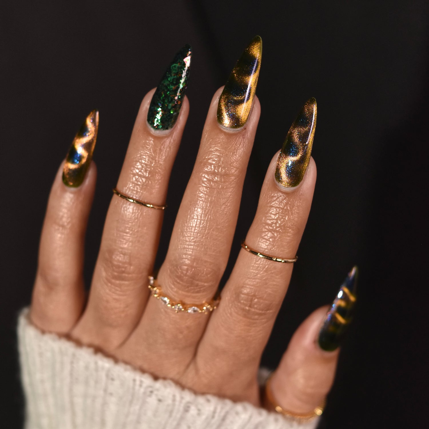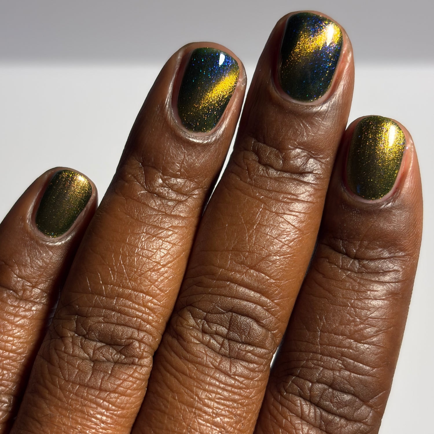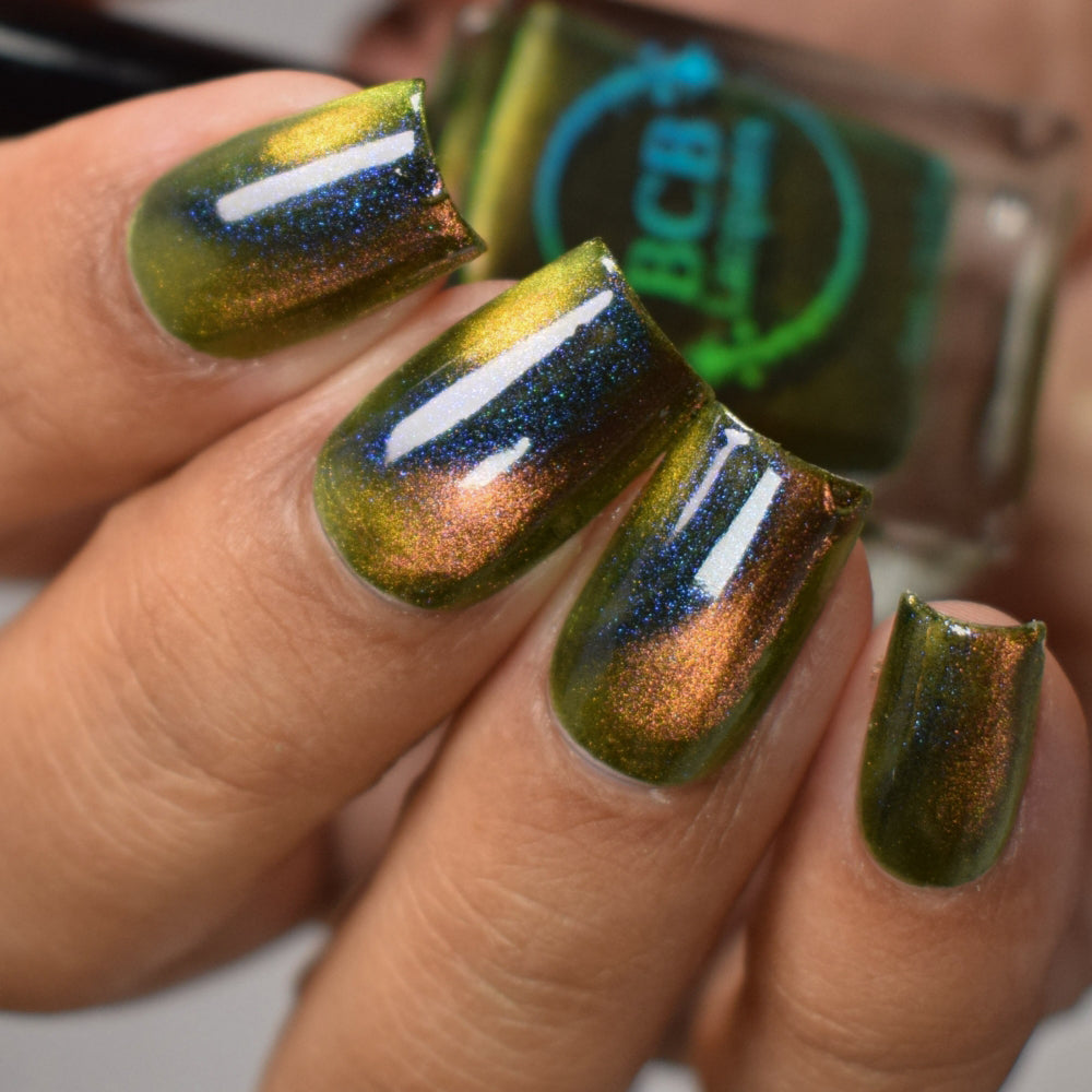 Not All Who Wander Are Lost - *MAGNETIC*: A green jelly with a blue/purple shifting shimmer and a pink/gold/bronze magnetic pull.