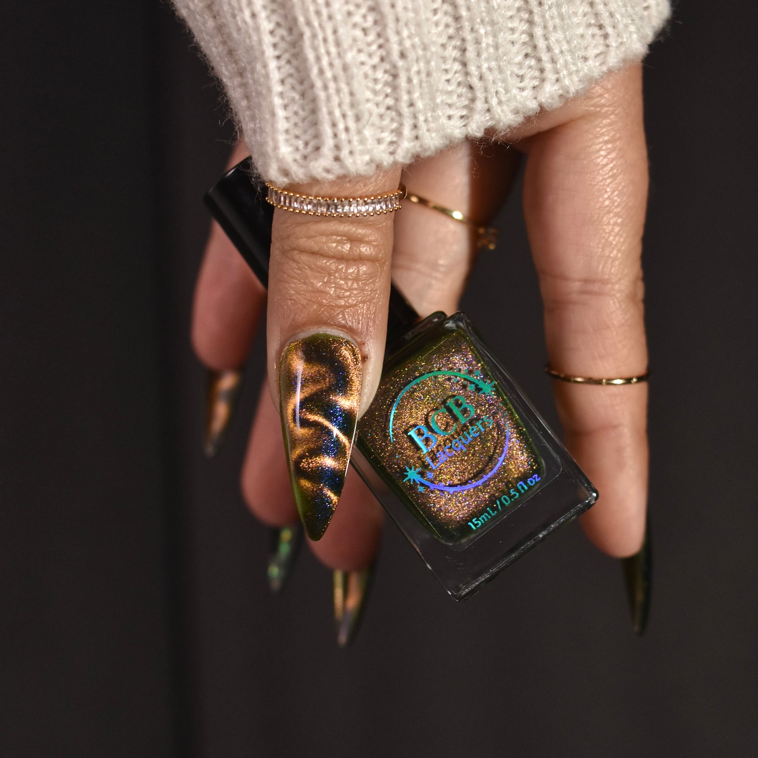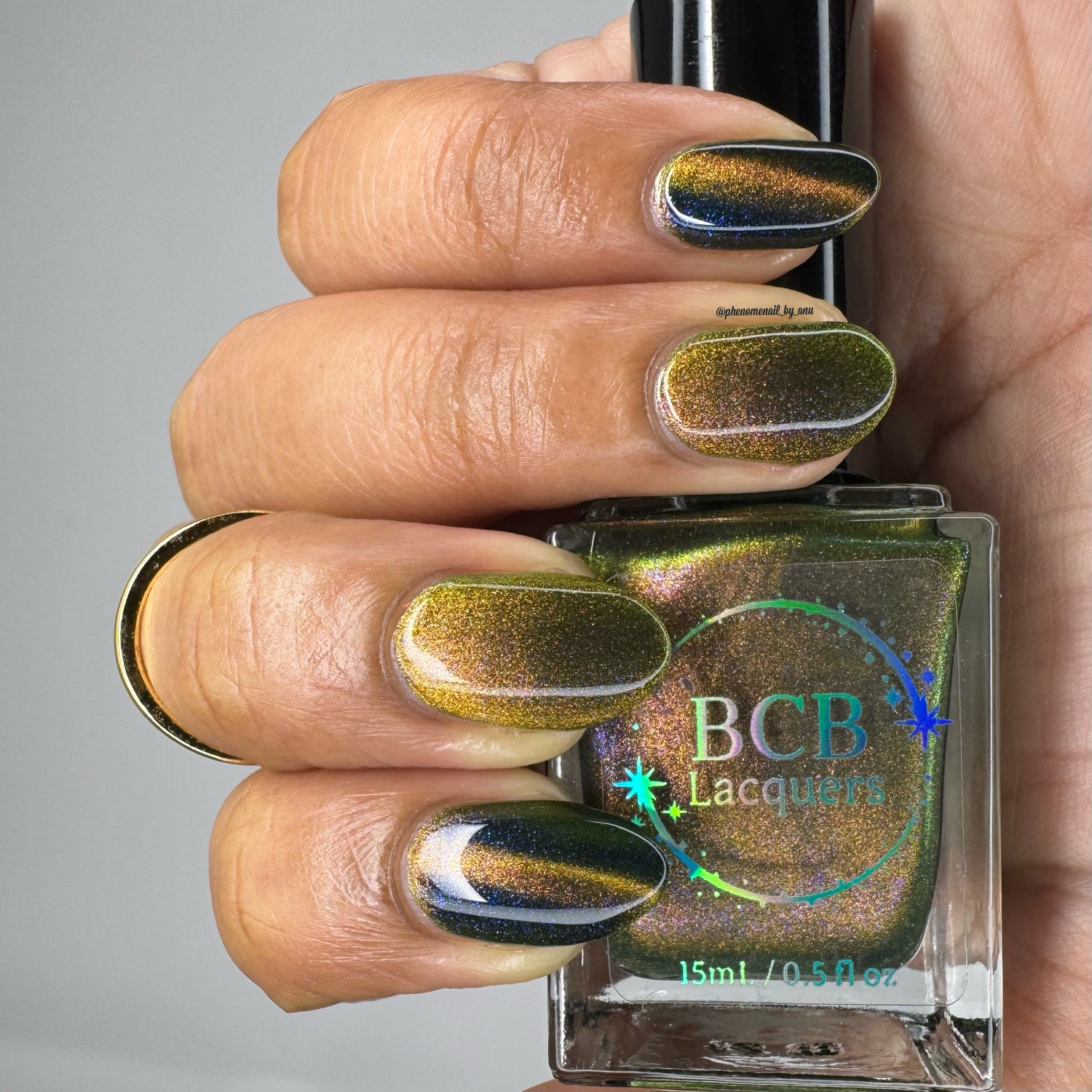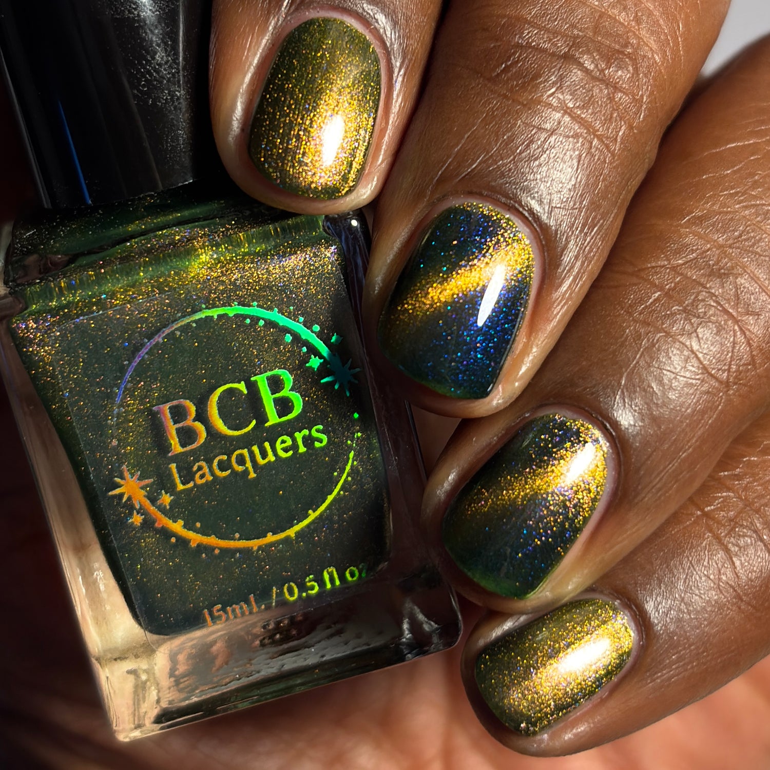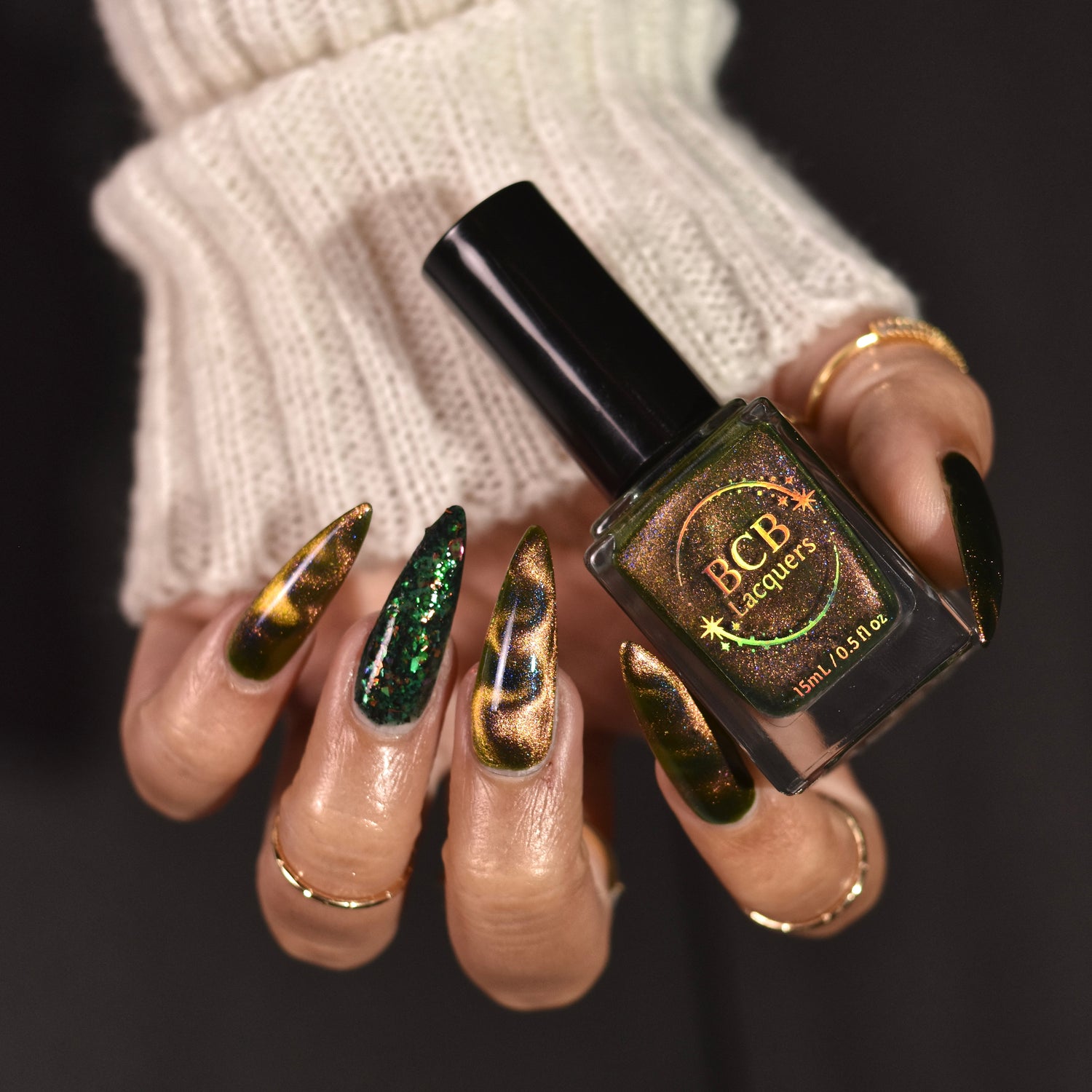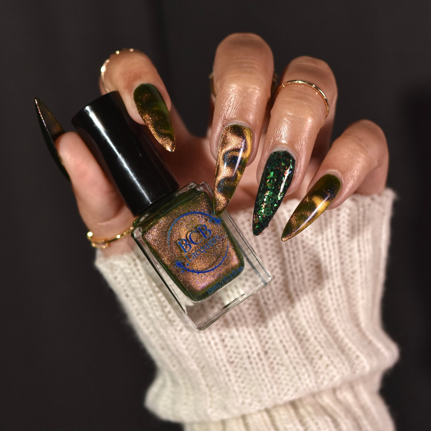 Not All Who Wander Are Lost - *MAGNETIC*: A green jelly with a blue/purple shifting shimmer and a pink/gold/bronze magnetic pull.