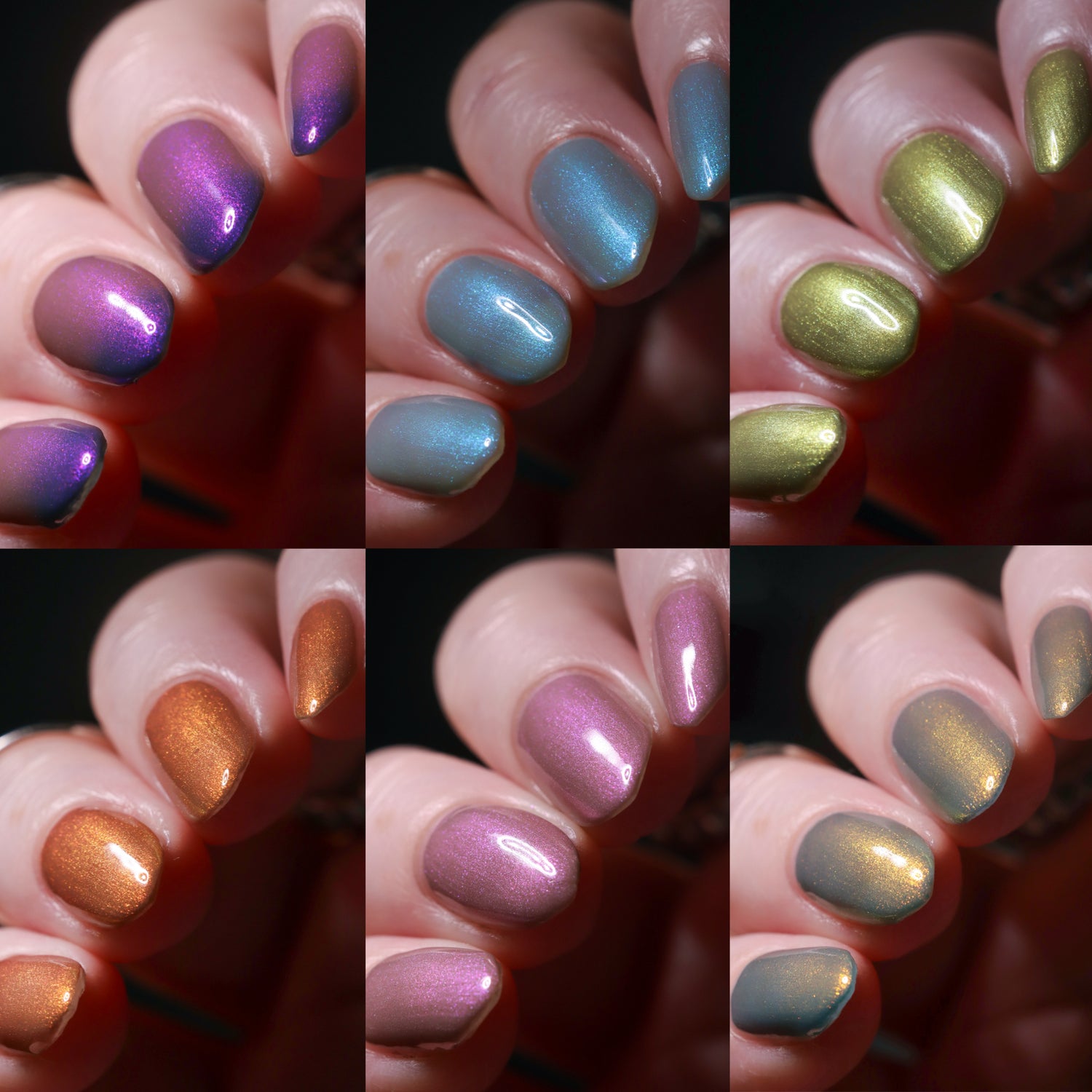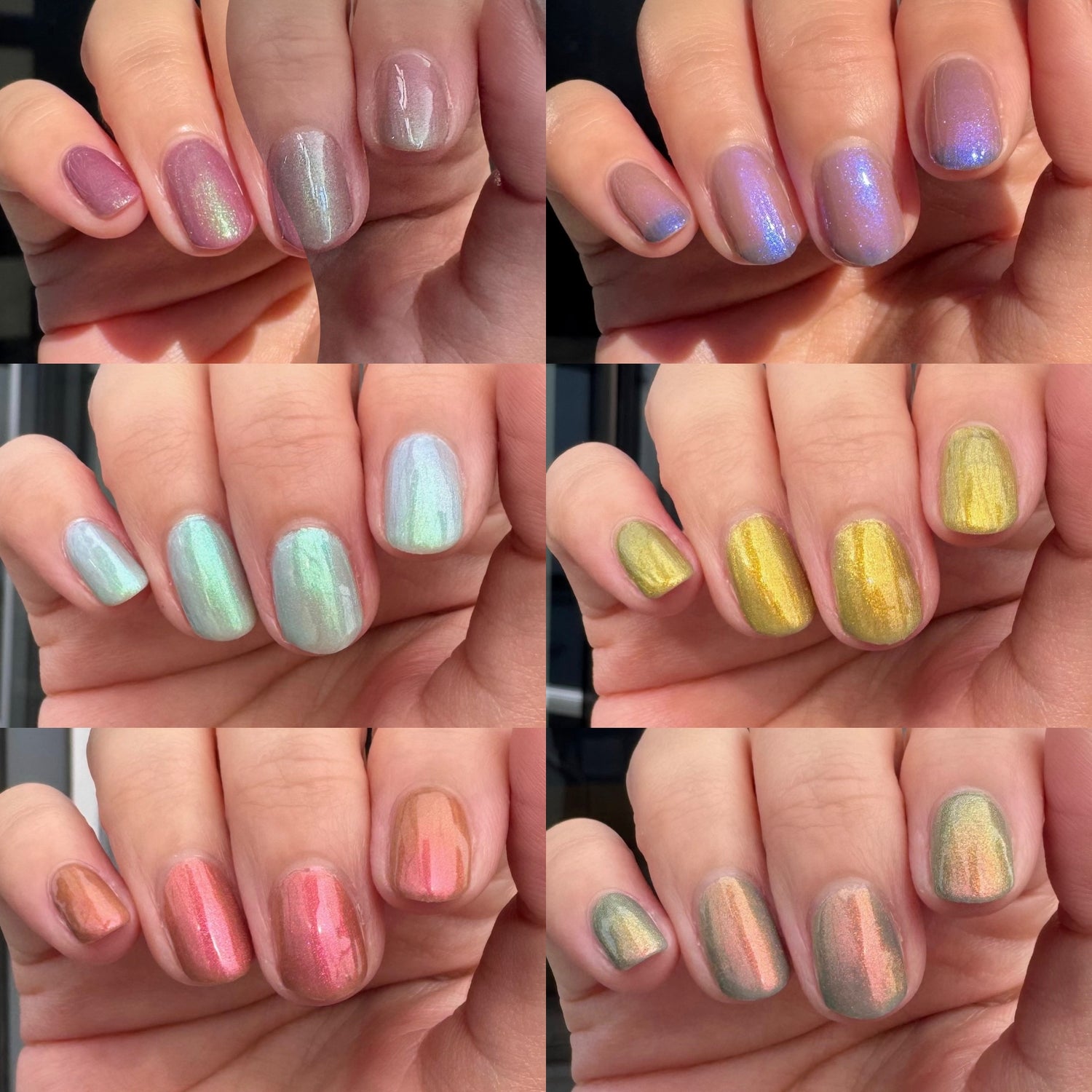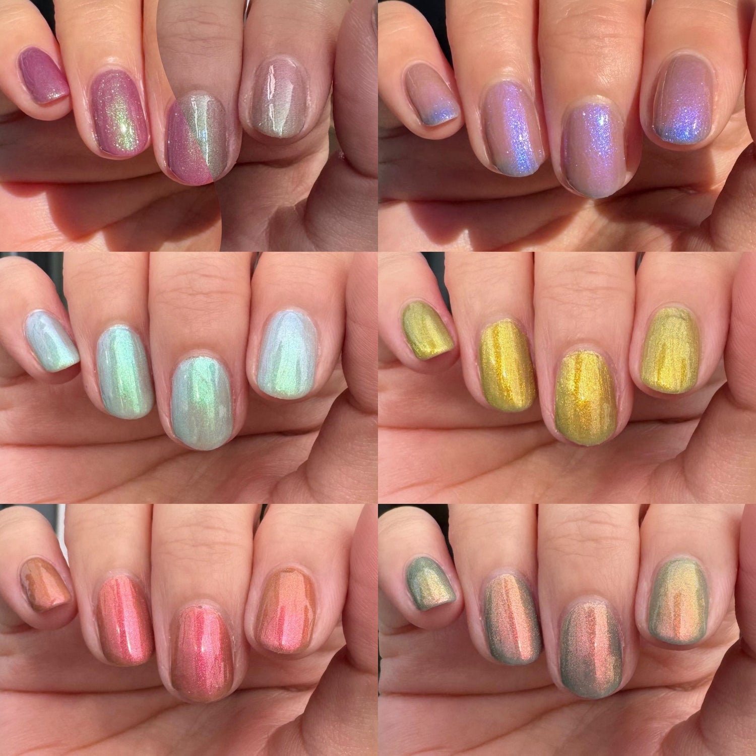 • I Will Not Be Parted From You: A taupe crelly with a strong pink/purple/gold shifting shimmer.