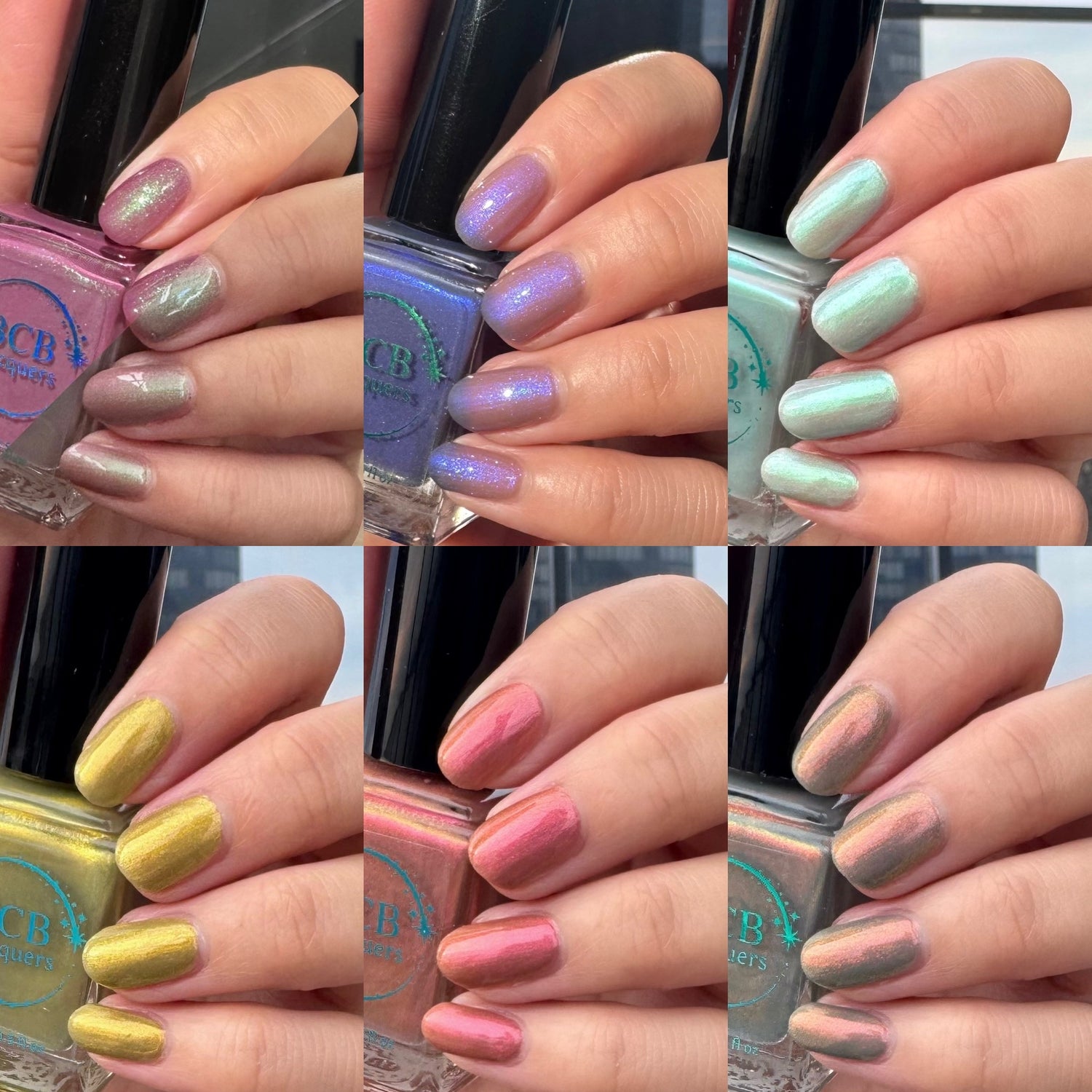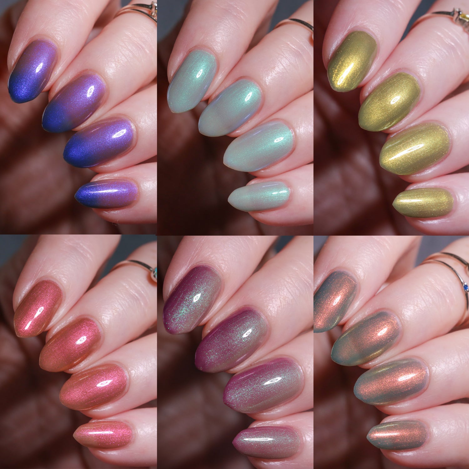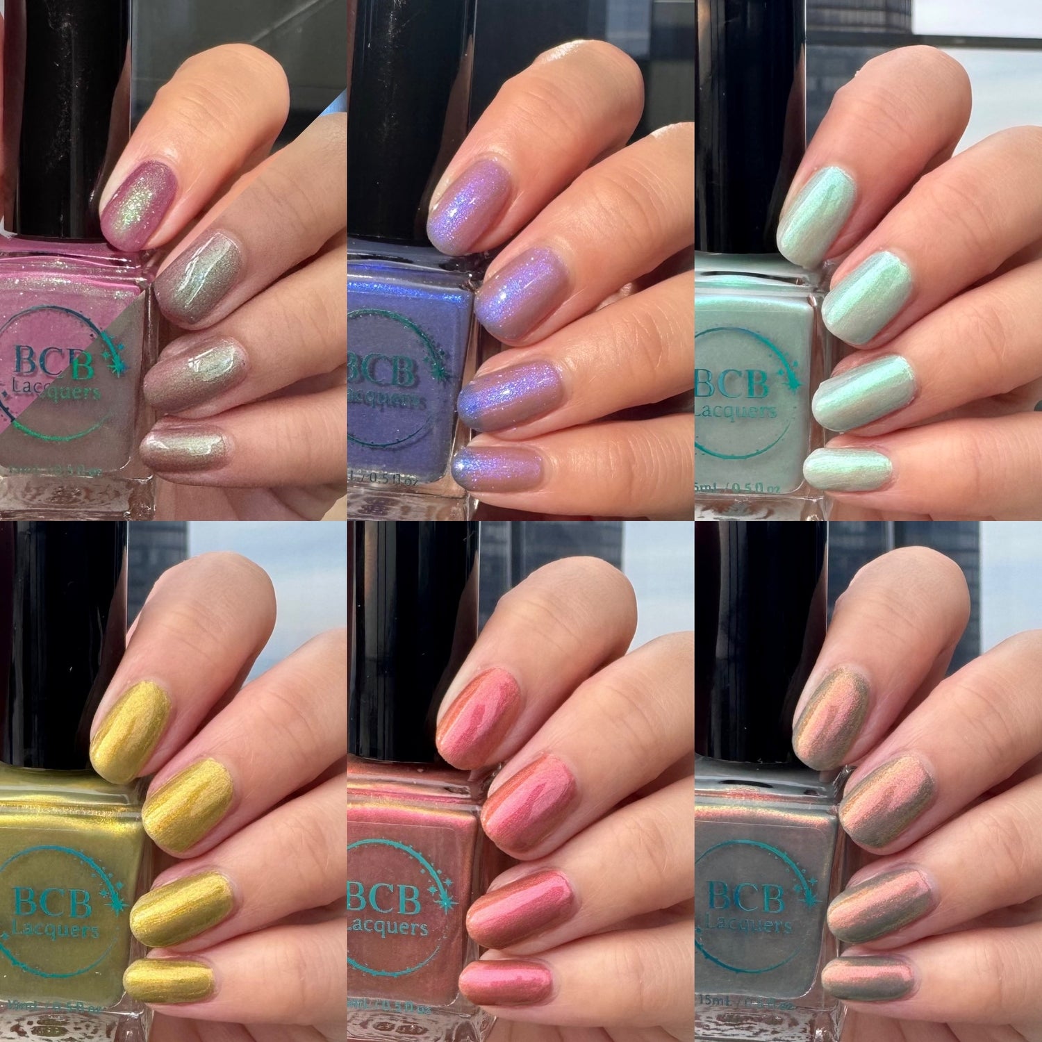 • I Will Not Be Parted From You: A taupe crelly with a strong pink/purple/gold shifting shimmer.