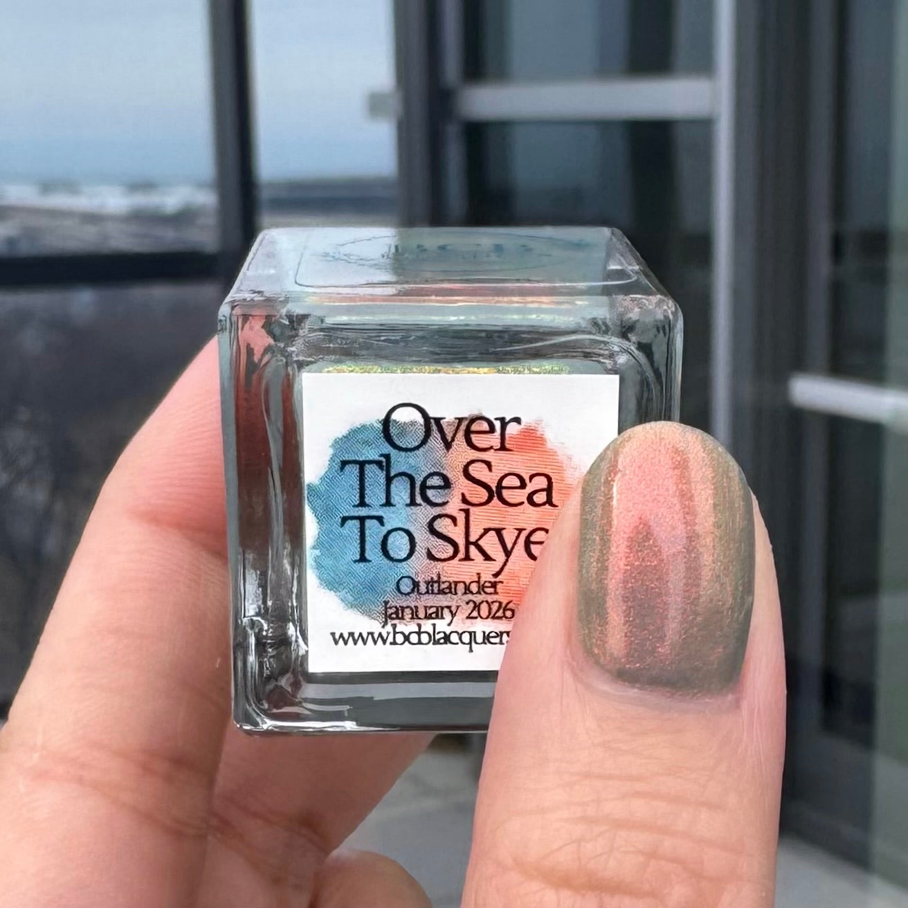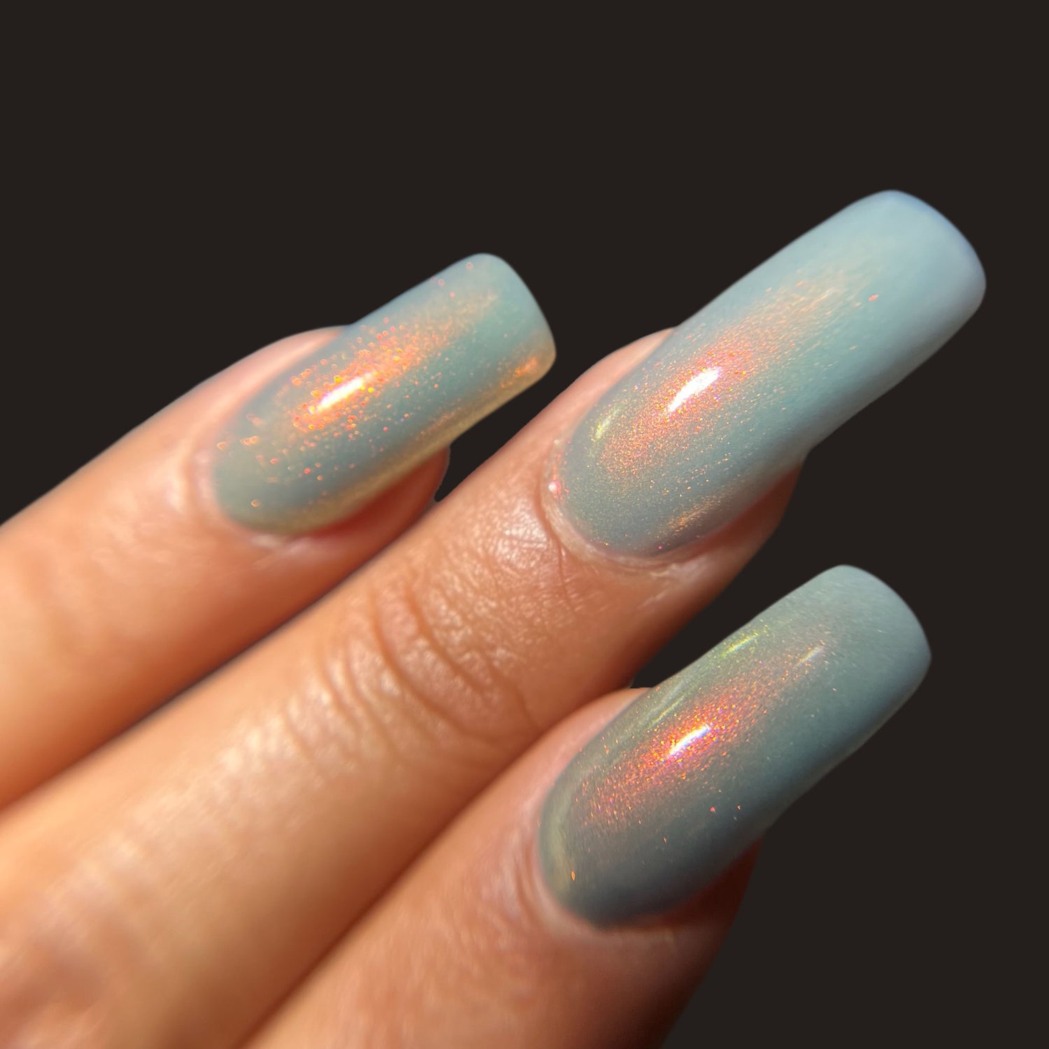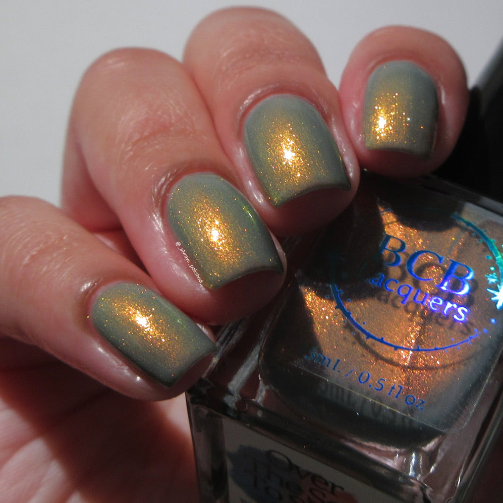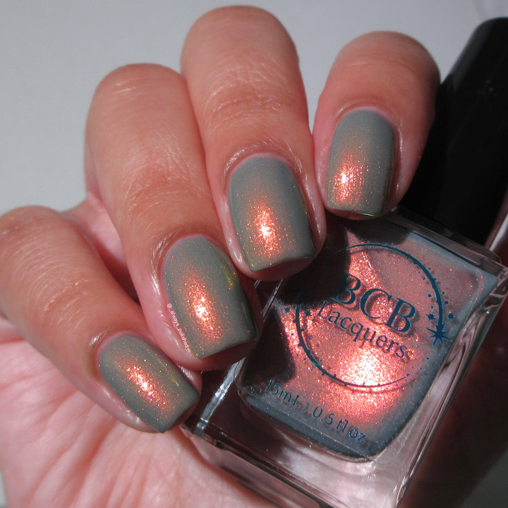 Over The Sea To Skye: A light smokey blue crelly with a strong red/orange/gold/green shifting shimmer.