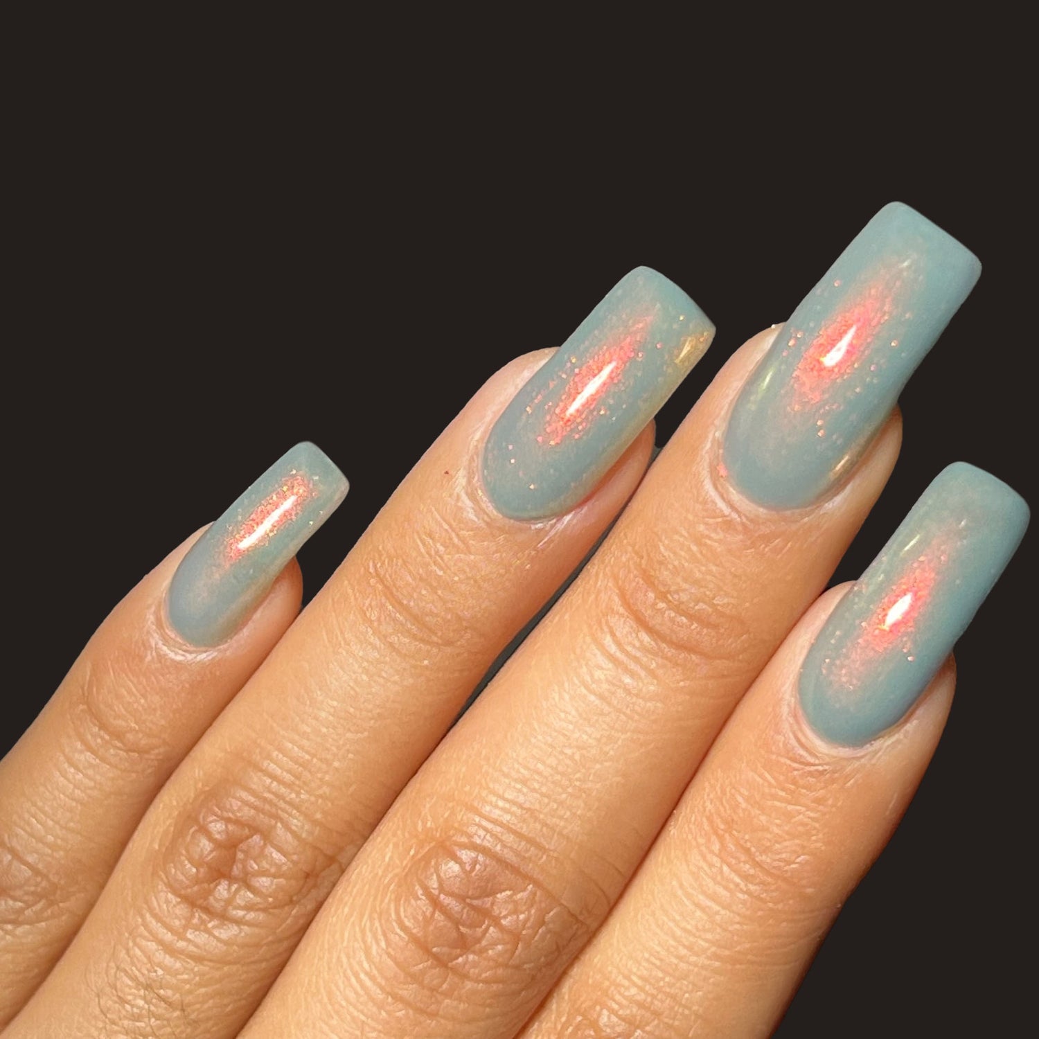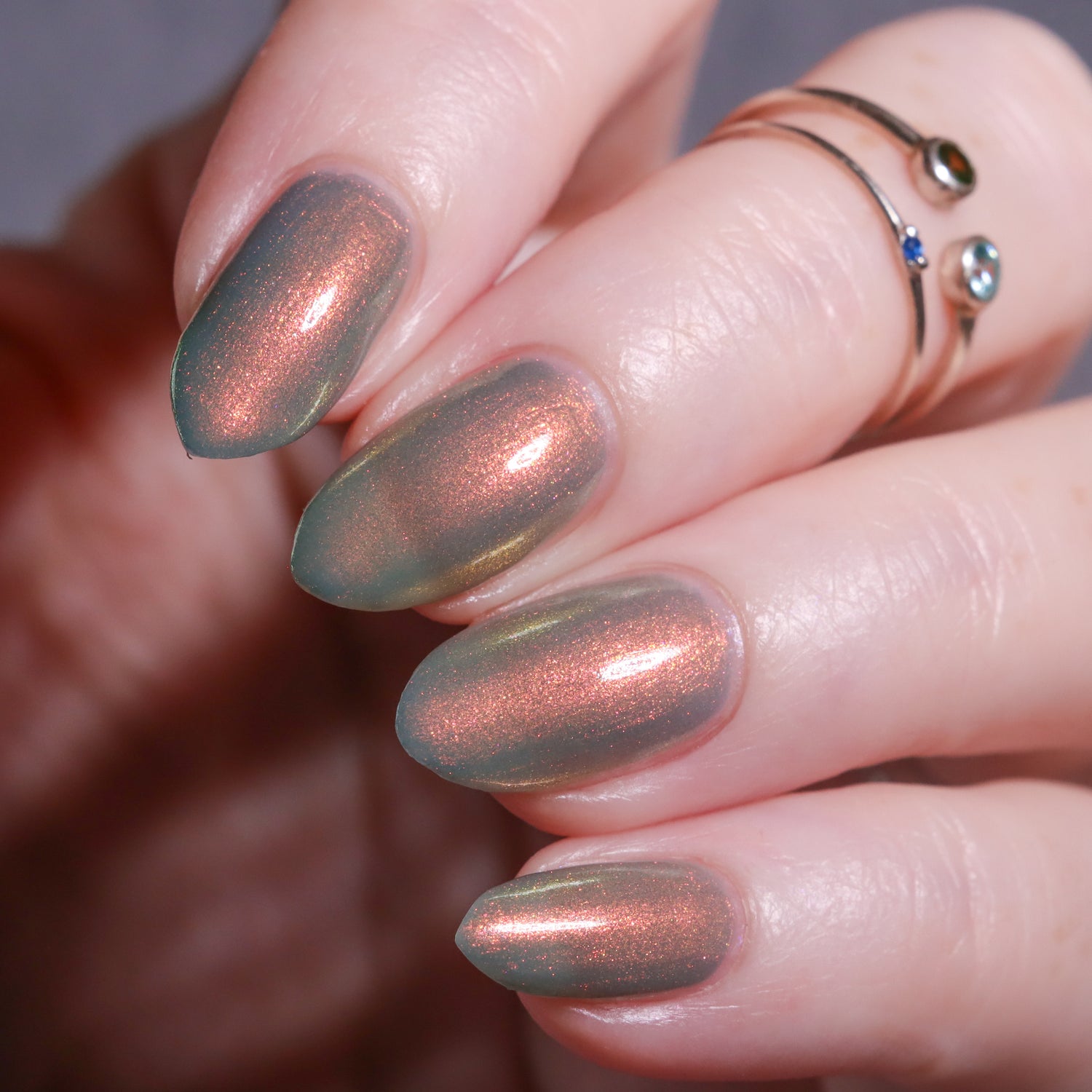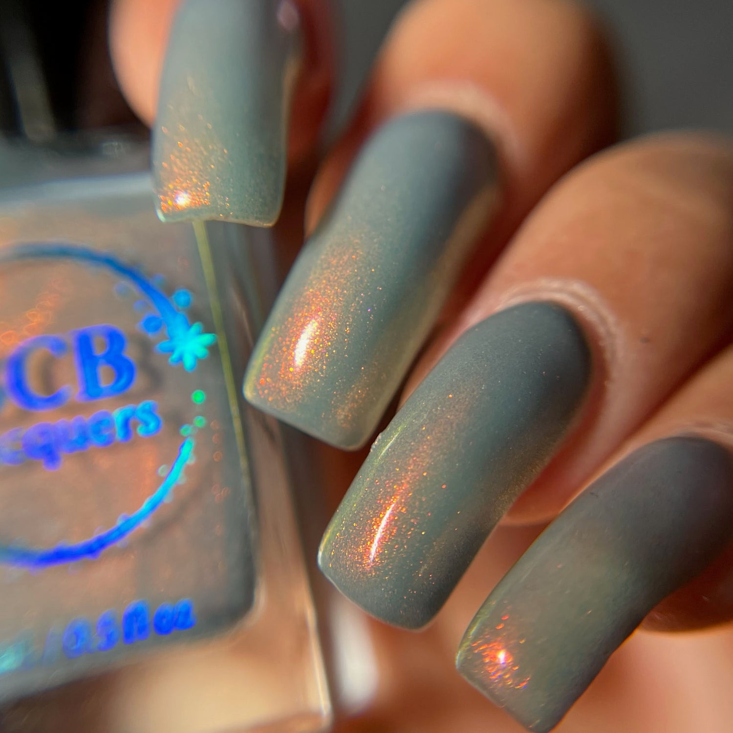Over The Sea To Skye: A light smokey blue crelly with a strong red/orange/gold/green shifting shimmer.