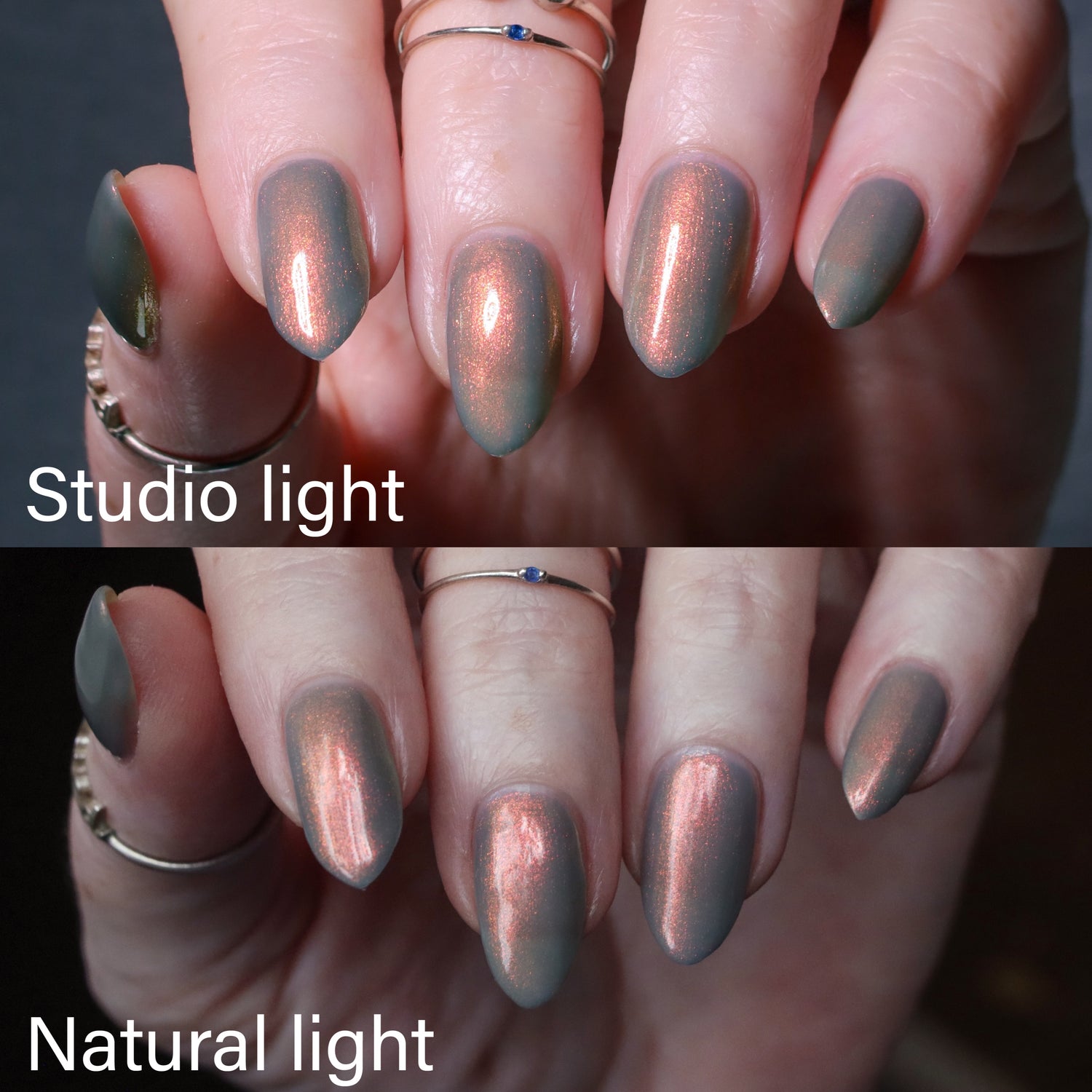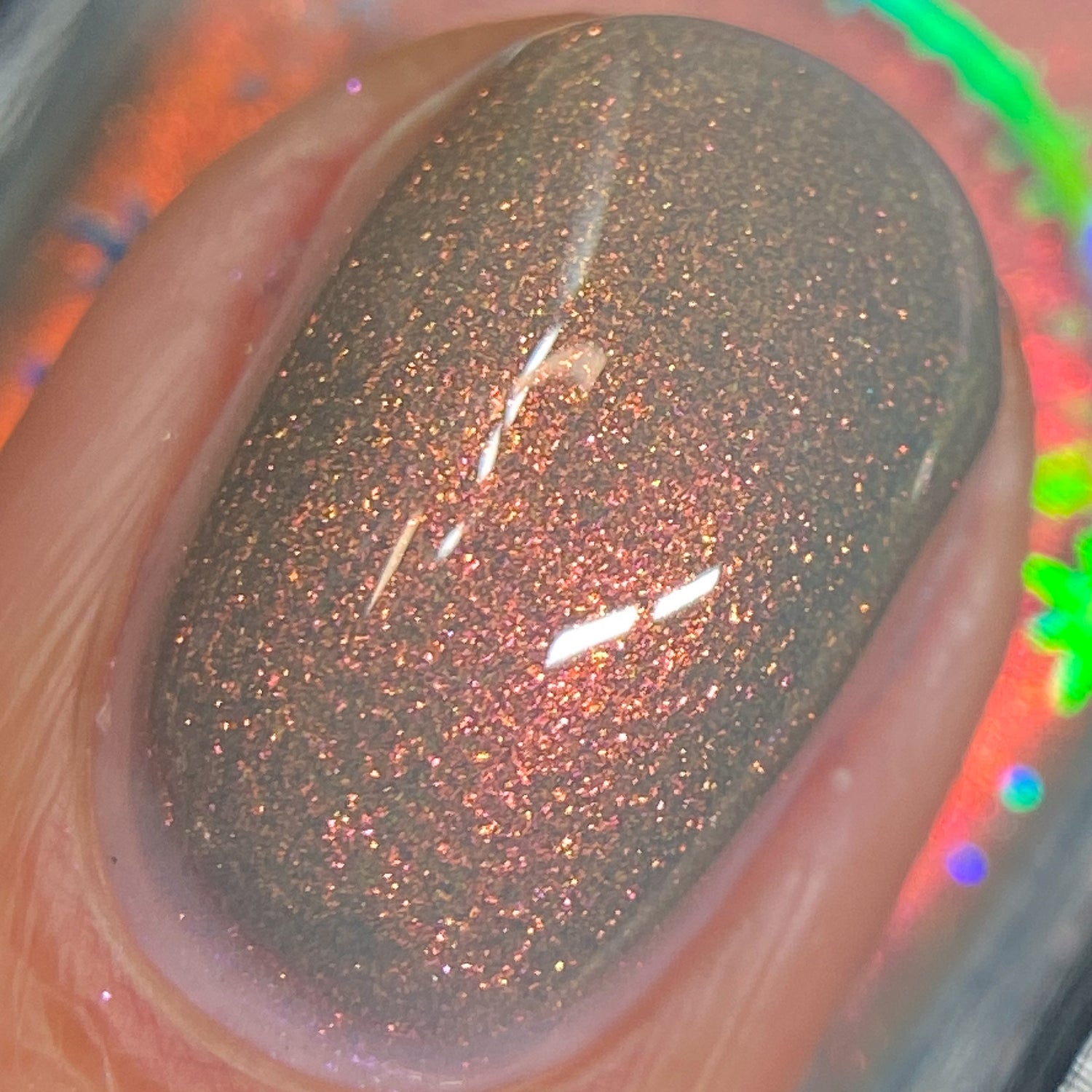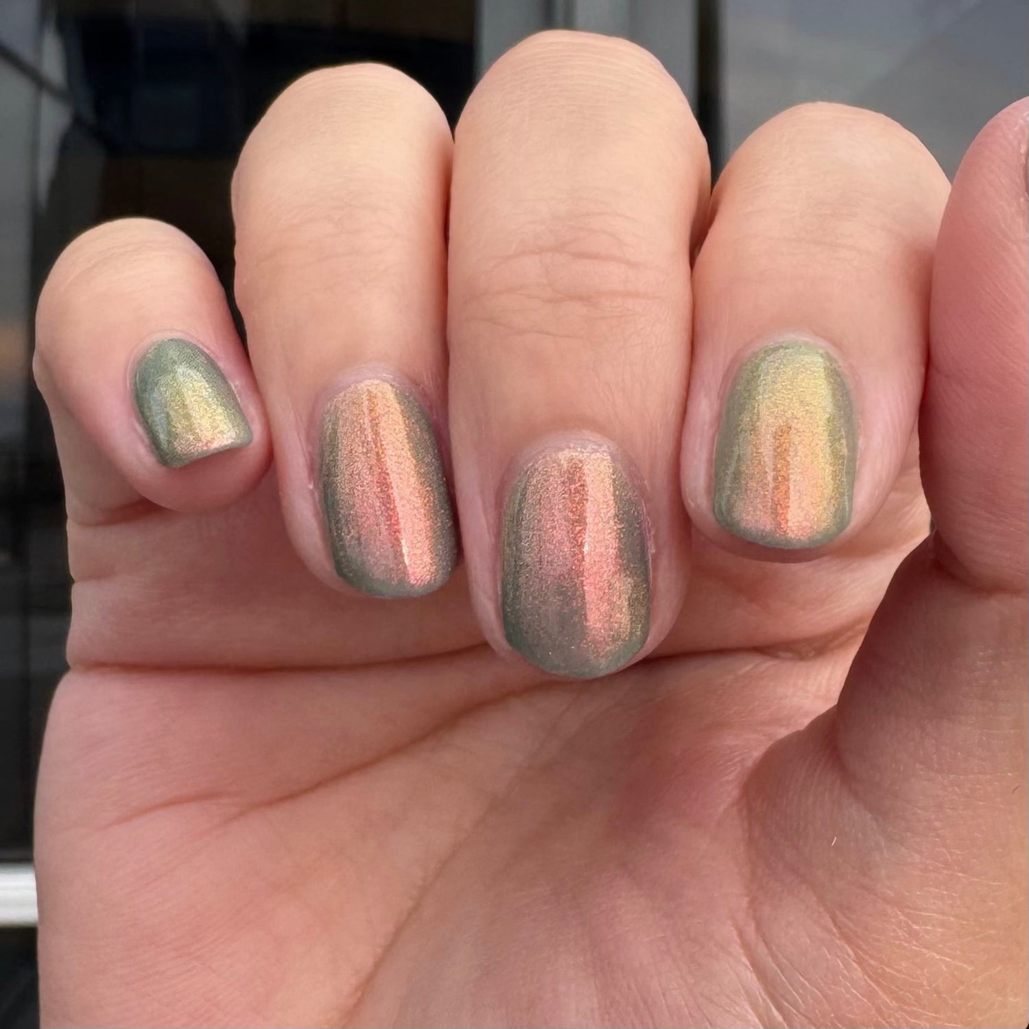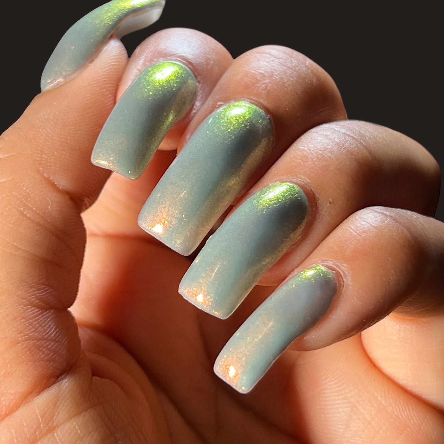 Over The Sea To Skye: A light smokey blue crelly with a strong red/orange/gold/green shifting shimmer.