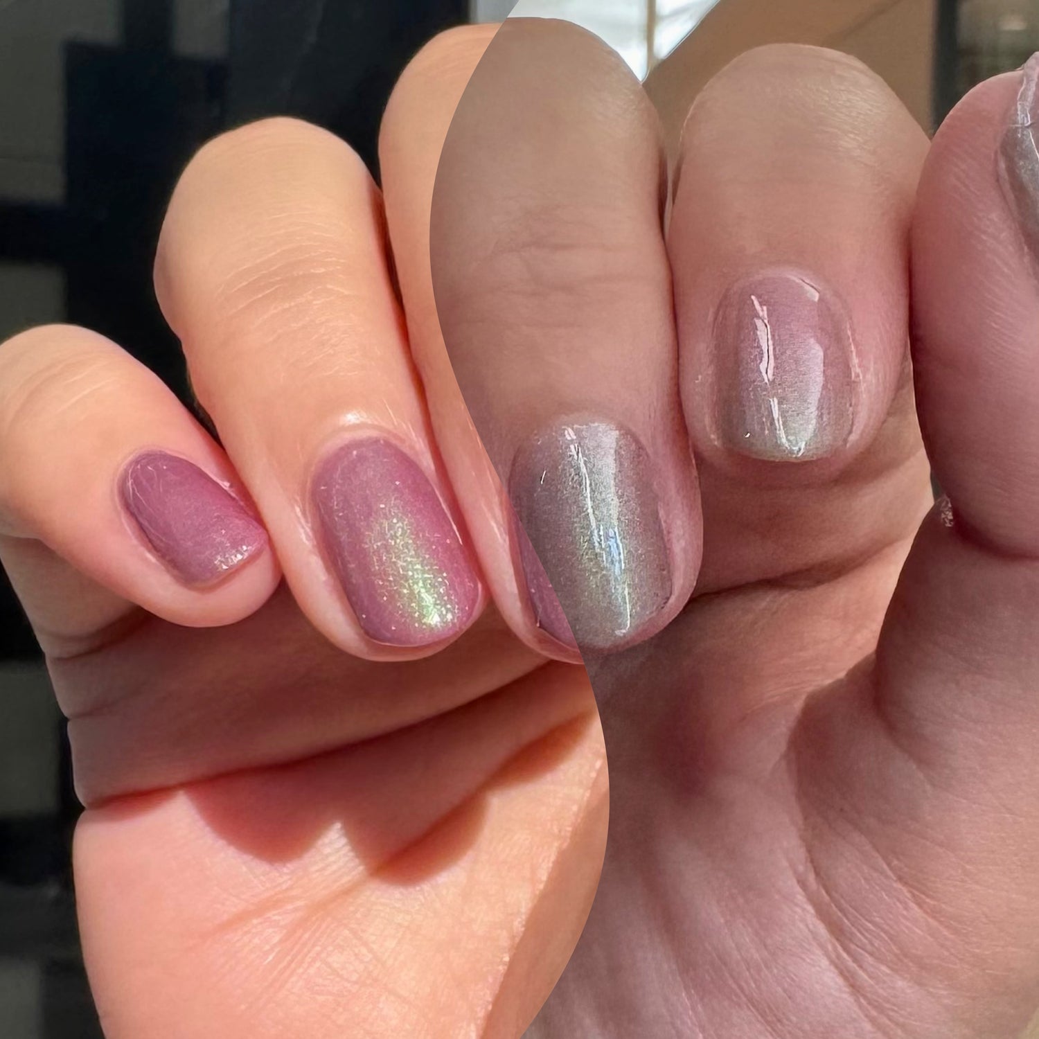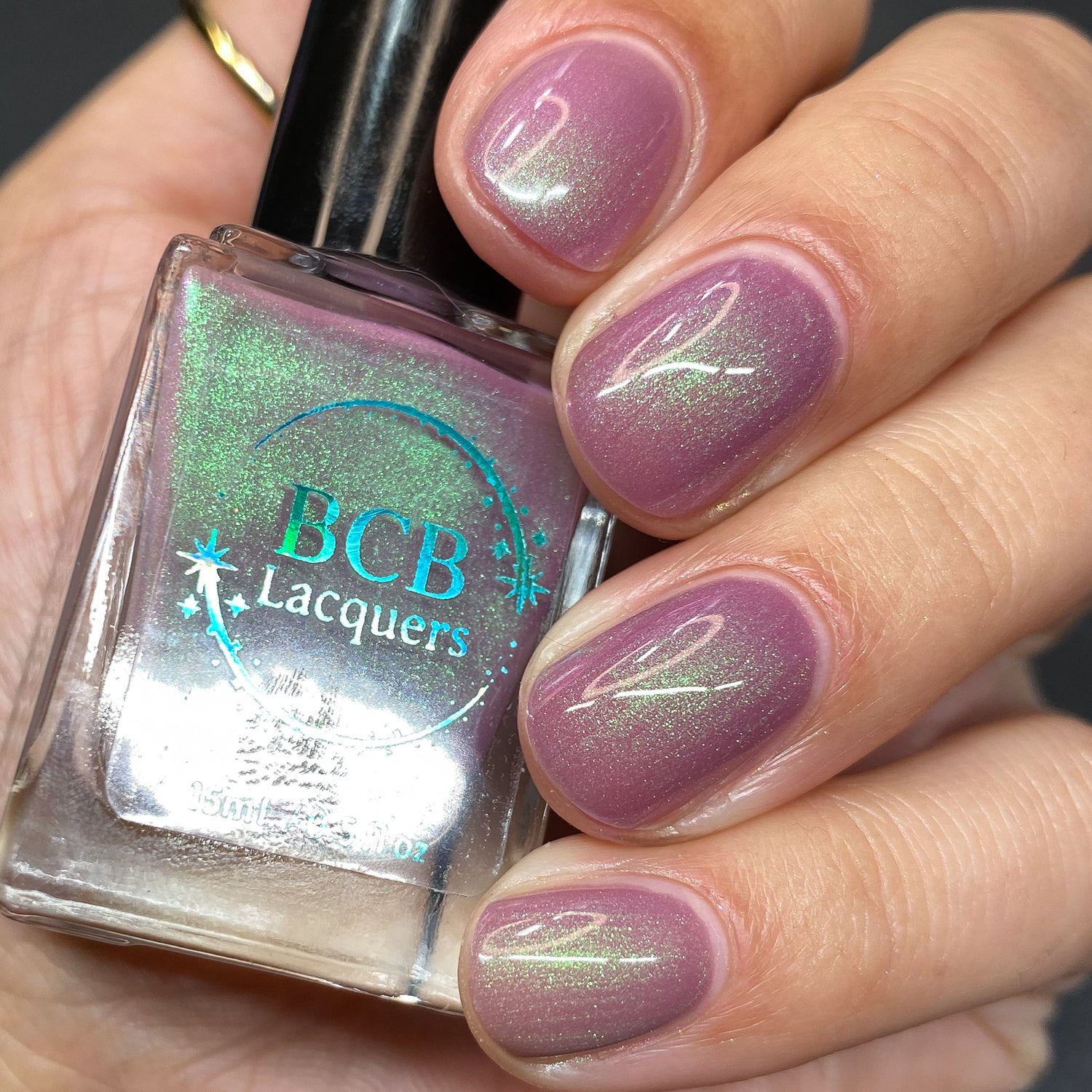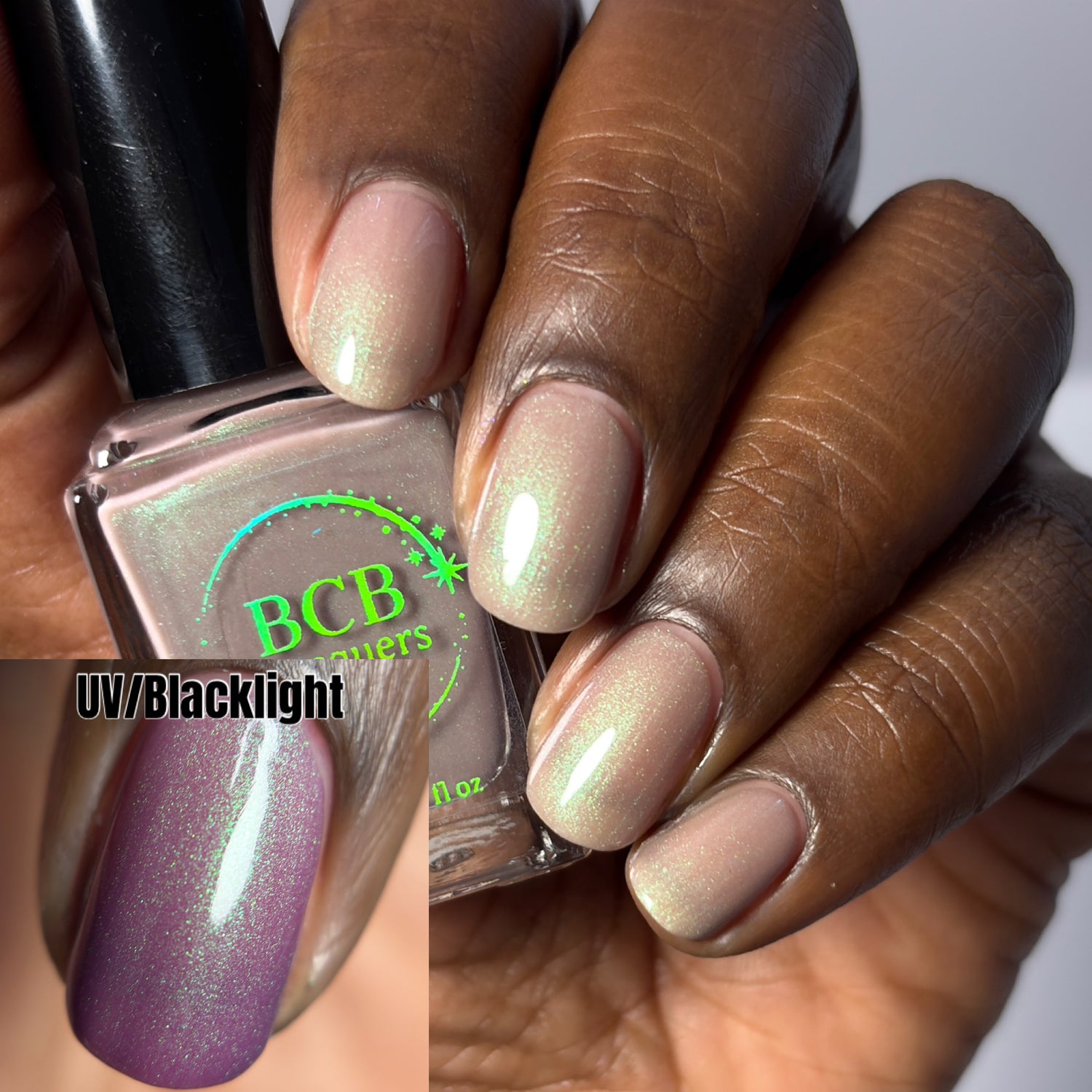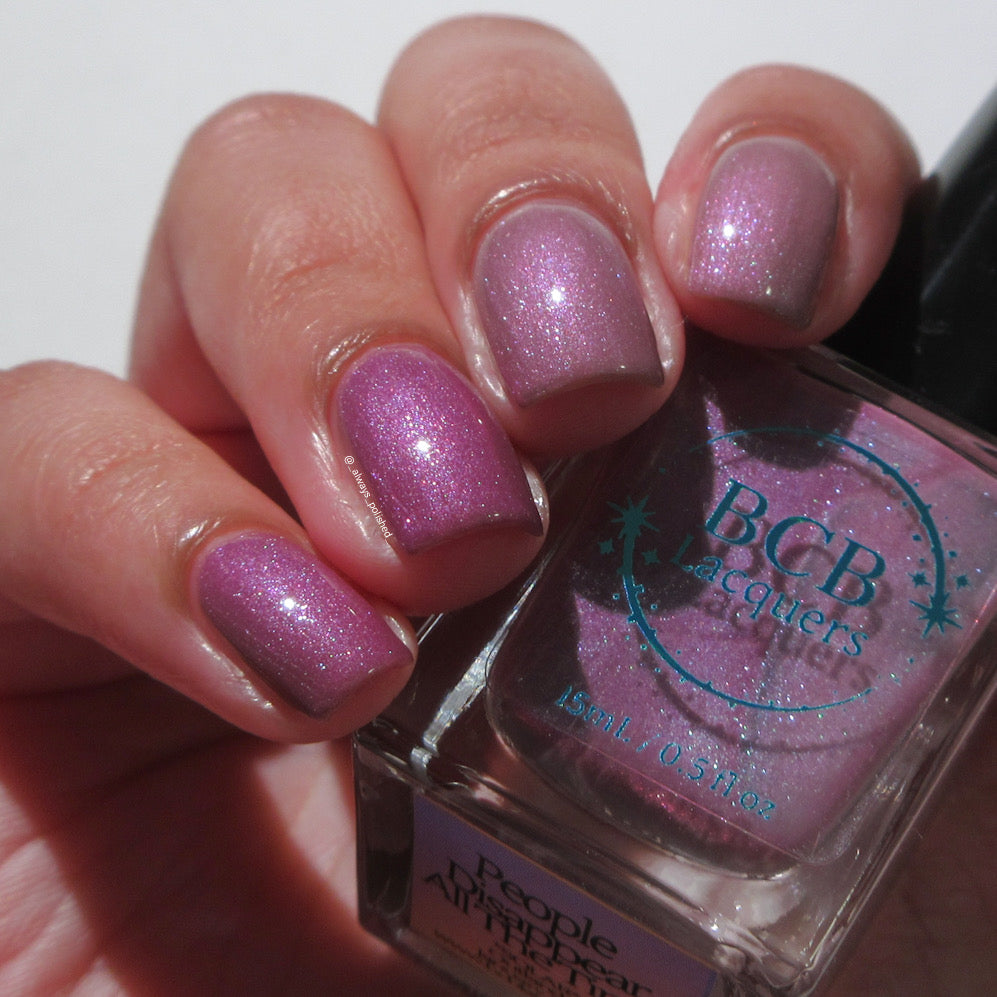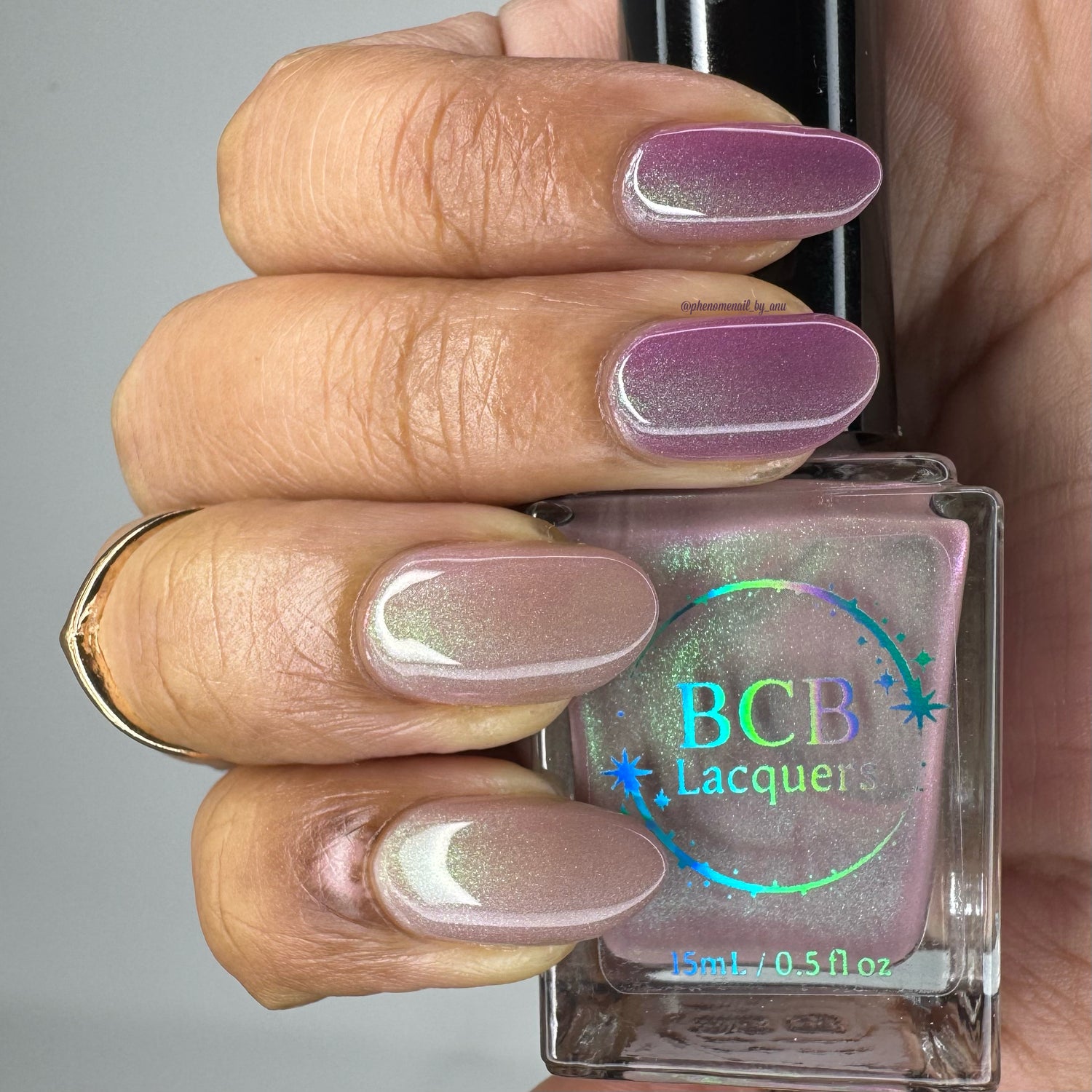 People Disappear All The Time - *SOLAR*: A pale pink taupe(indoor) to a bright mauve purple(outdoor/UV Light) with a strong green/pink shifting shimmer.