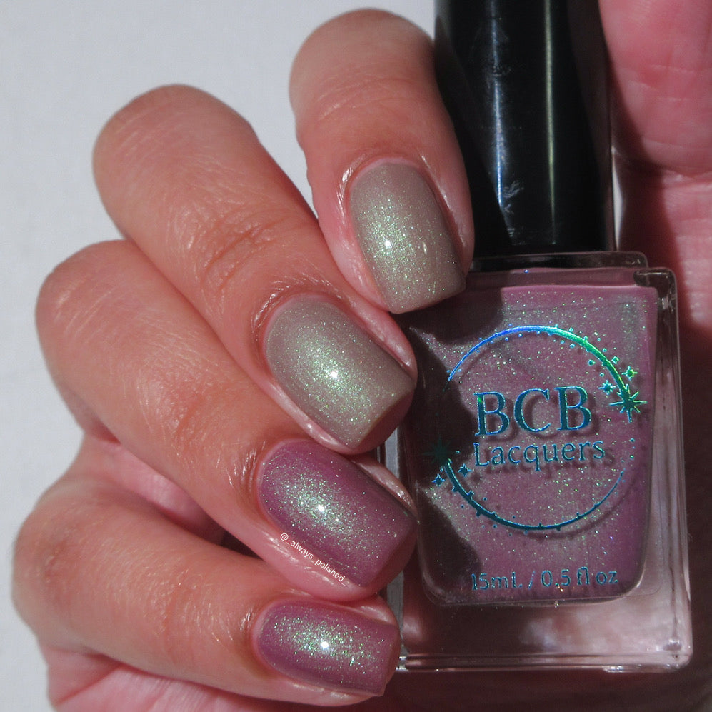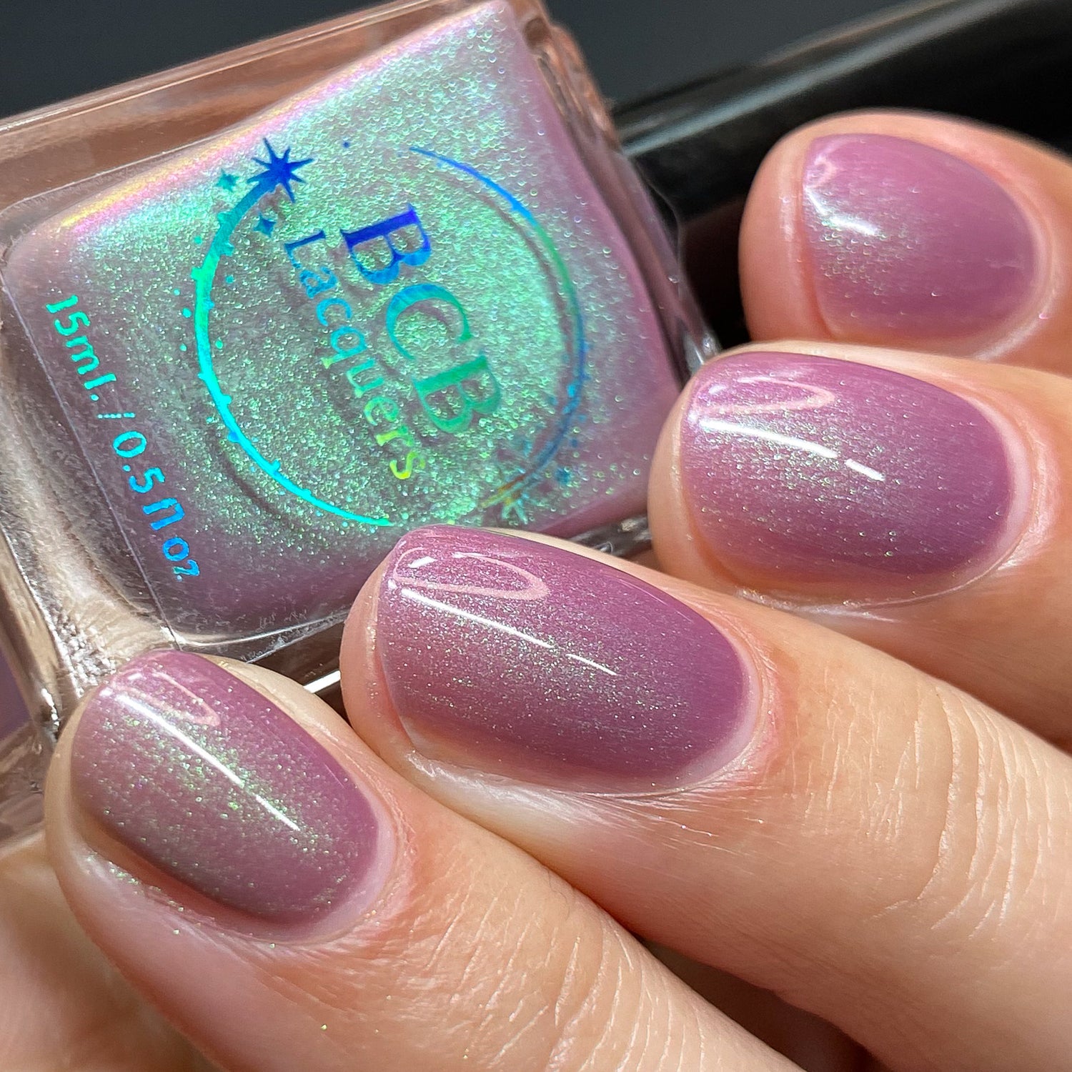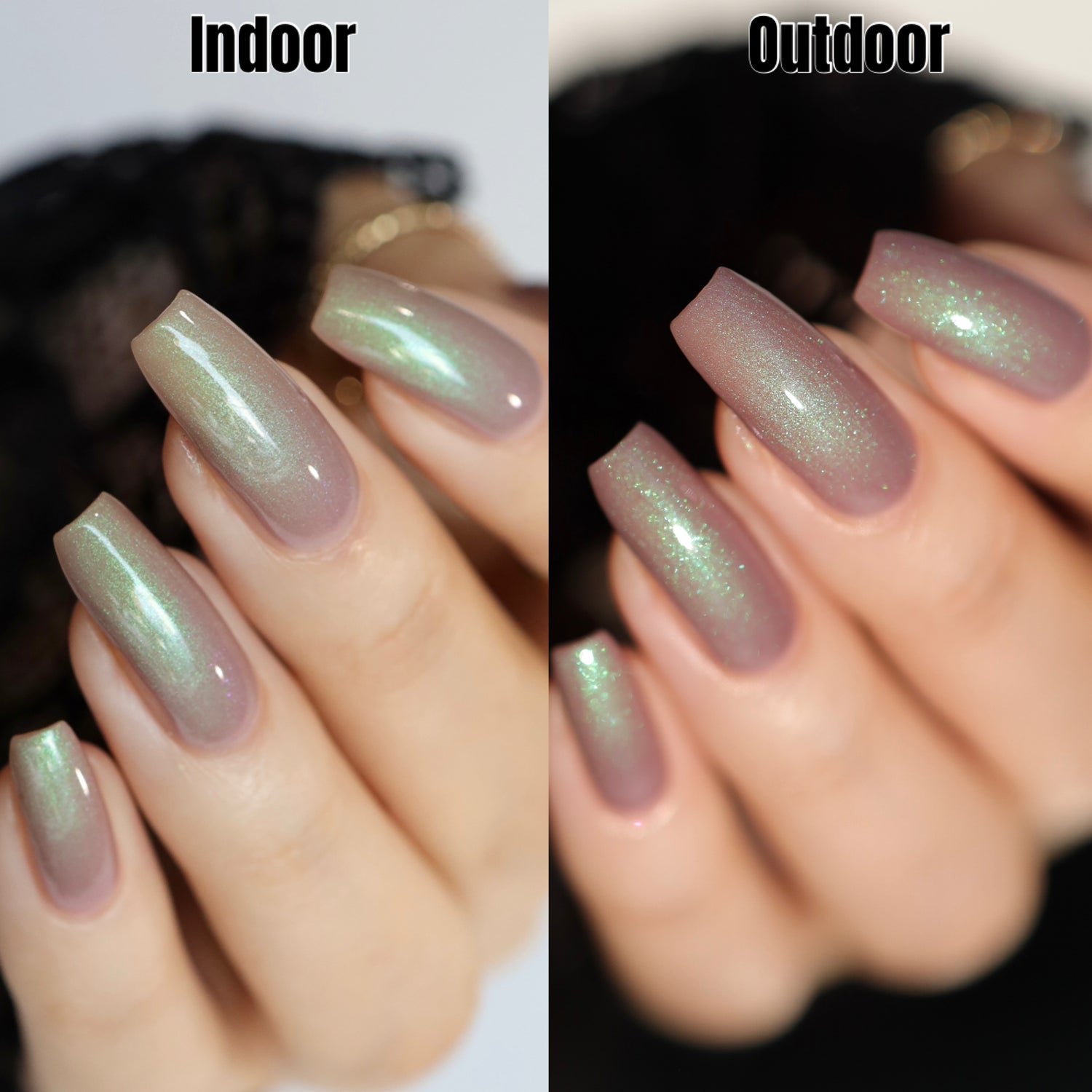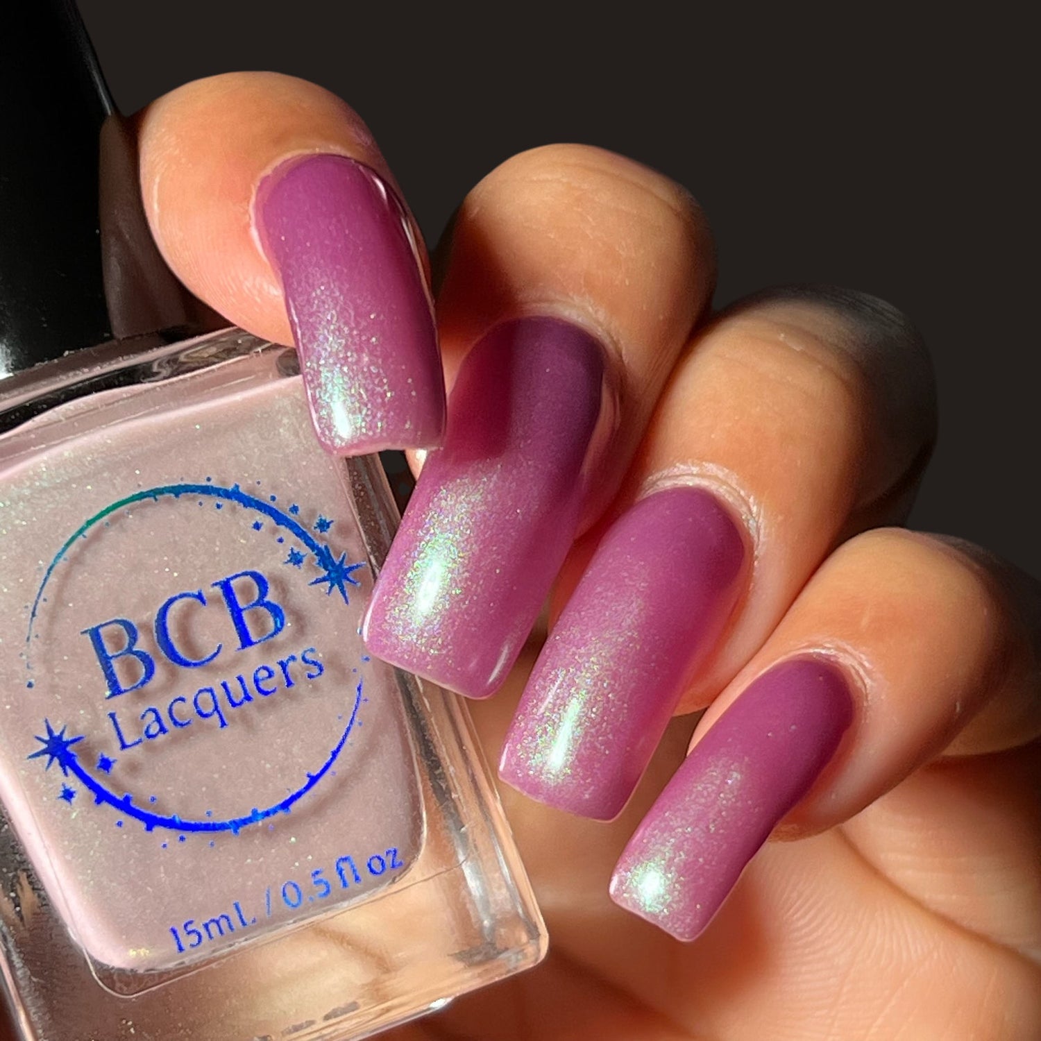 People Disappear All The Time - *SOLAR*: A pale pink taupe(indoor) to a bright mauve purple(outdoor/UV Light) with a strong green/pink shifting shimmer.