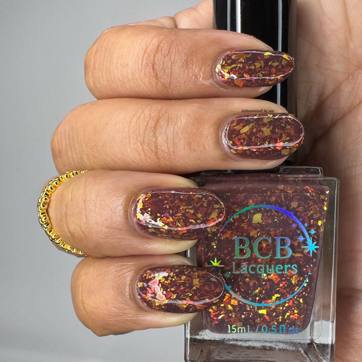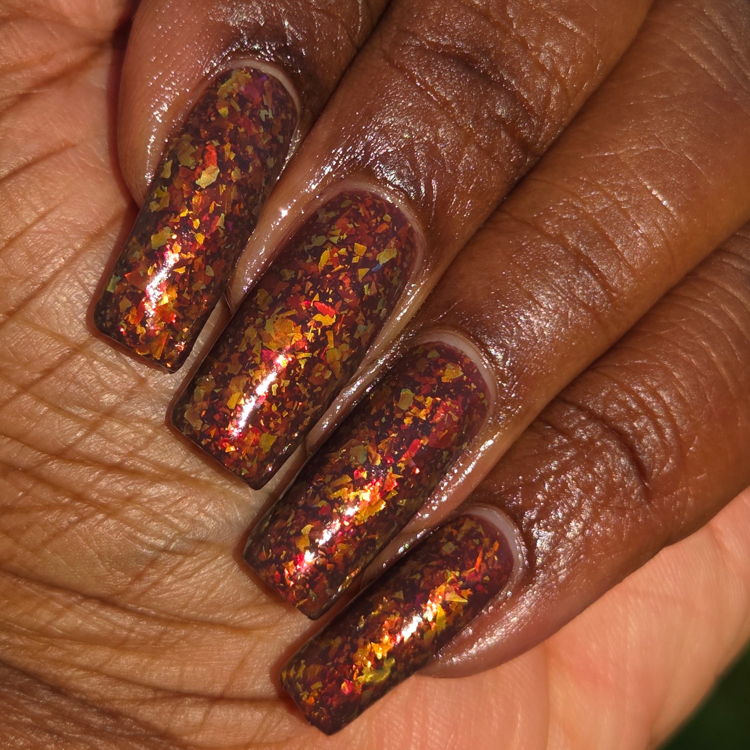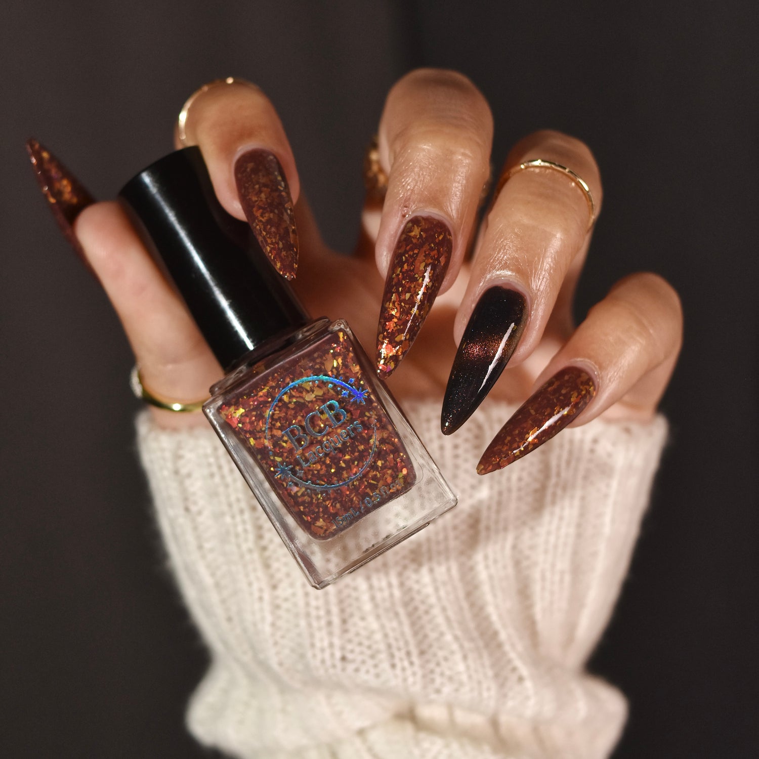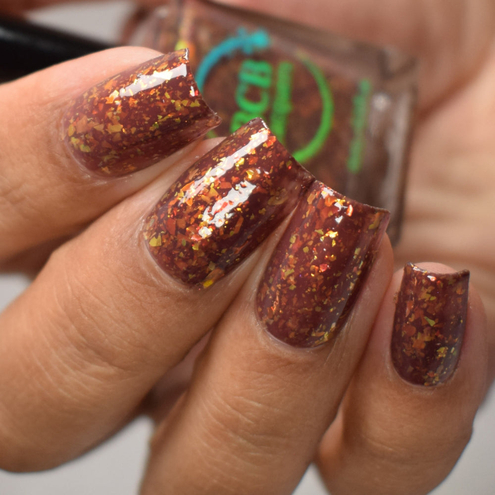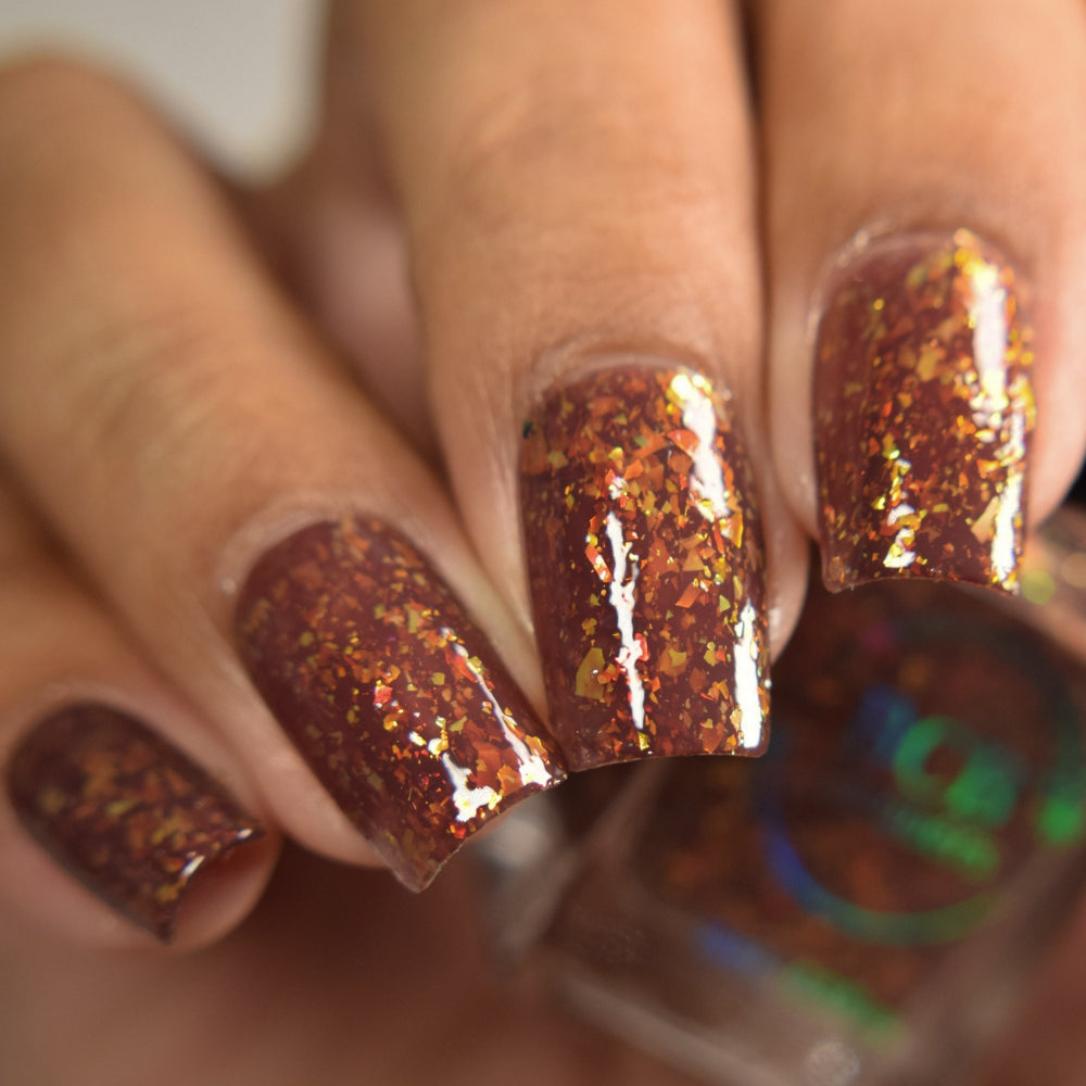 Po-Ta-Toes! Boil ‘em, Mash ‘em, Stick ‘em In A Stew!: A brown crelly with gold glass flakes and red/orange/gold glass flakes.