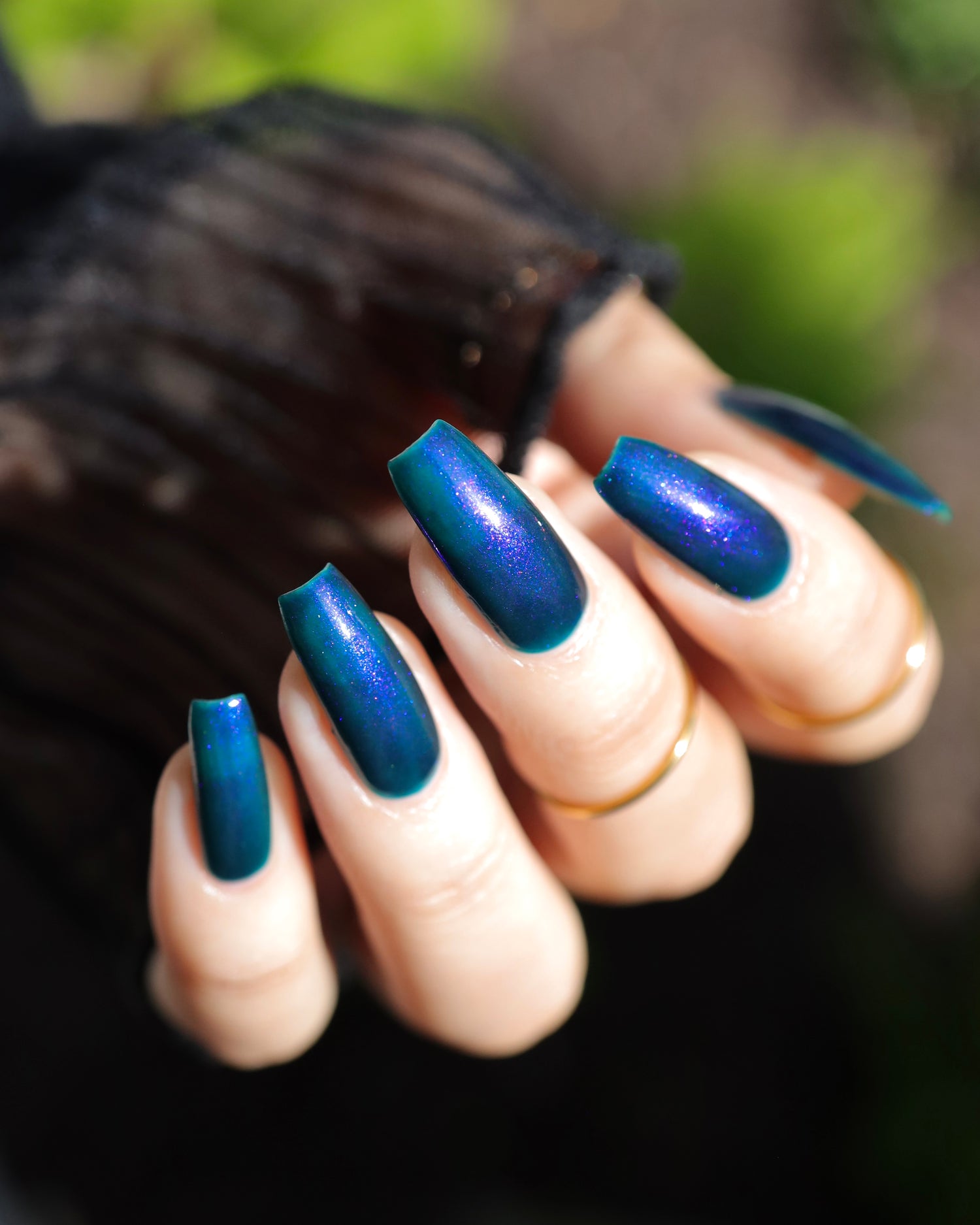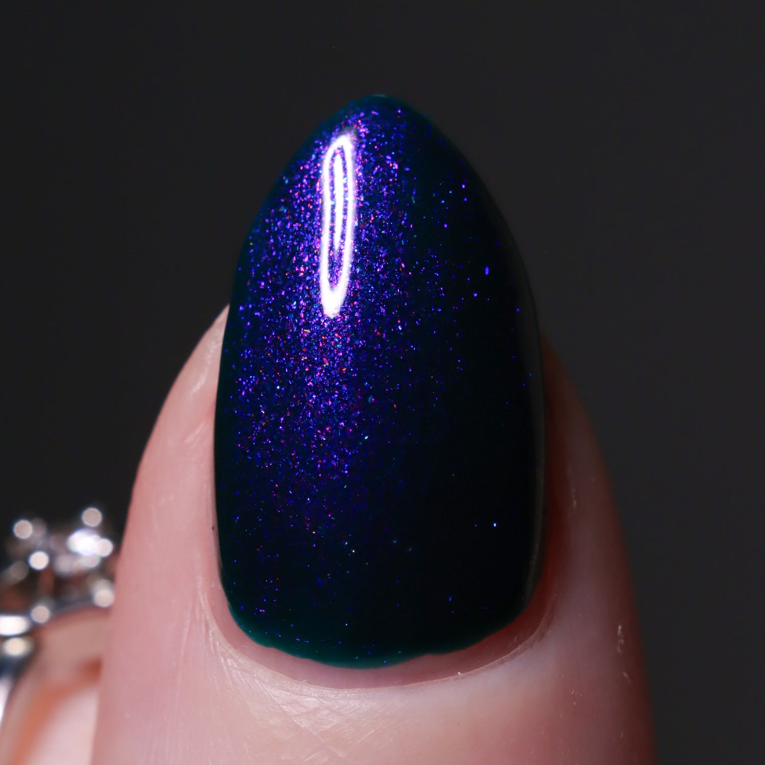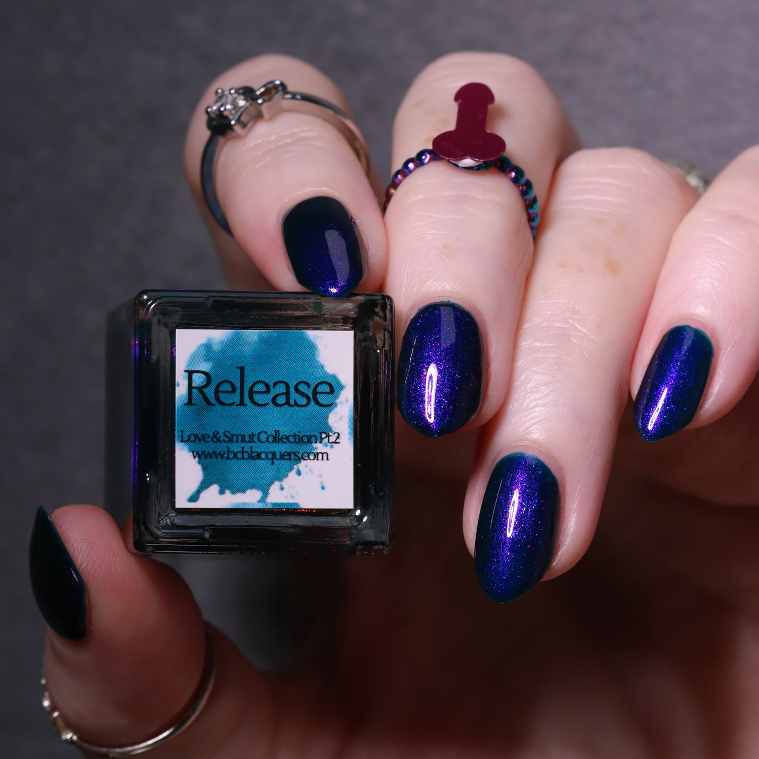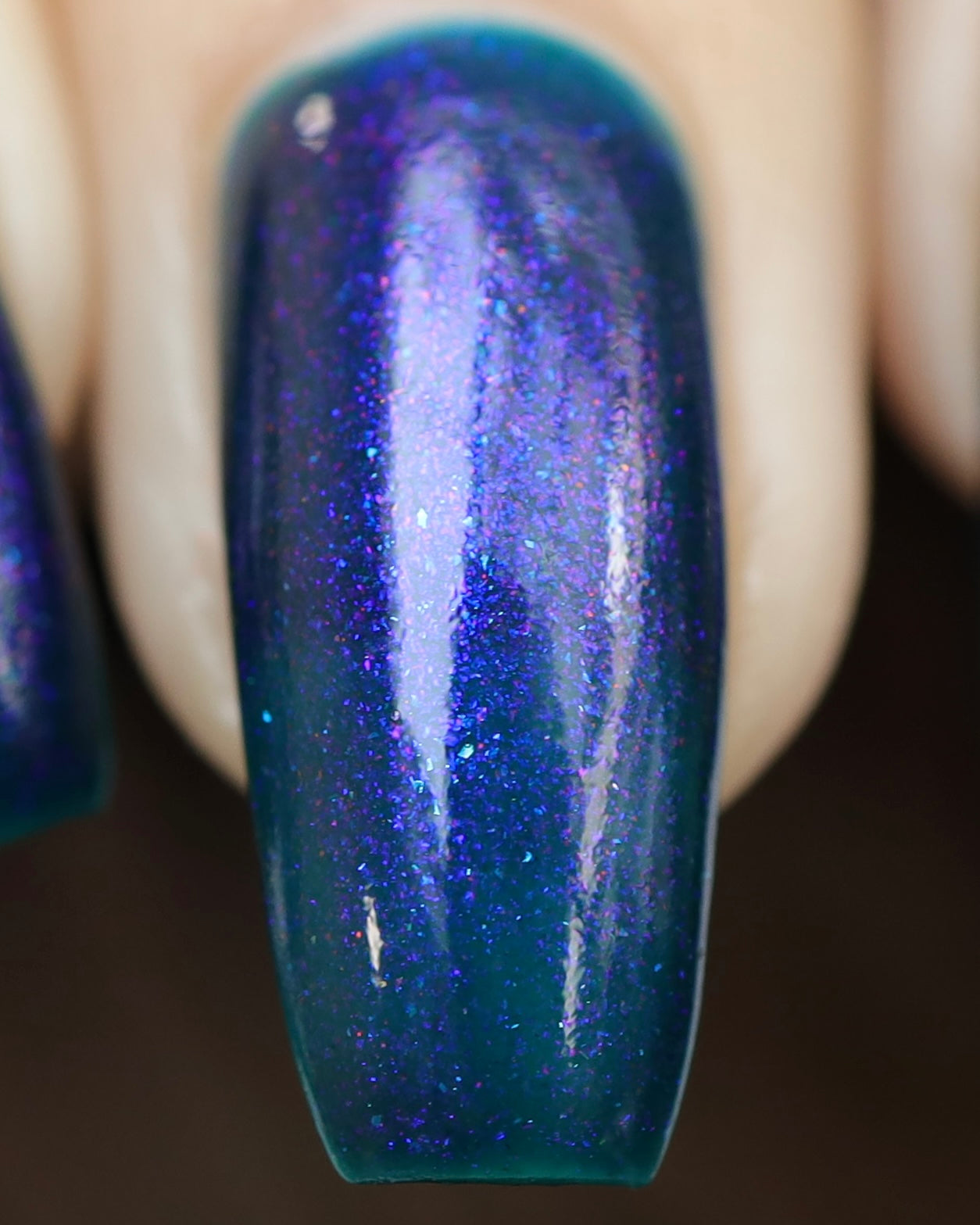 Release: A deep teal jelly with a strong purple/blue shifting shimmer.