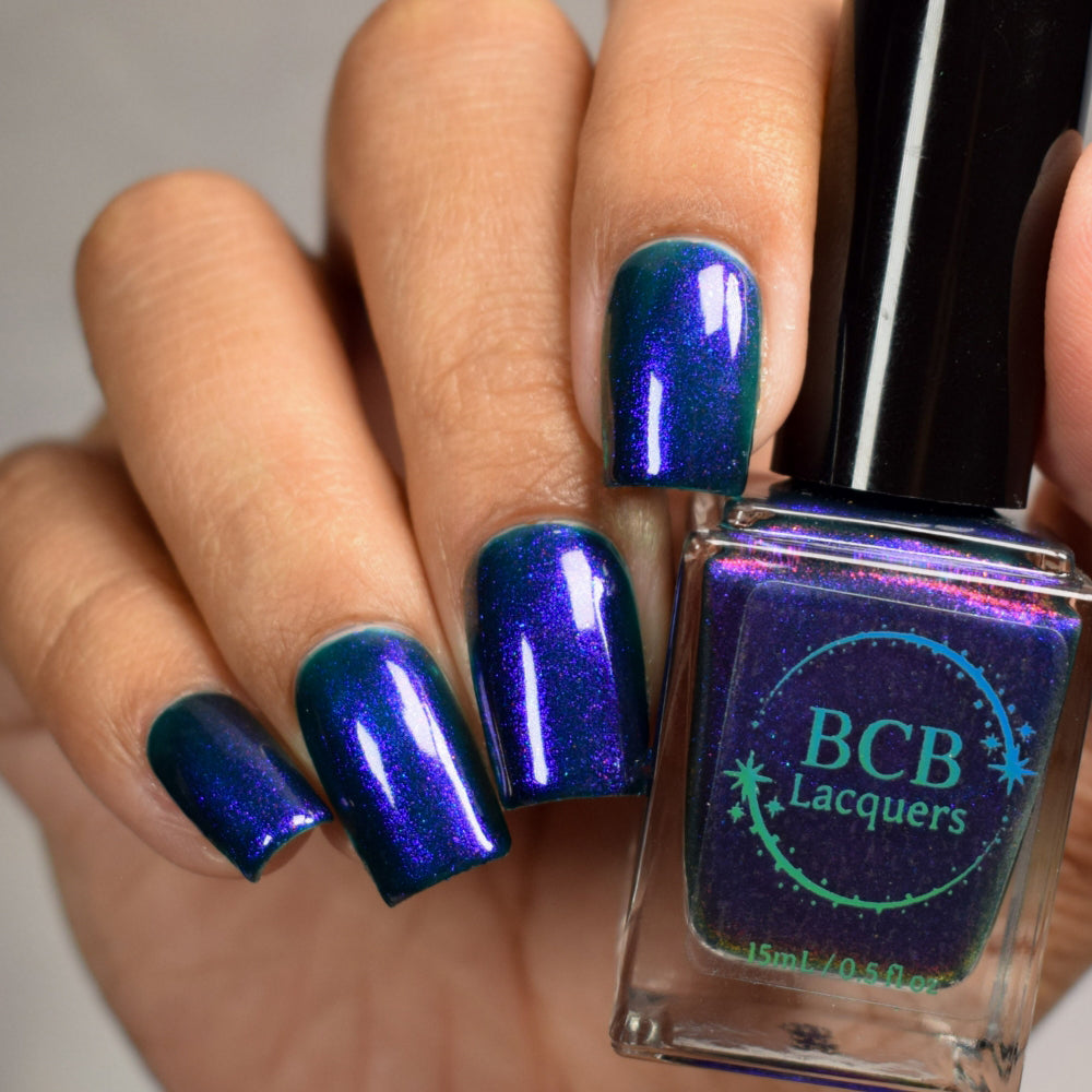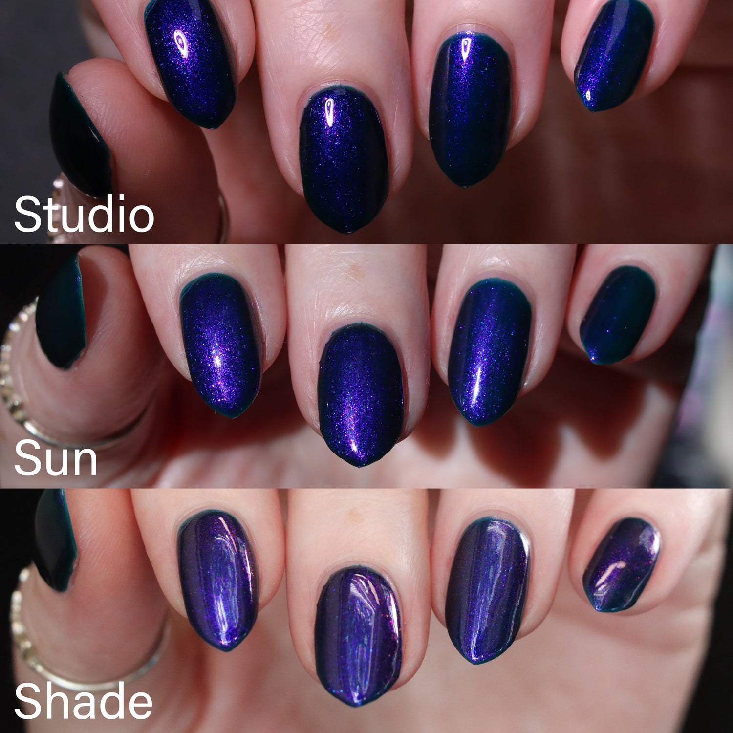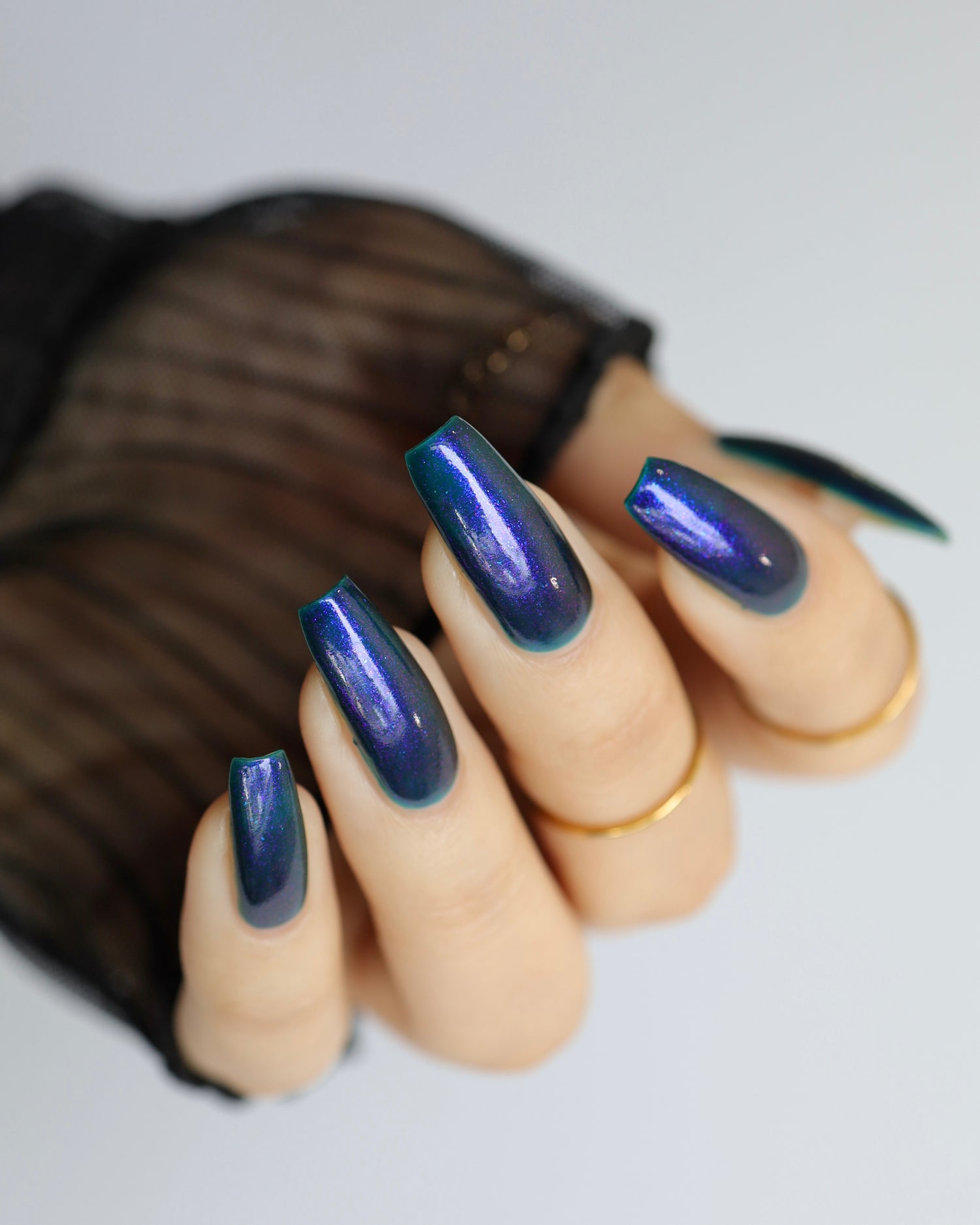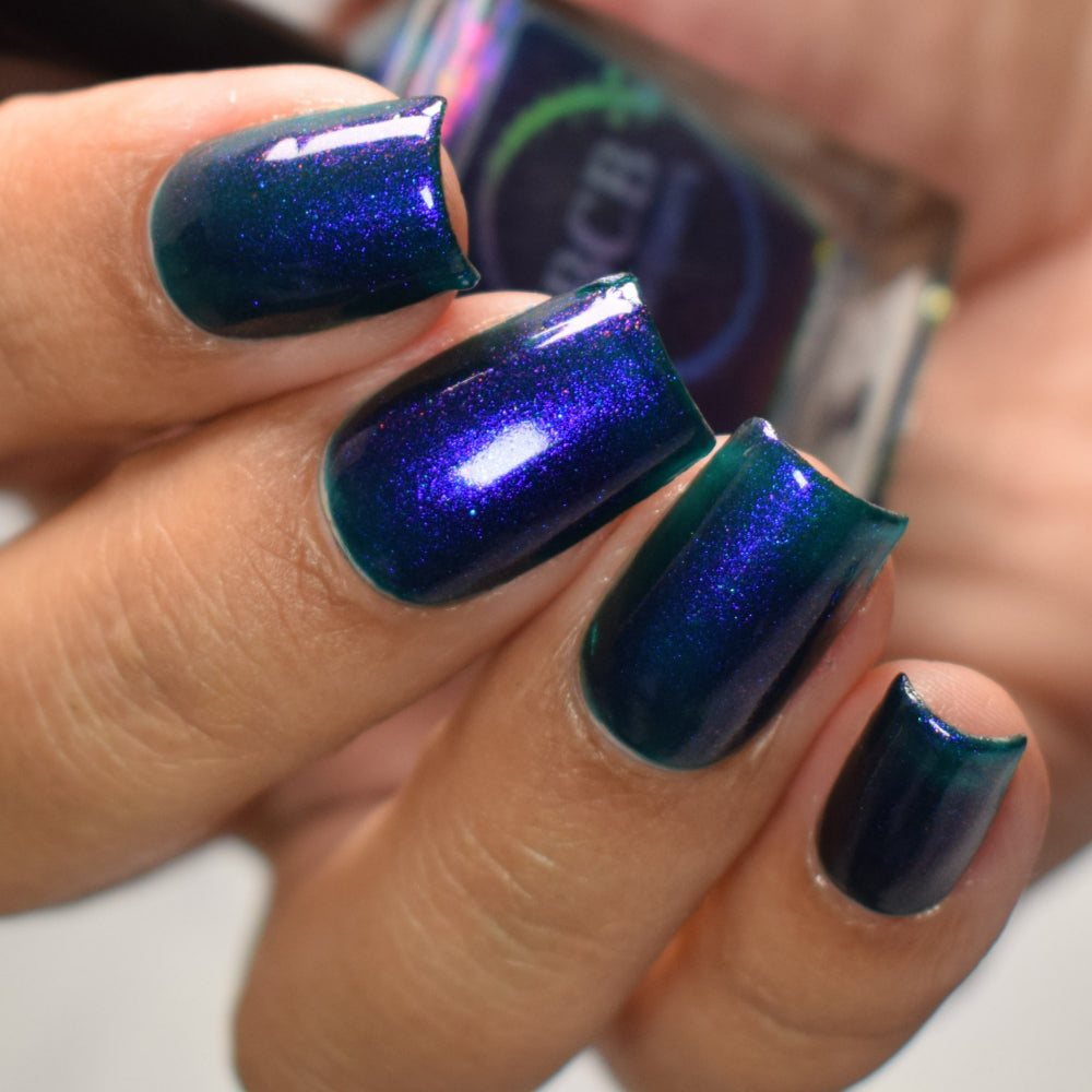 Release: A deep teal jelly with a strong purple/blue shifting shimmer.