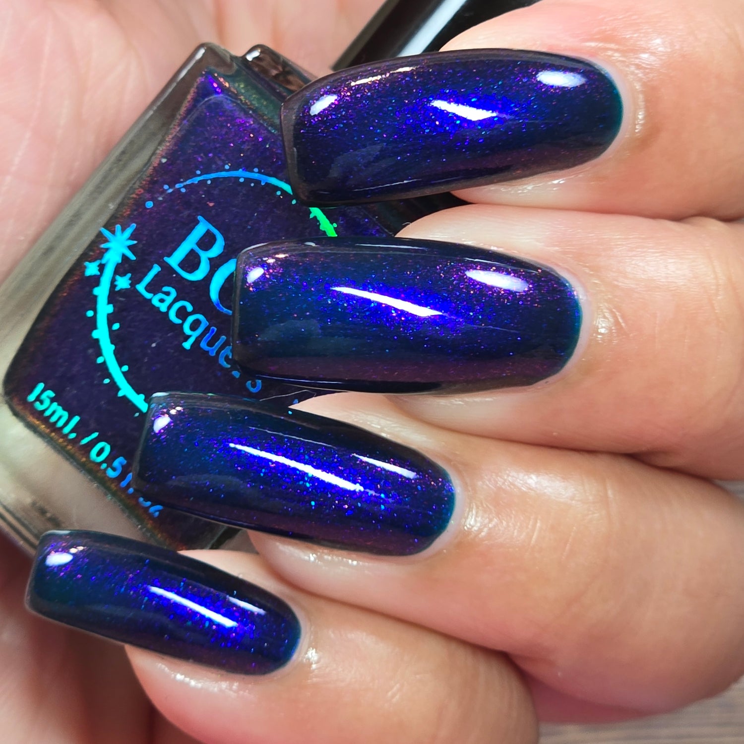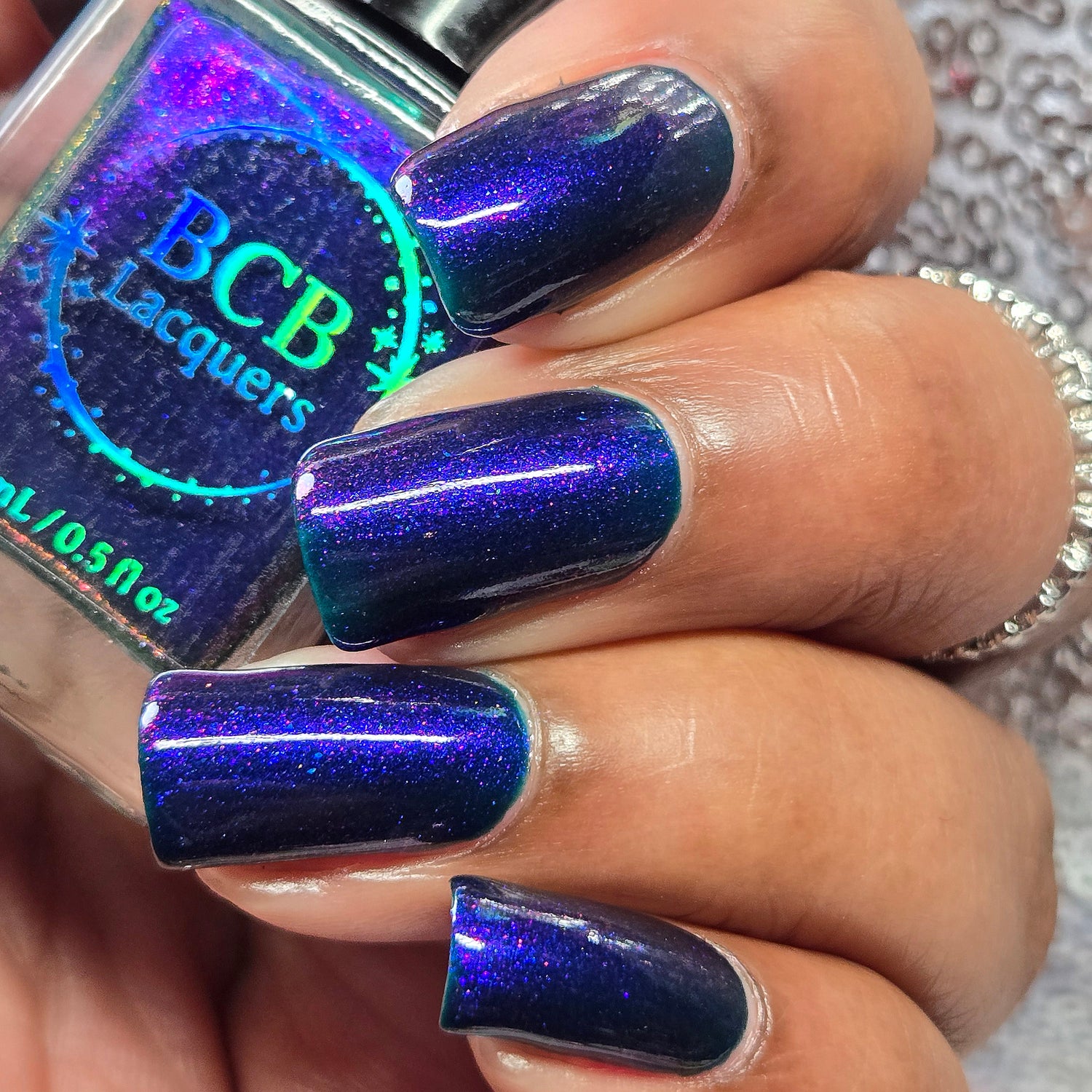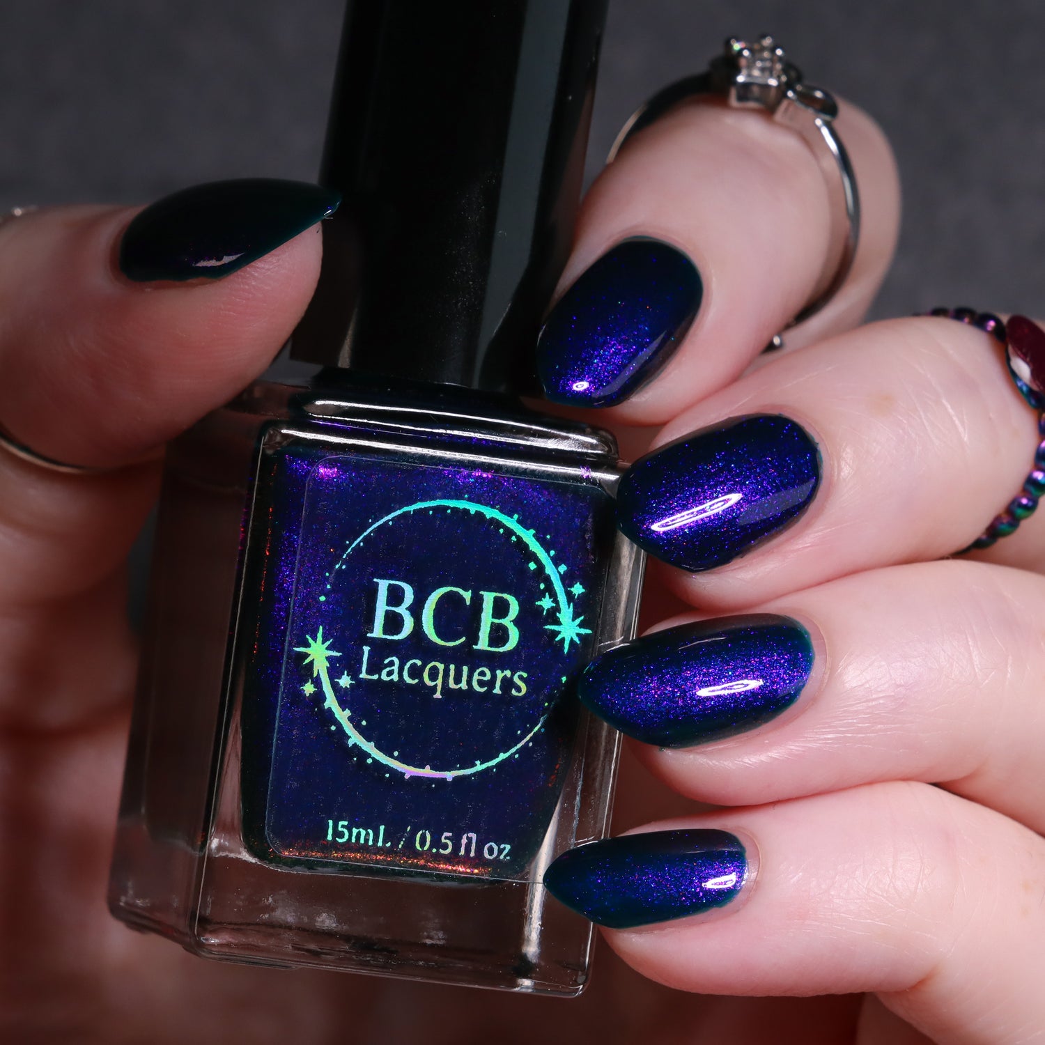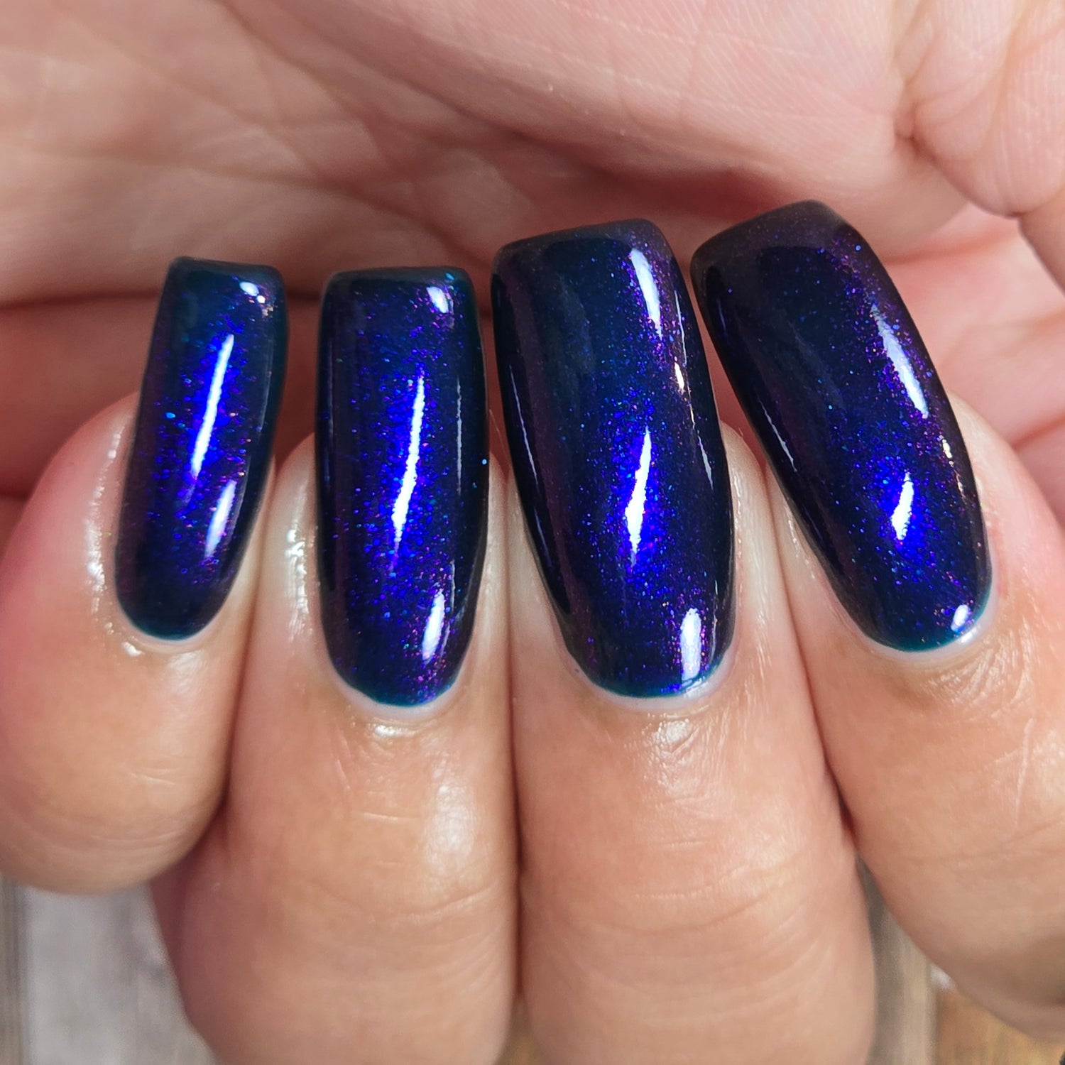 Release: A deep teal jelly with a strong purple/blue shifting shimmer.