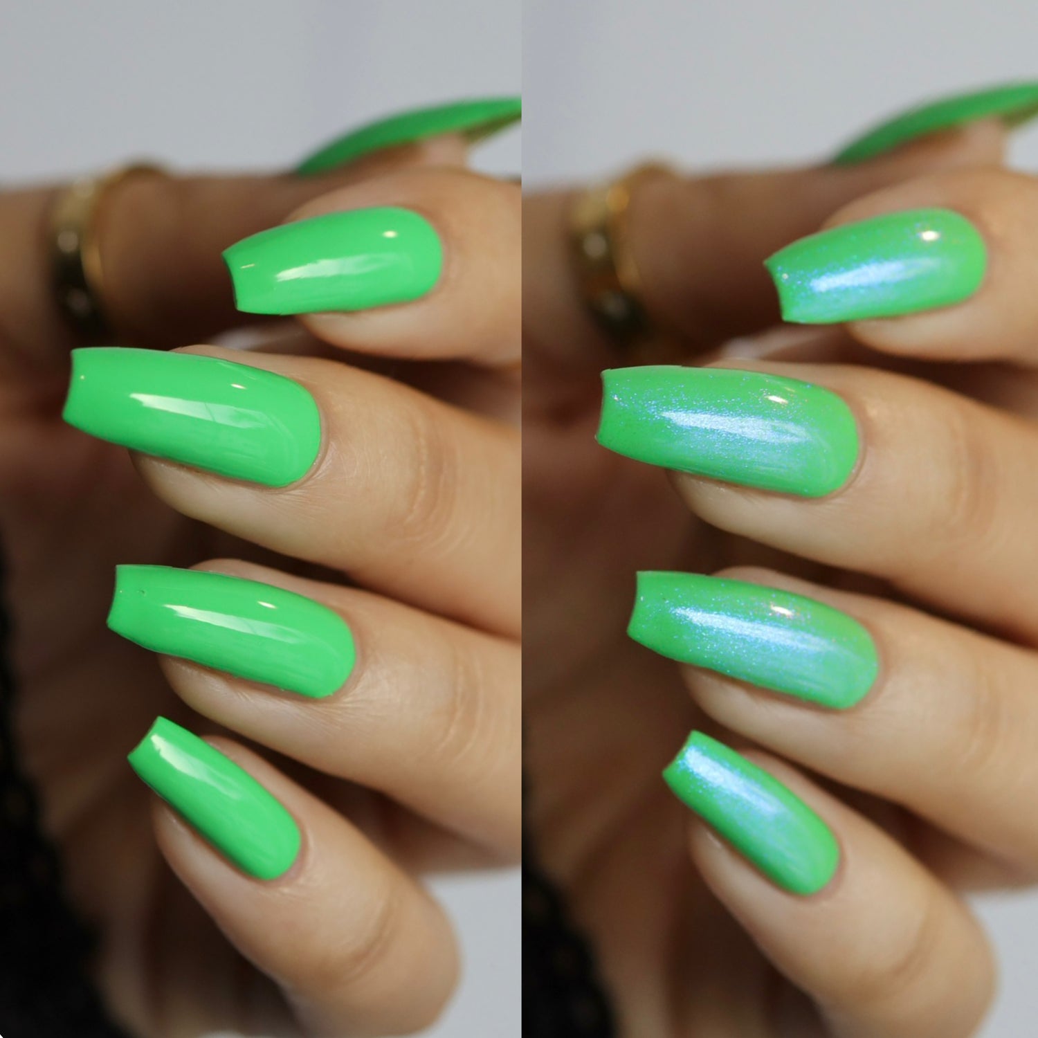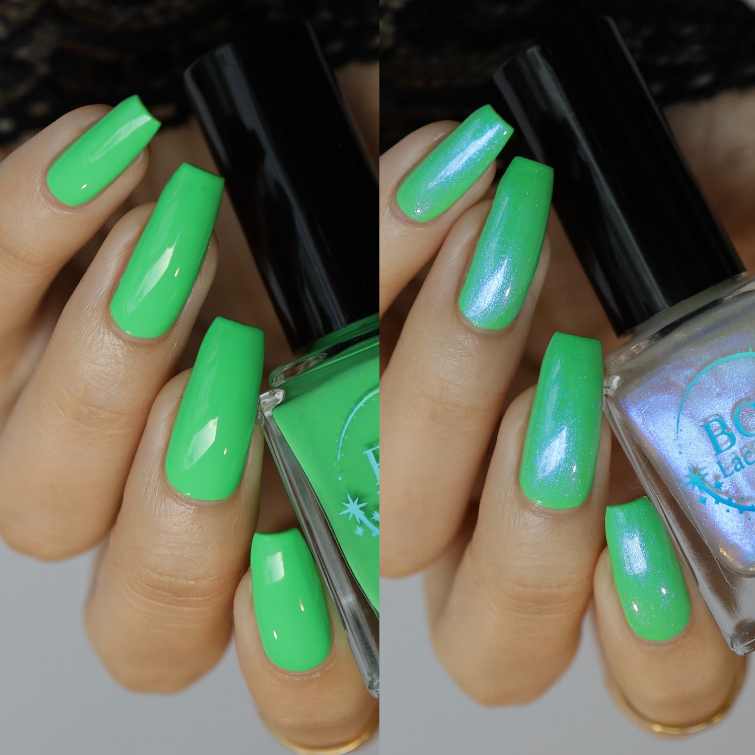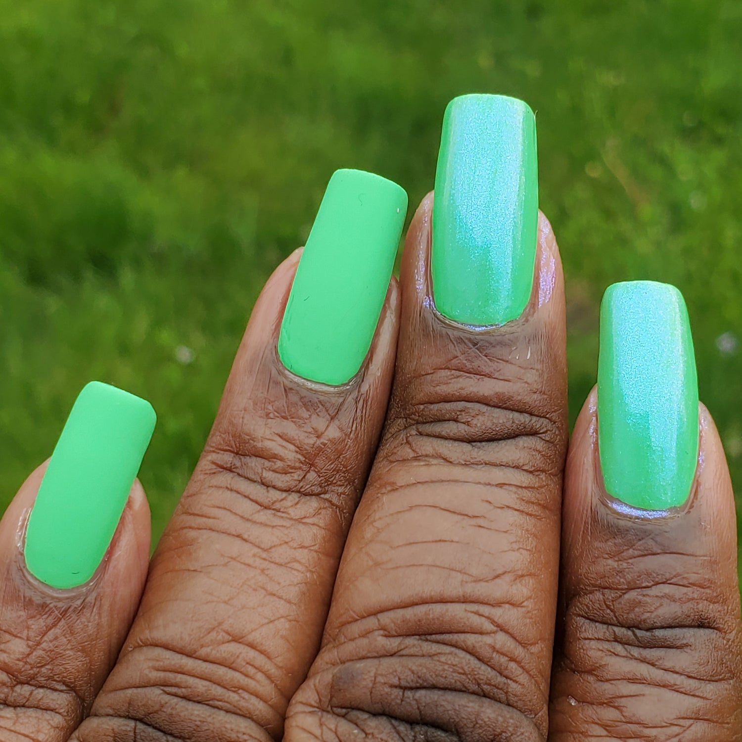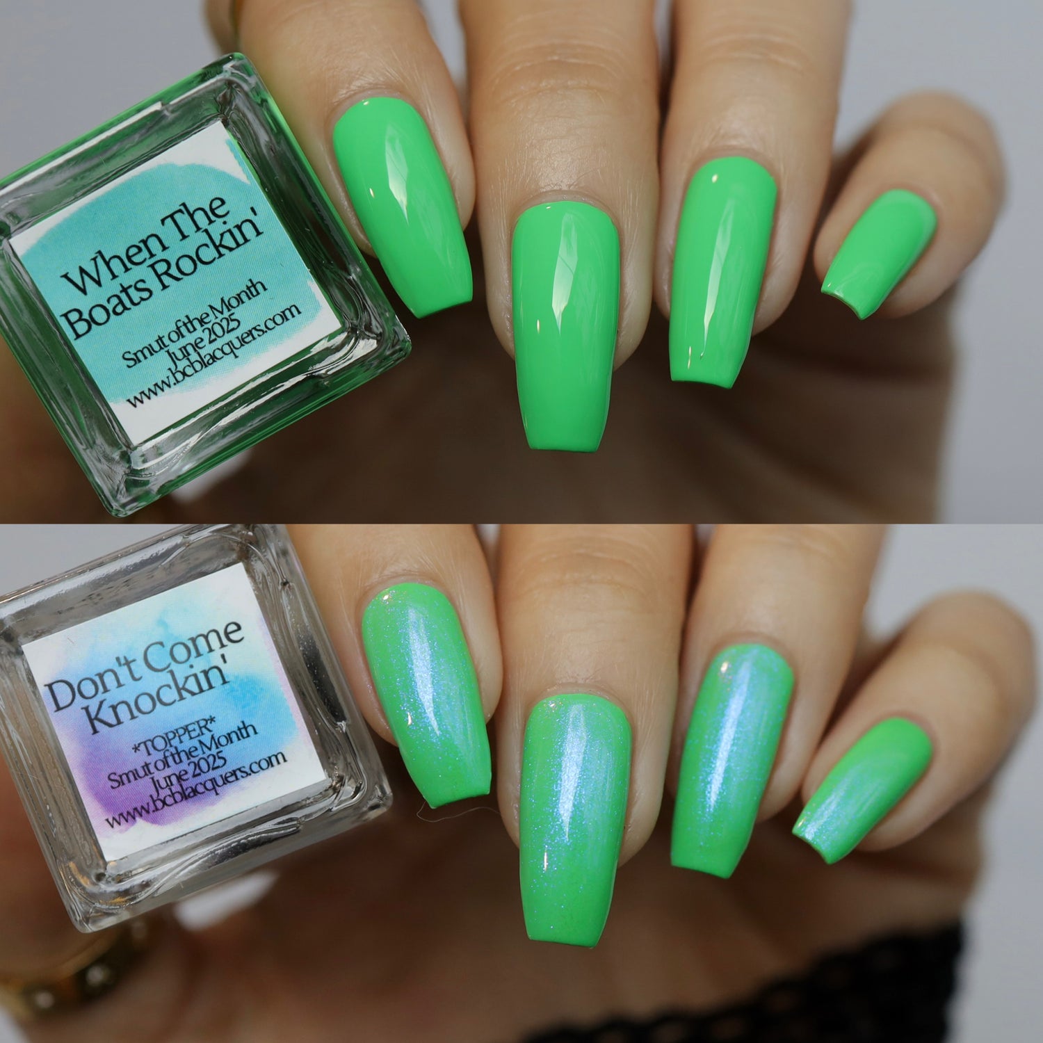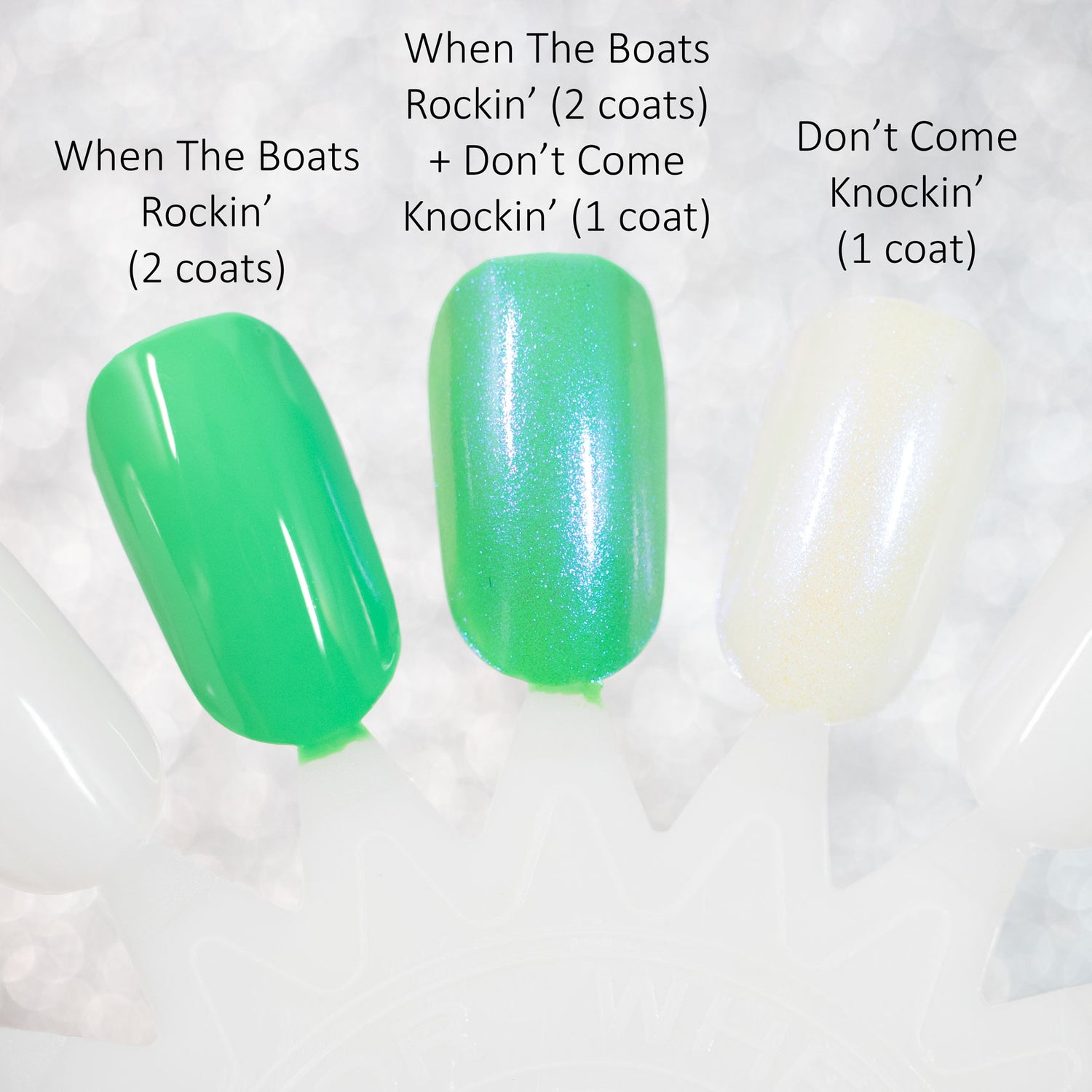 • When The Boats Rockin’: A bright green leaning sea foam neon cream.