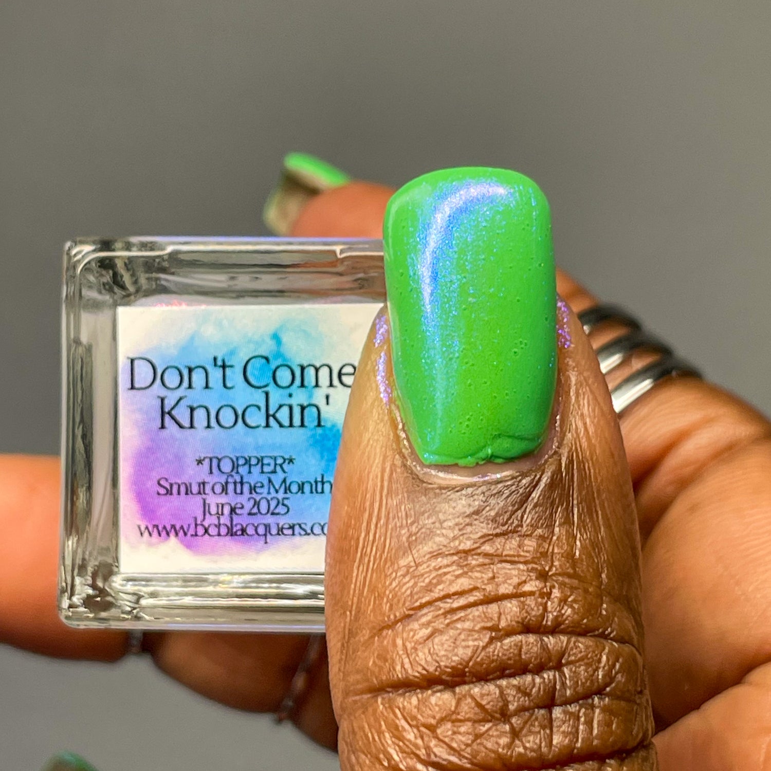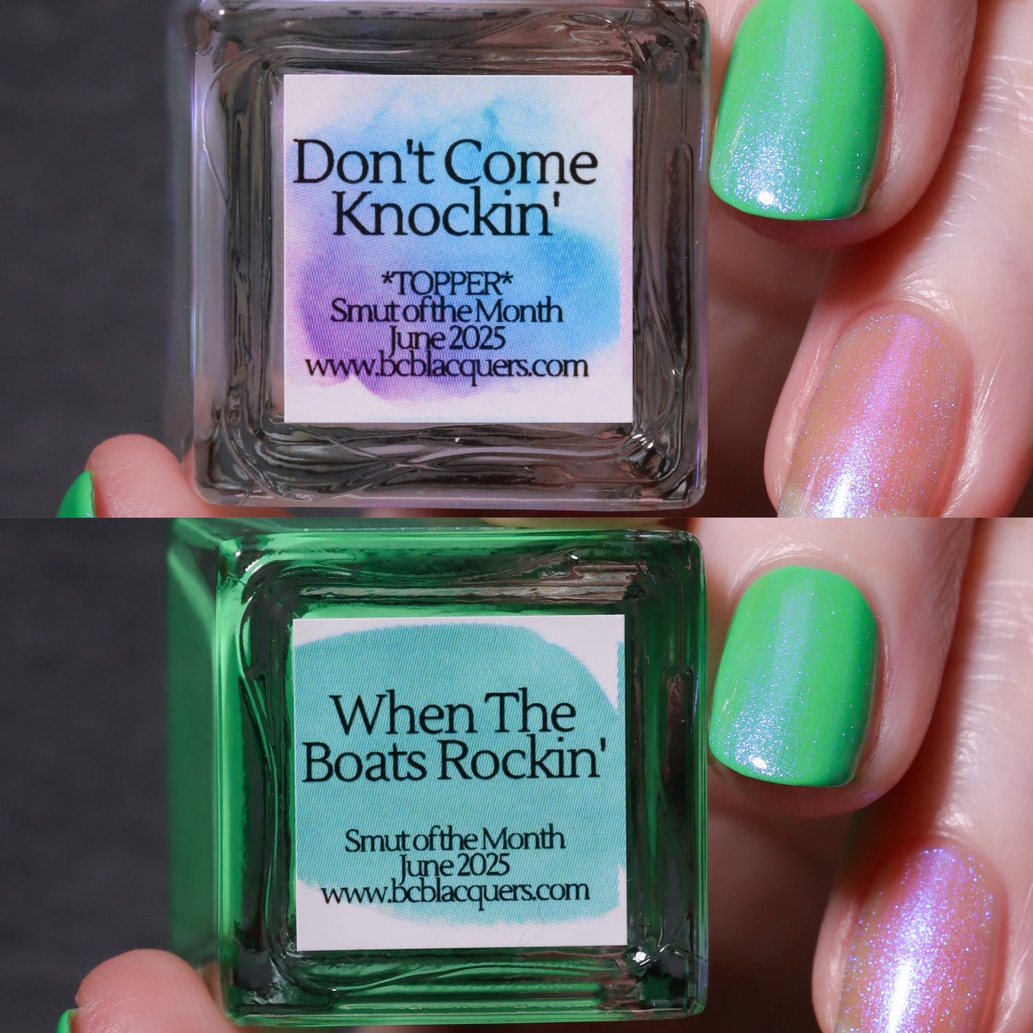 • Don’t Come Knockin’ –*TOPPER*: A toper packed with a strong blue/purple shifting shimmer.
