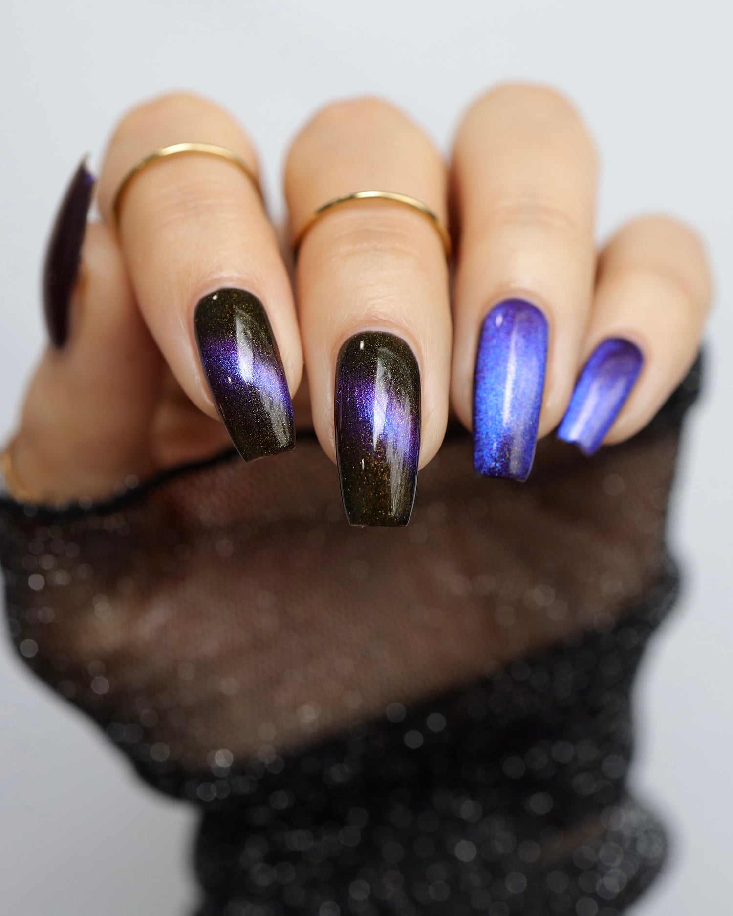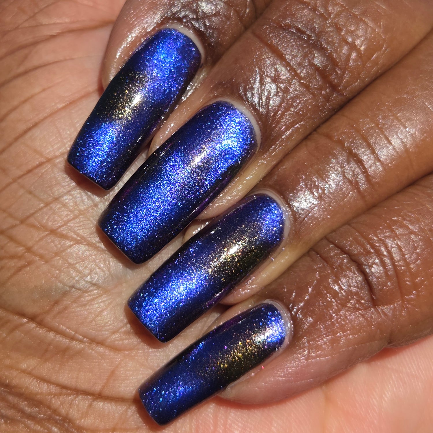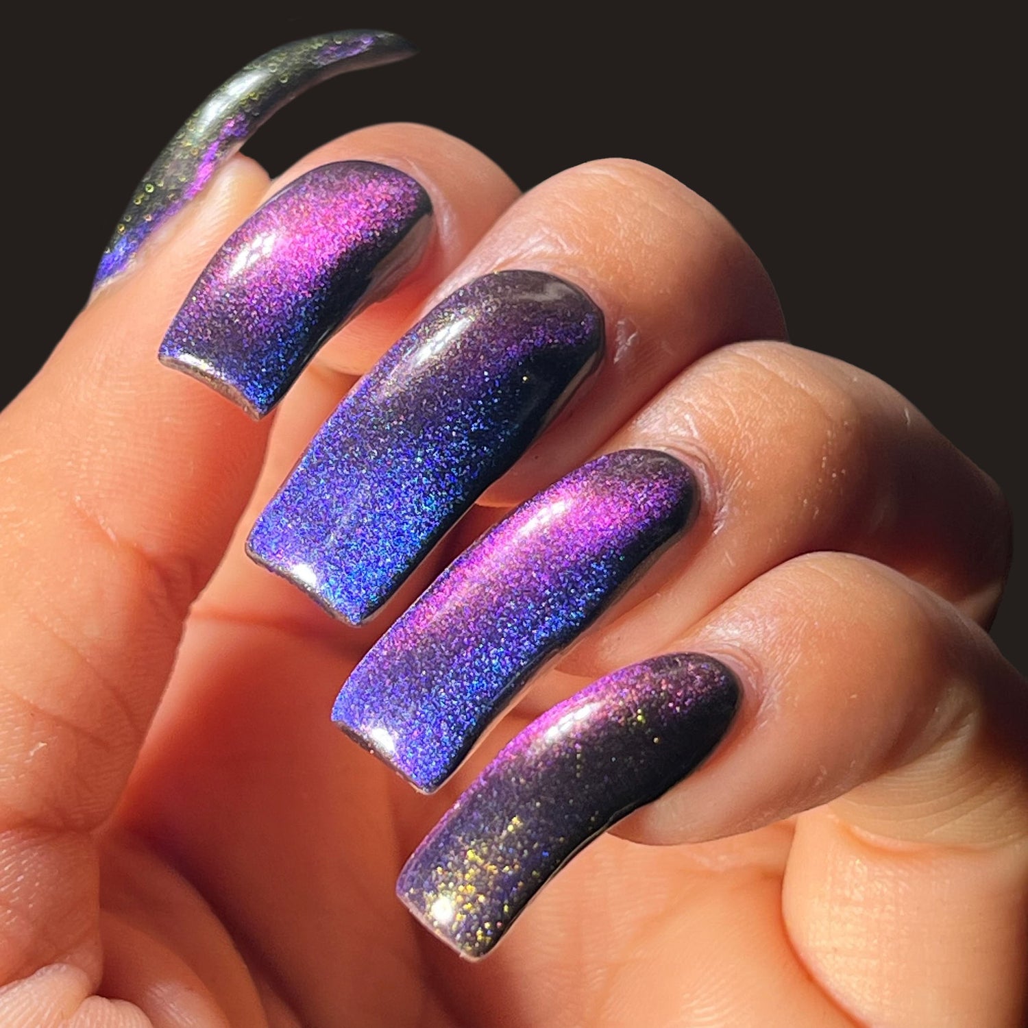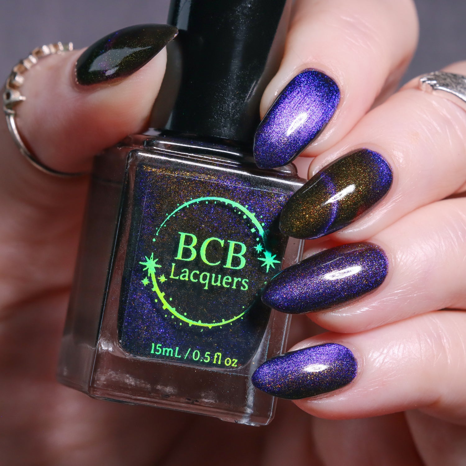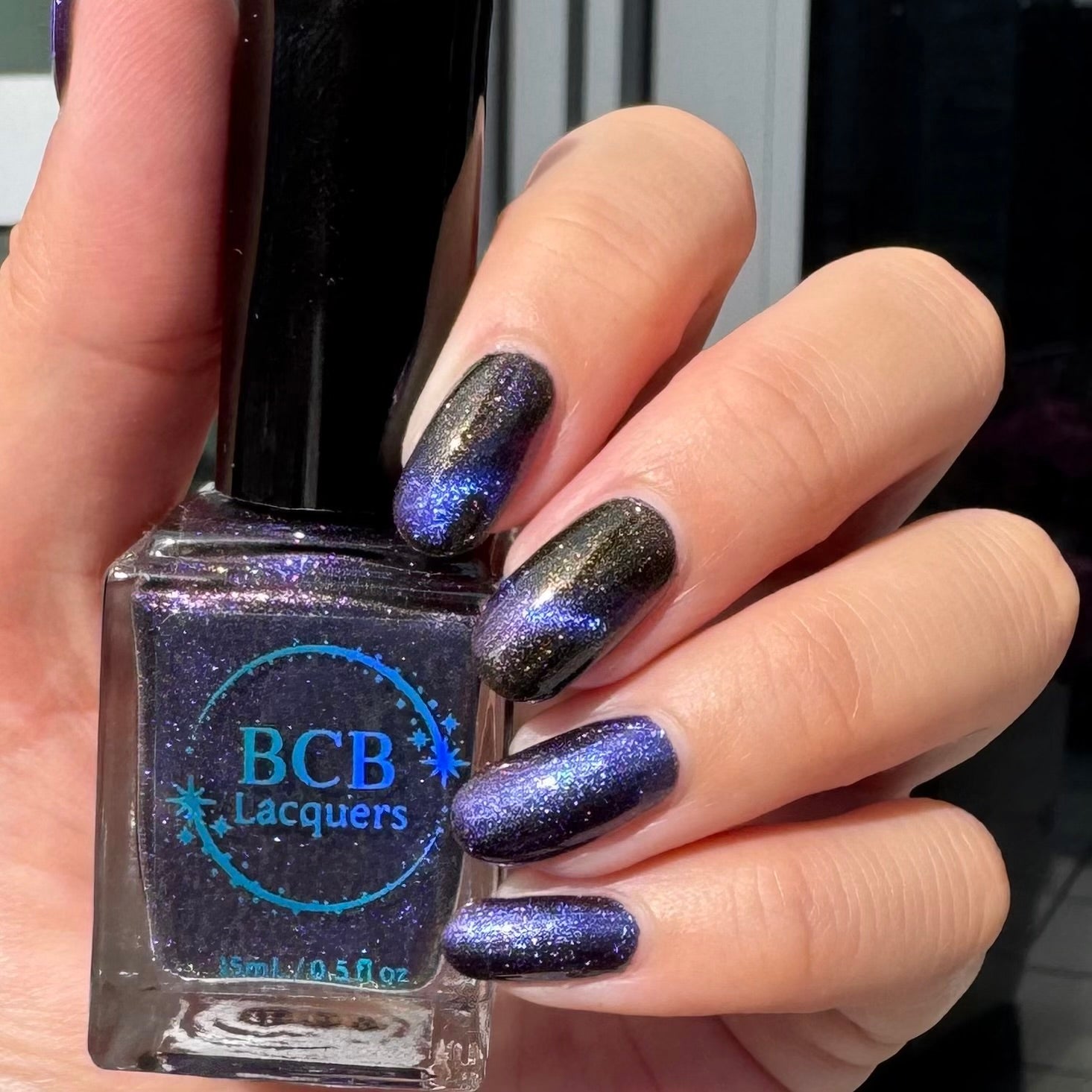 There’s No Devil In The Craft - *MAGNETIC*: A black jelly base with a purple/blue multichrome pull and gold shifting shimmer.