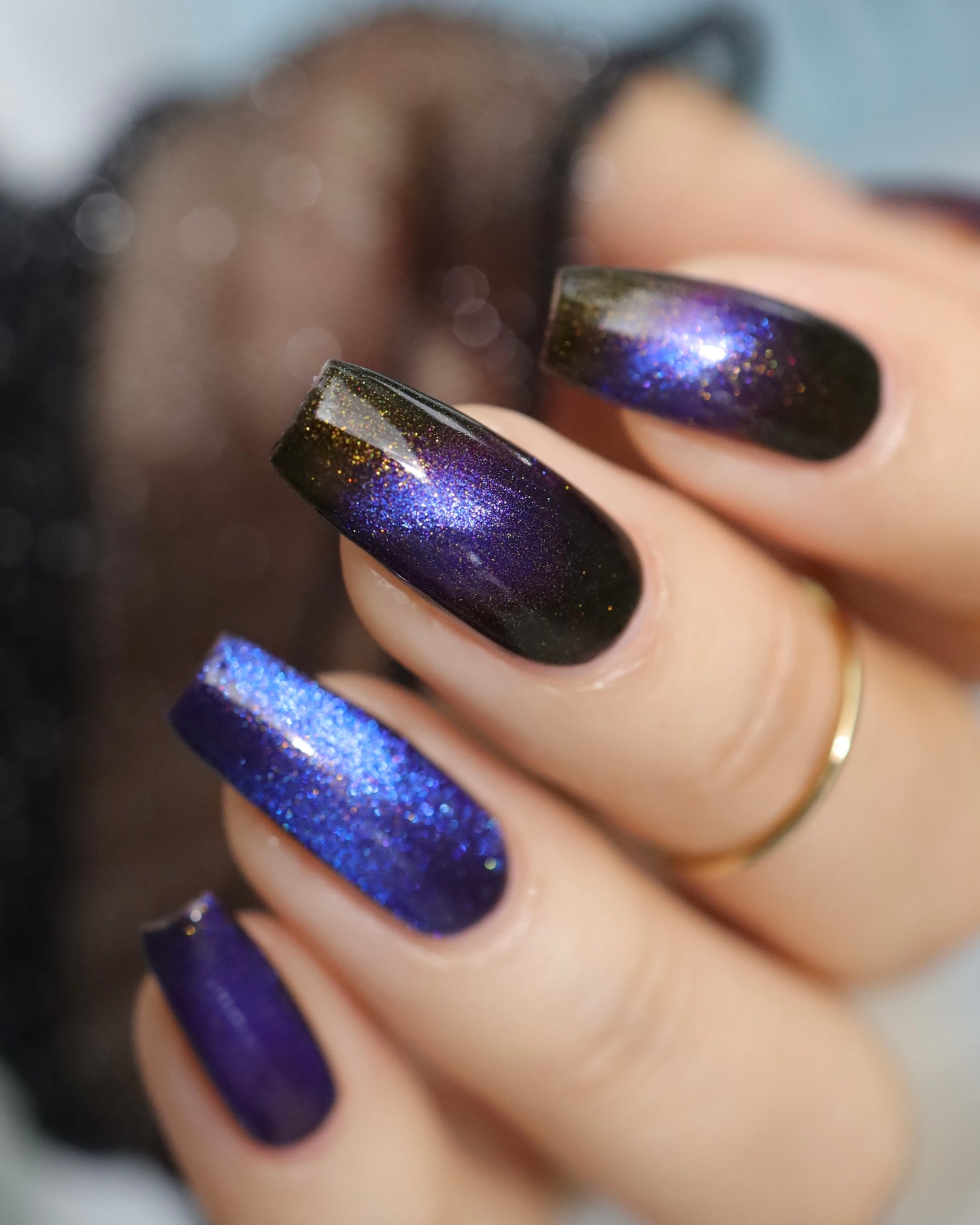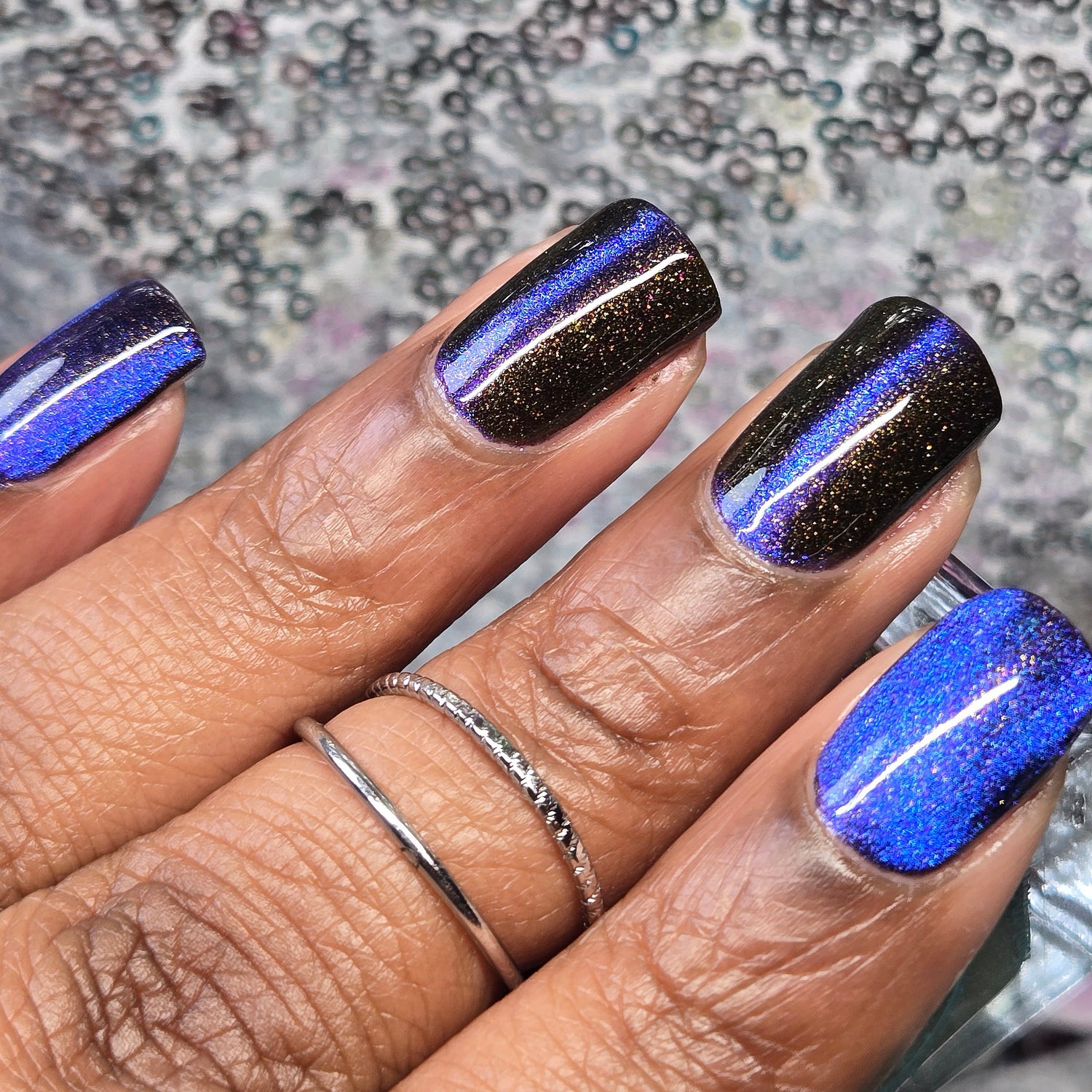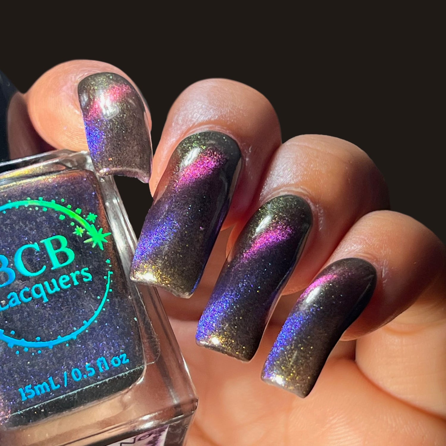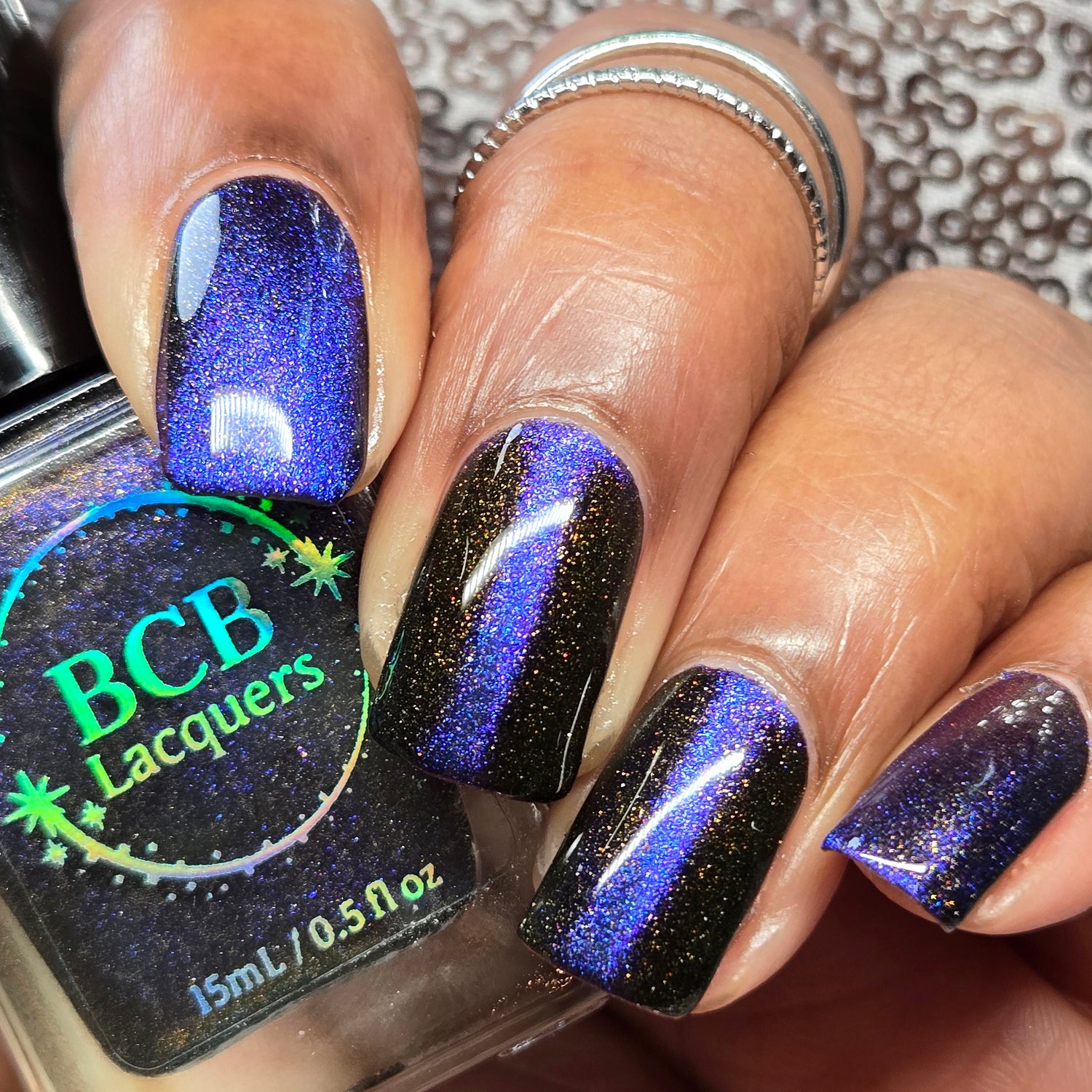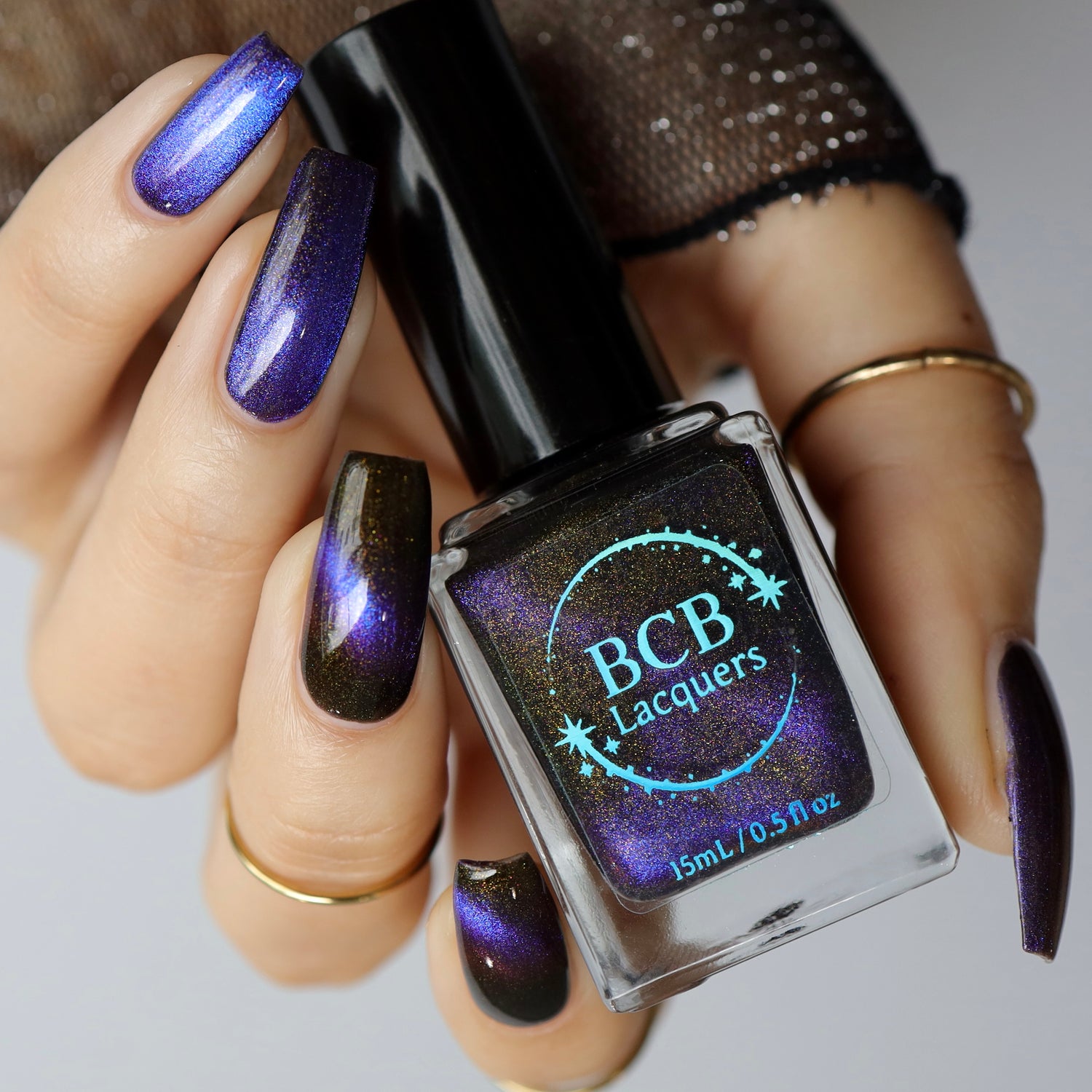 There’s No Devil In The Craft - *MAGNETIC*: A black jelly base with a purple/blue multichrome pull and gold shifting shimmer.
