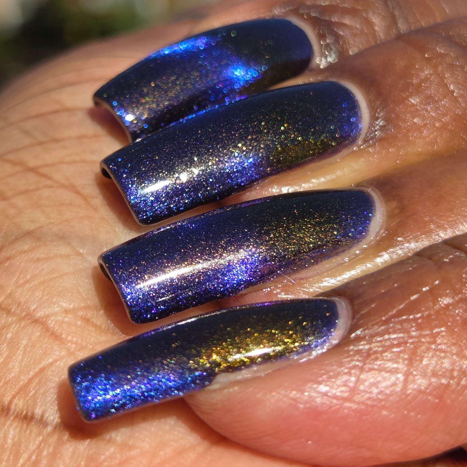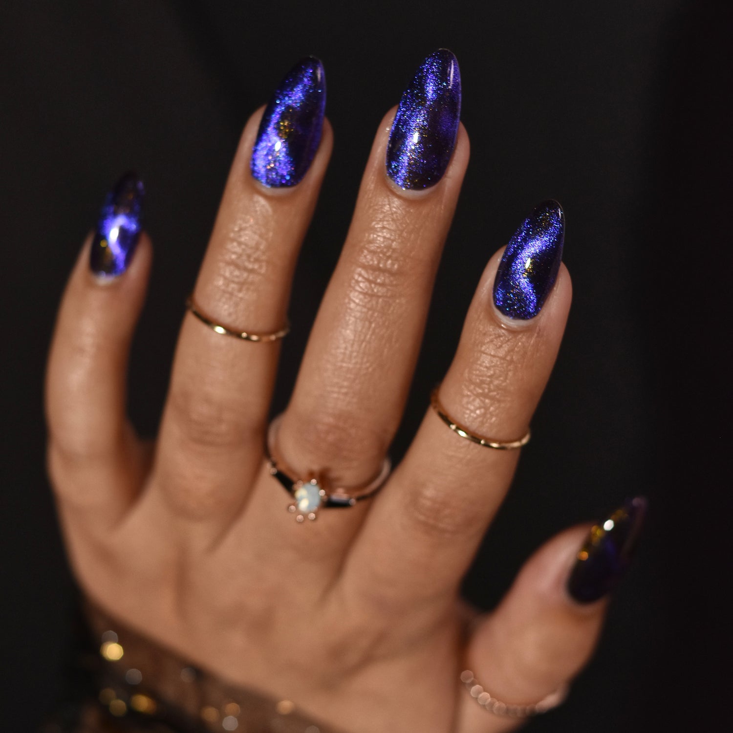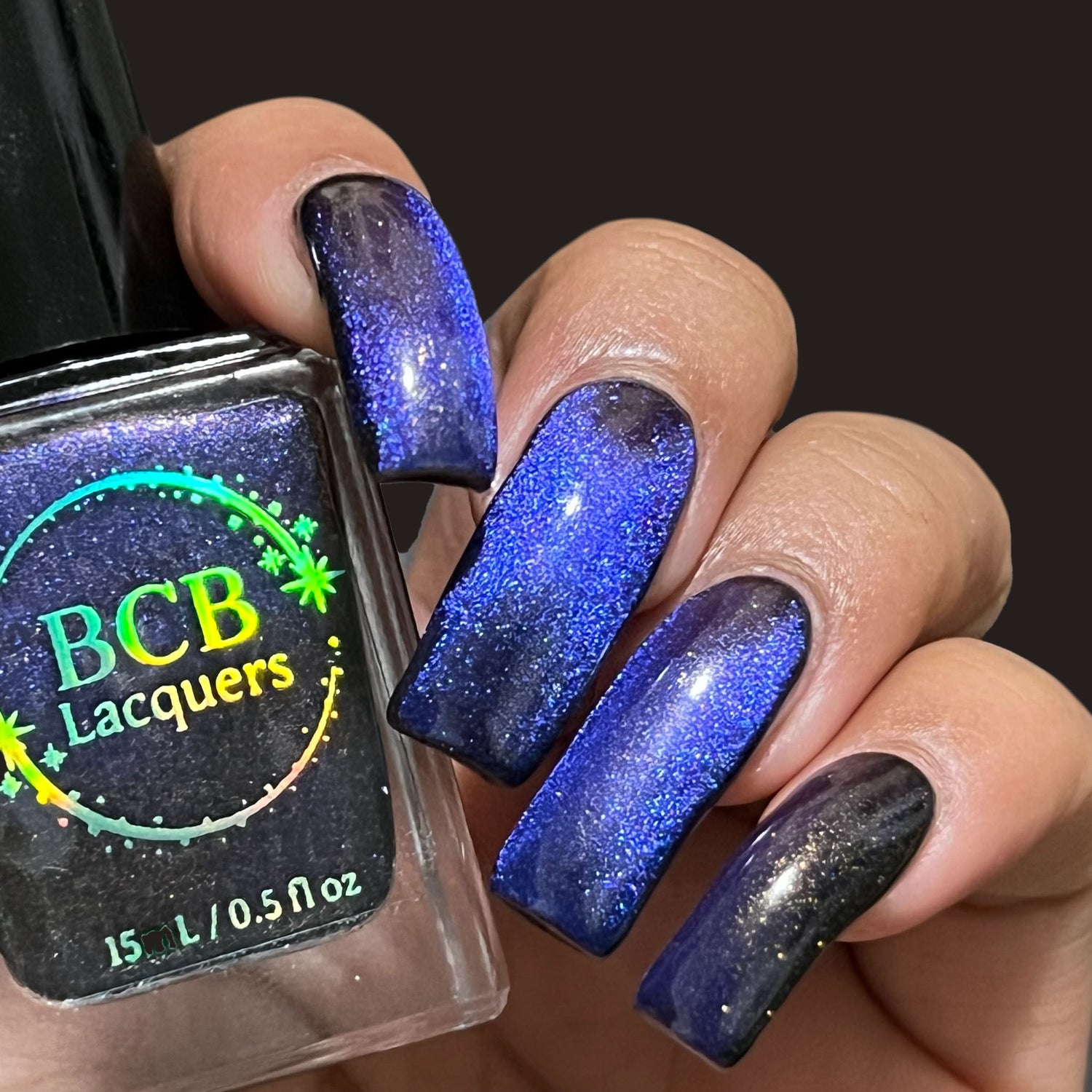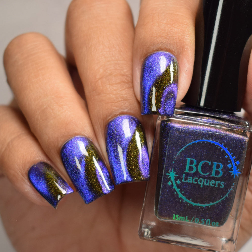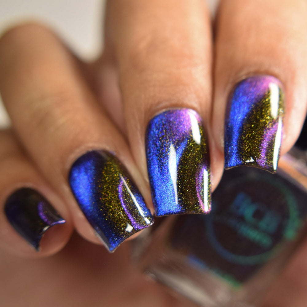 There’s No Devil In The Craft - *MAGNETIC*: A black jelly base with a purple/blue multichrome pull and gold shifting shimmer.
