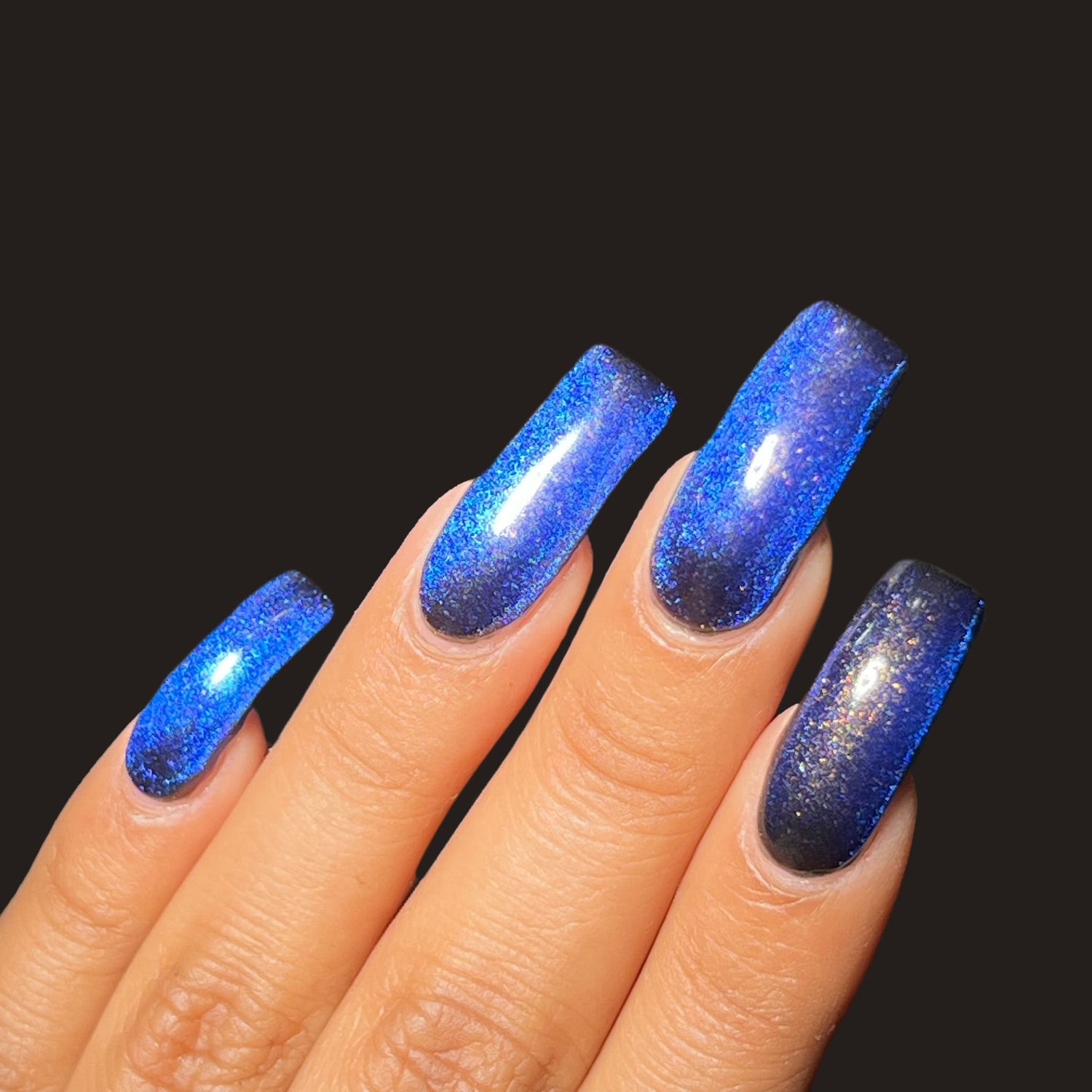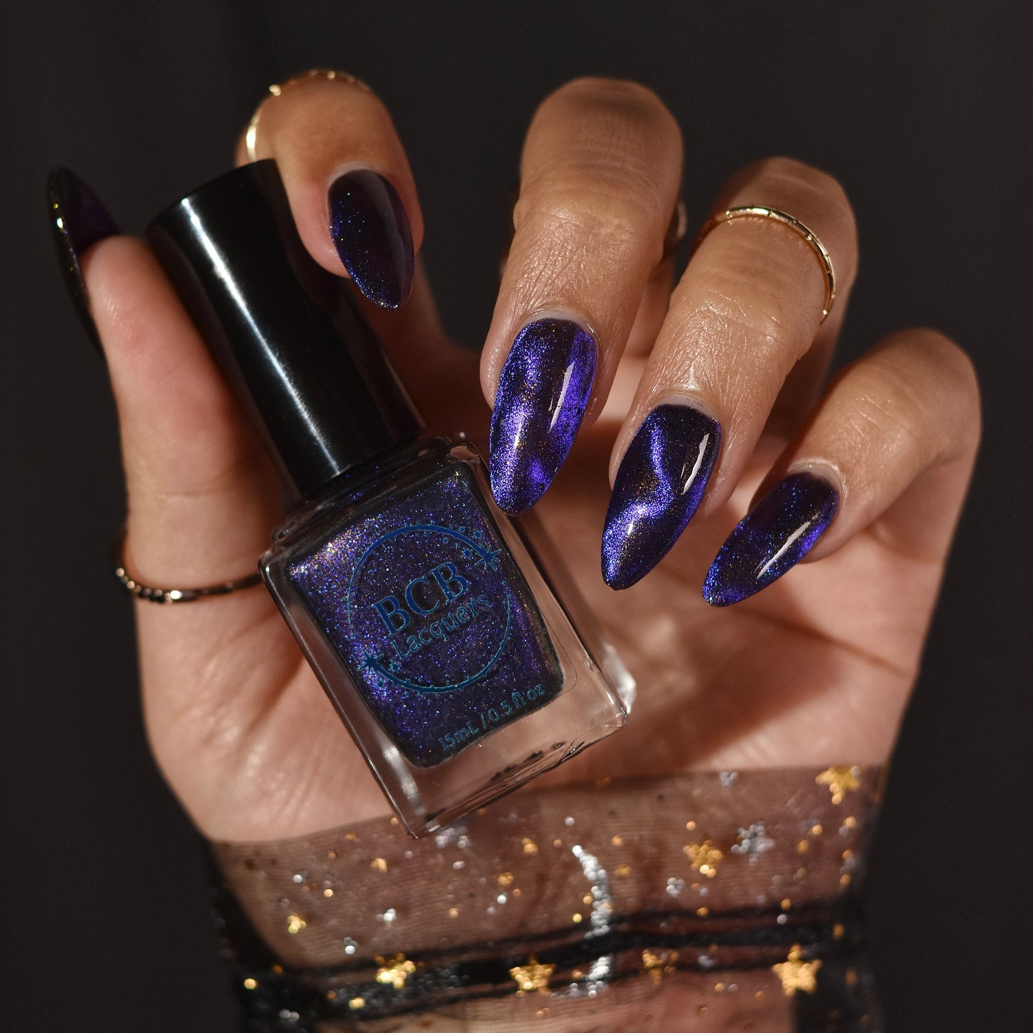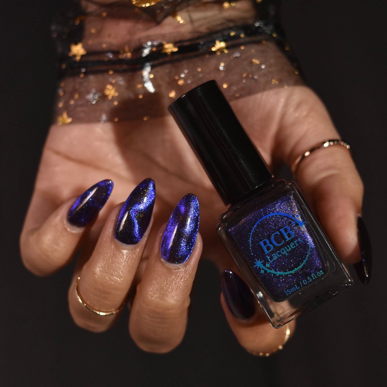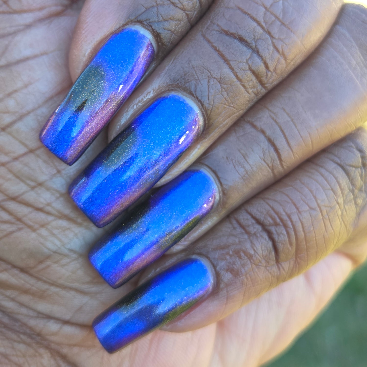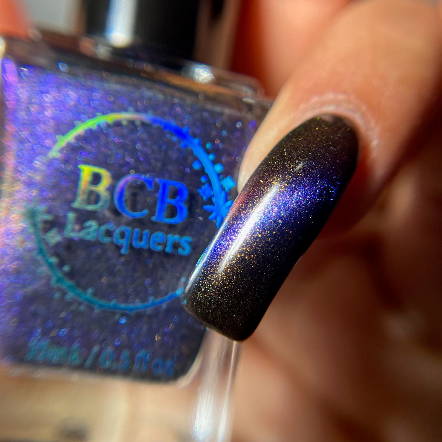 There’s No Devil In The Craft - *MAGNETIC*: A black jelly base with a purple/blue multichrome pull and gold shifting shimmer.